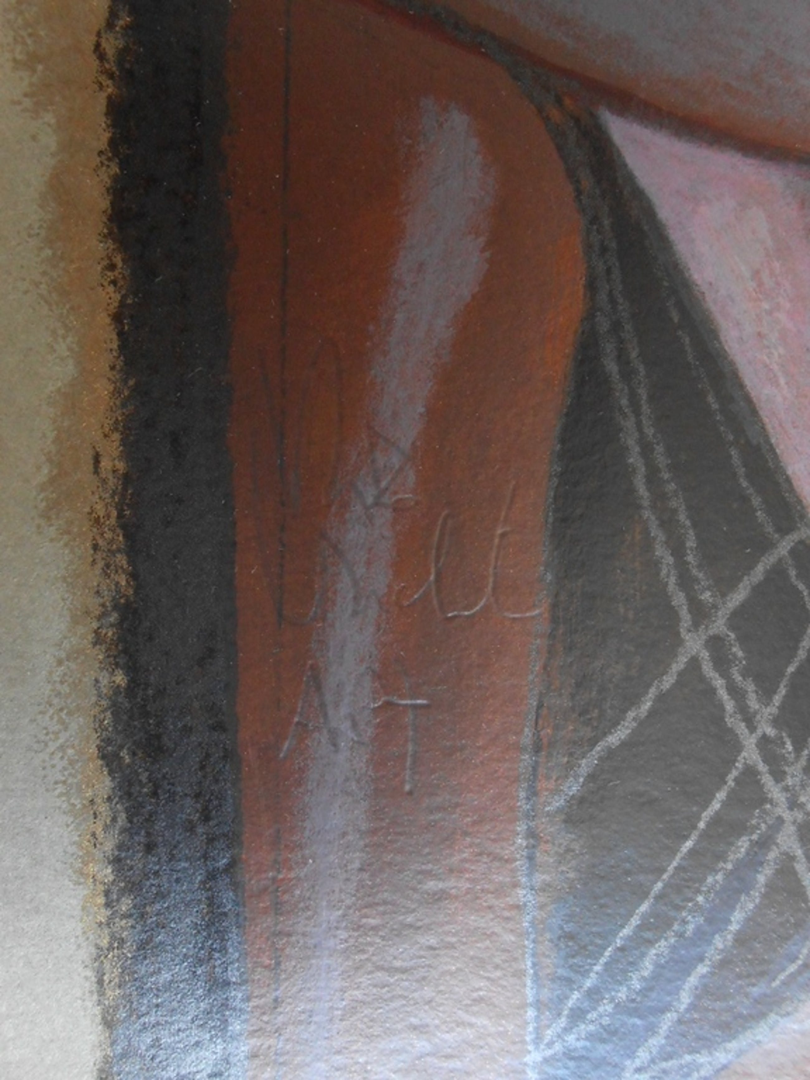 40 Drukgangen zeefdruk van Nico Vrielink. Uitzonderlijk veel drukgangen maar dan heb je ook een perfecte zeefdruk.Titel van dit werk is mij niet bekend maar het is in ieder geval Jeane.Hij komt in ieder geval uit een serie van 4 verschillende afbeeldingen. Oplage was toen (rond 2002) 200 stuks. De maat is 39,5 x 32,5 cm en nog nooit ingelijst geweest. Natuurlijk door Nico gesigneerd met potlood. Een mooi werk van deze veelzijdige kunstenaar.