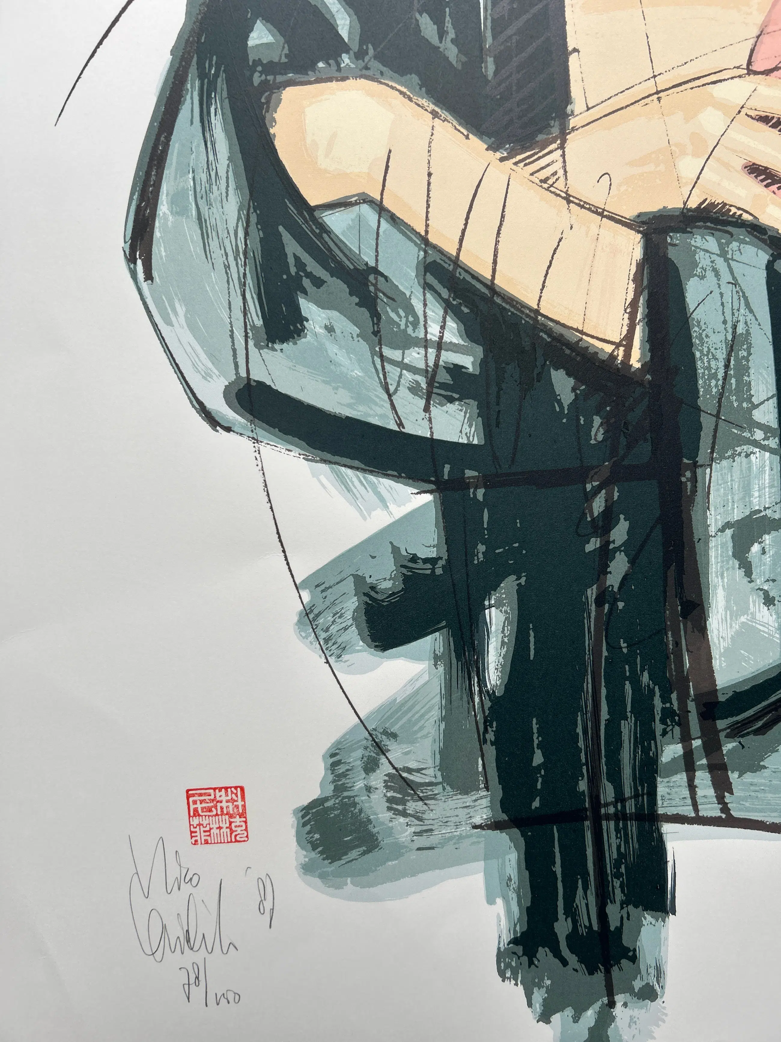 Conditie: goed. Linker- en rechterkant vel heeft vouwen, zie foto's. Oplage: 78/150. Wordt verzekerd verzonden in een stevige kartonnen koker.