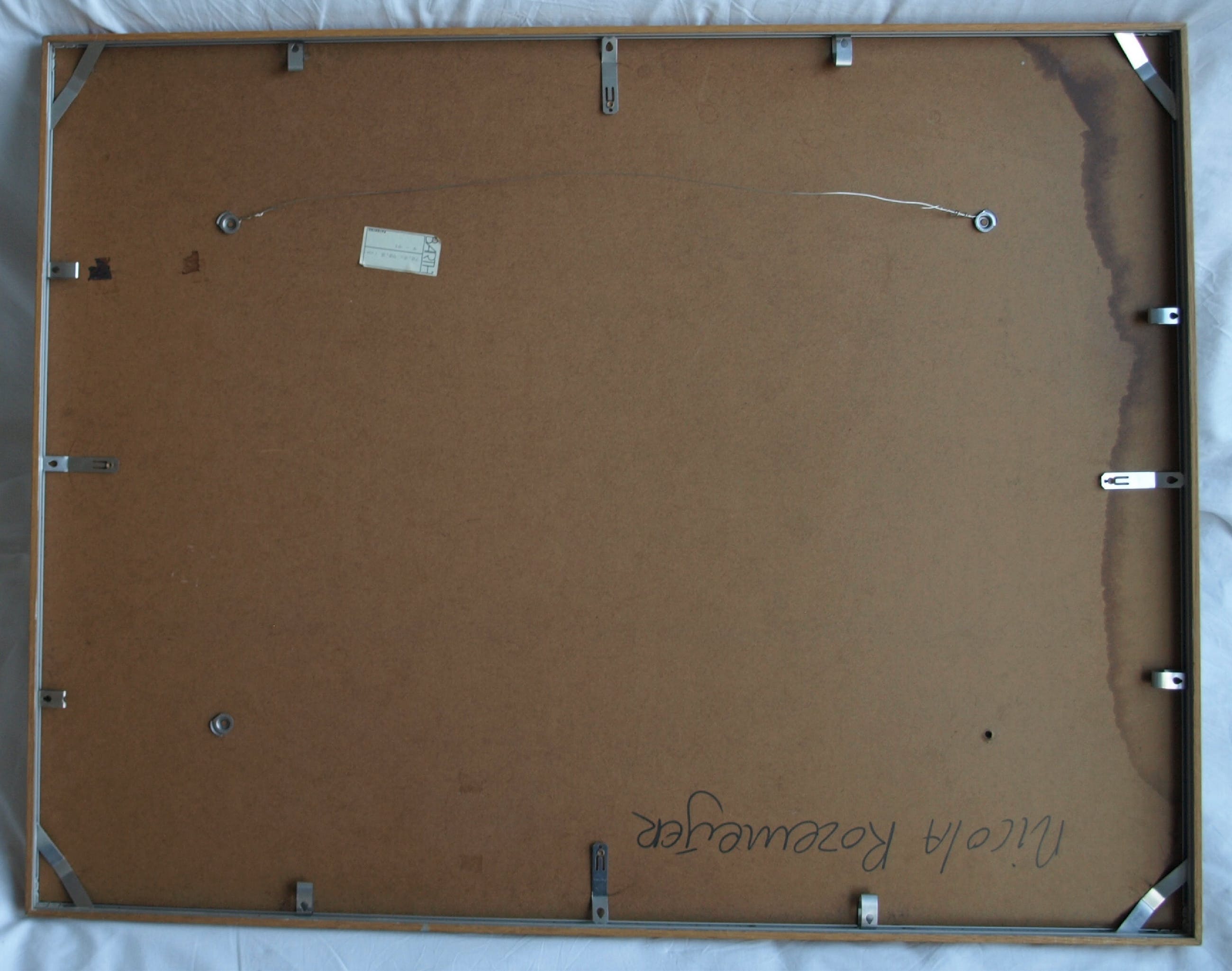 -Conditie: Het werk is in goede staat. De lijst heeft slijtplekken en de hardboard-achterplaat heeft aan de rechterrand een (vocht)vlek.