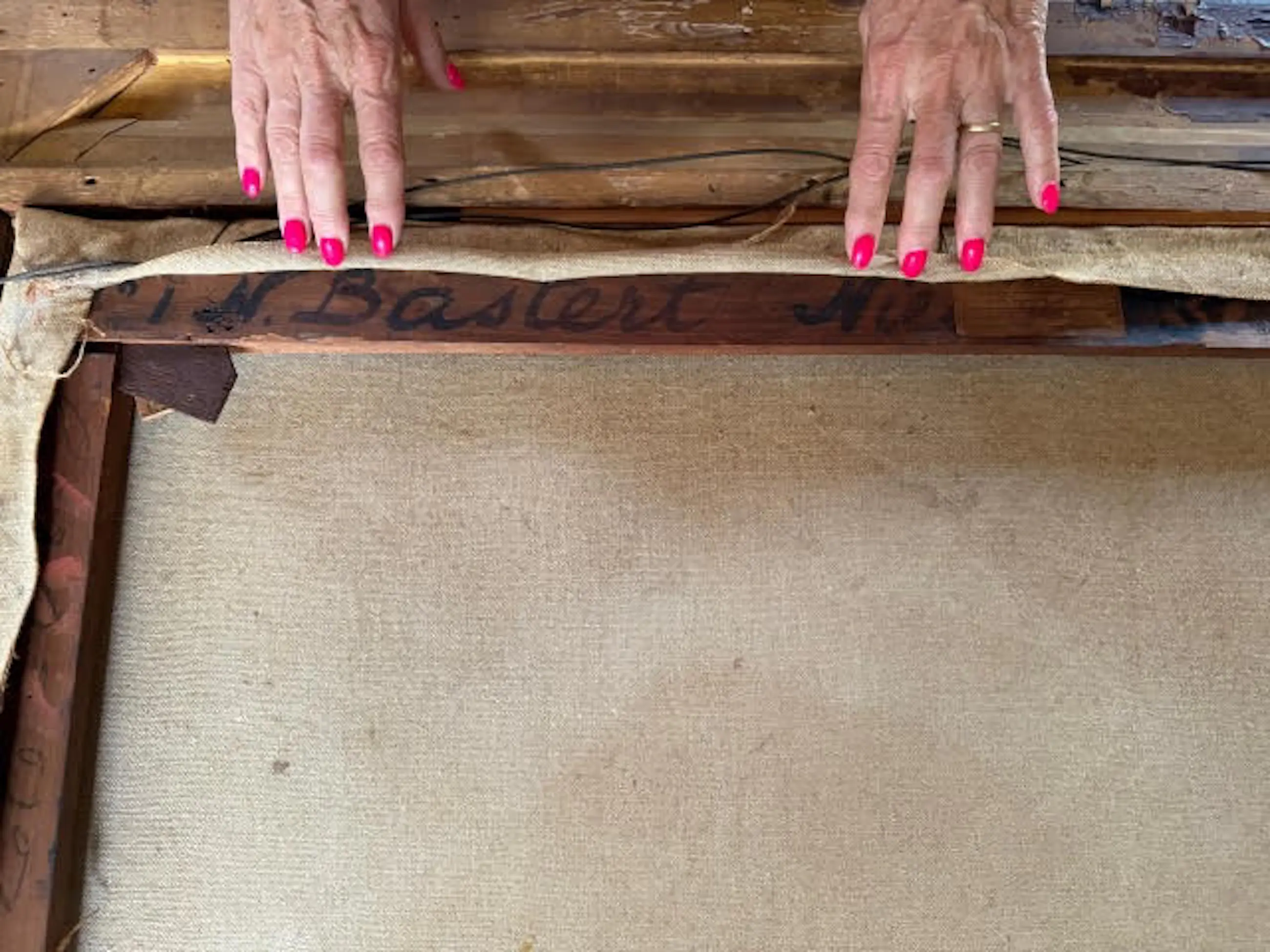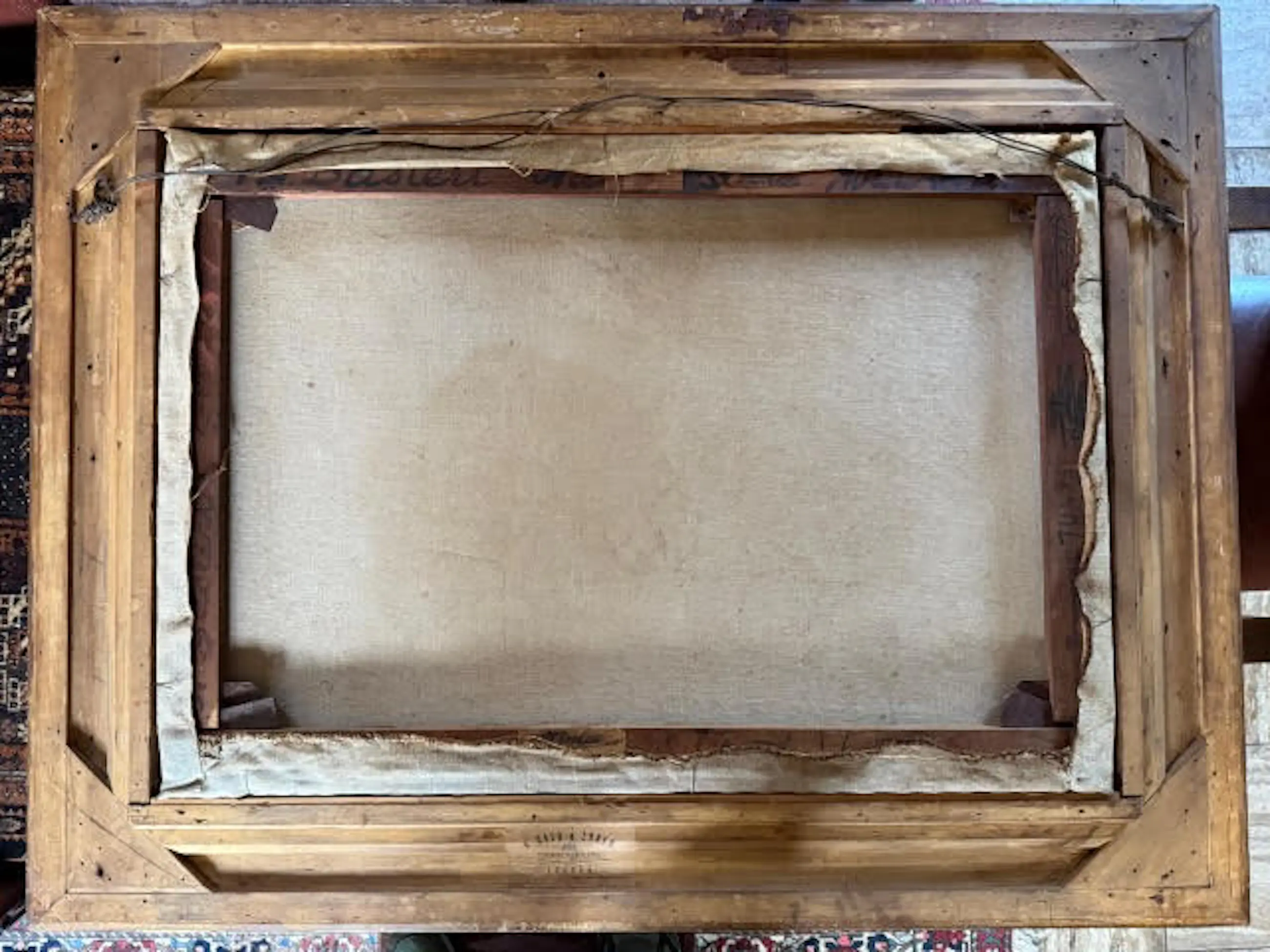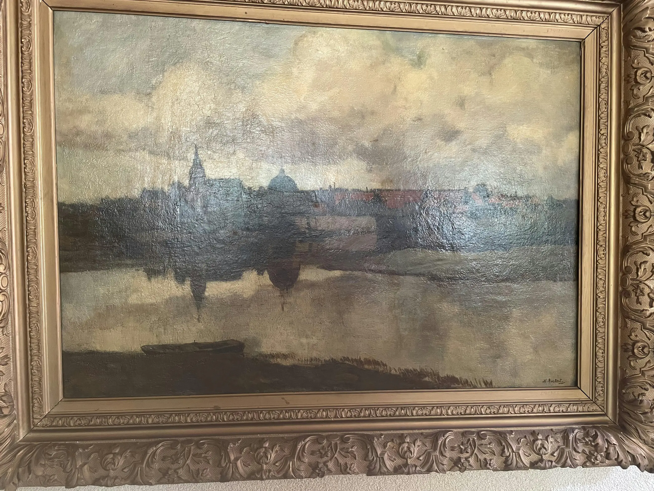 Het werk is onbeschadigd maar vrij donker, onduidelijk of dit origineel is of vervuiling door de jaren heen