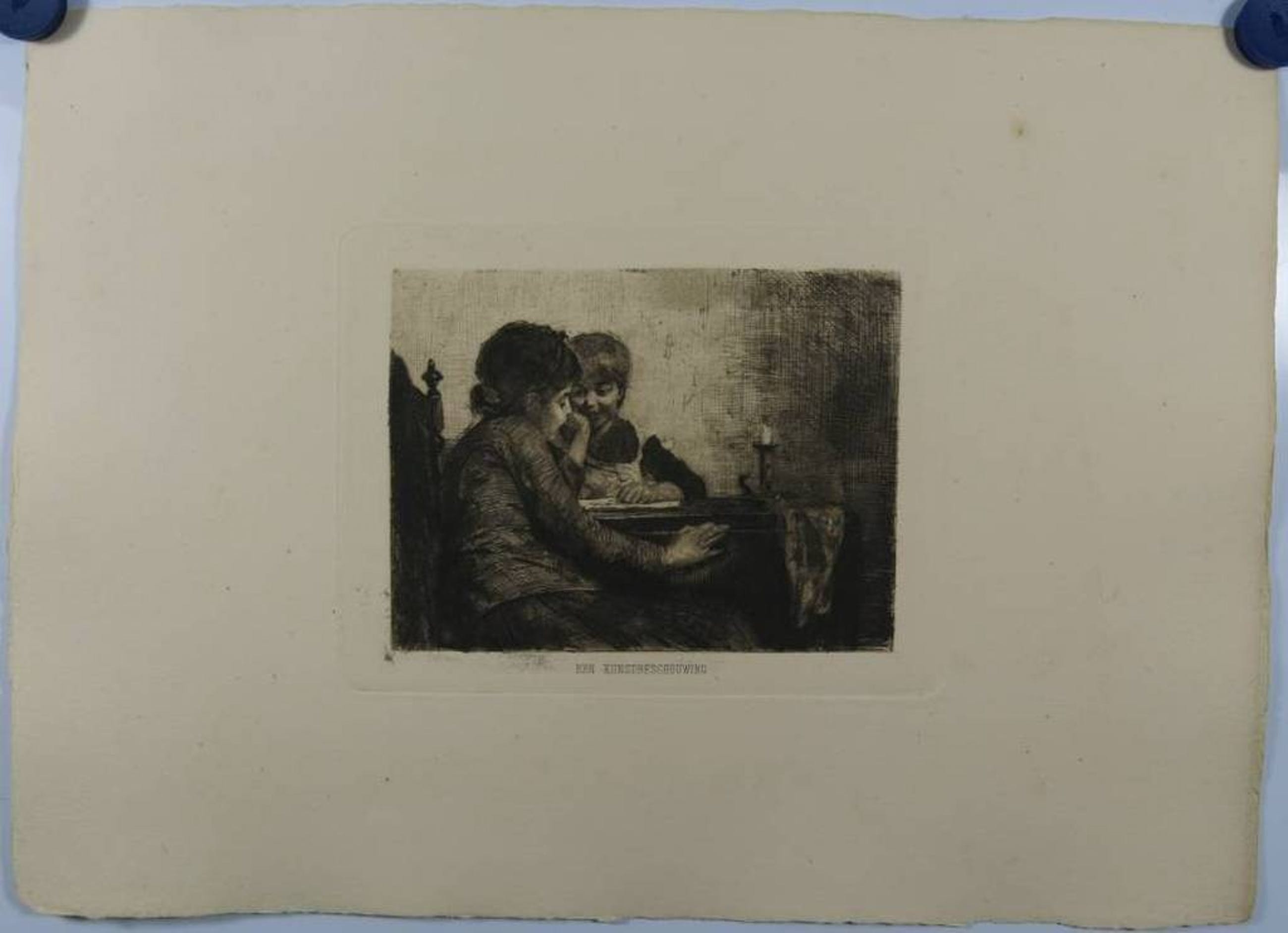 Het gaat hier om een originele ets op geschept papier. De titel van het werk en naam van de maker/schilder is vaak vermeld onder de ets en werden door boekdruktechniek erbij gedrukt. (Ingelijst wordt de titel overigens vaak onder een passe-partout geplaatst).