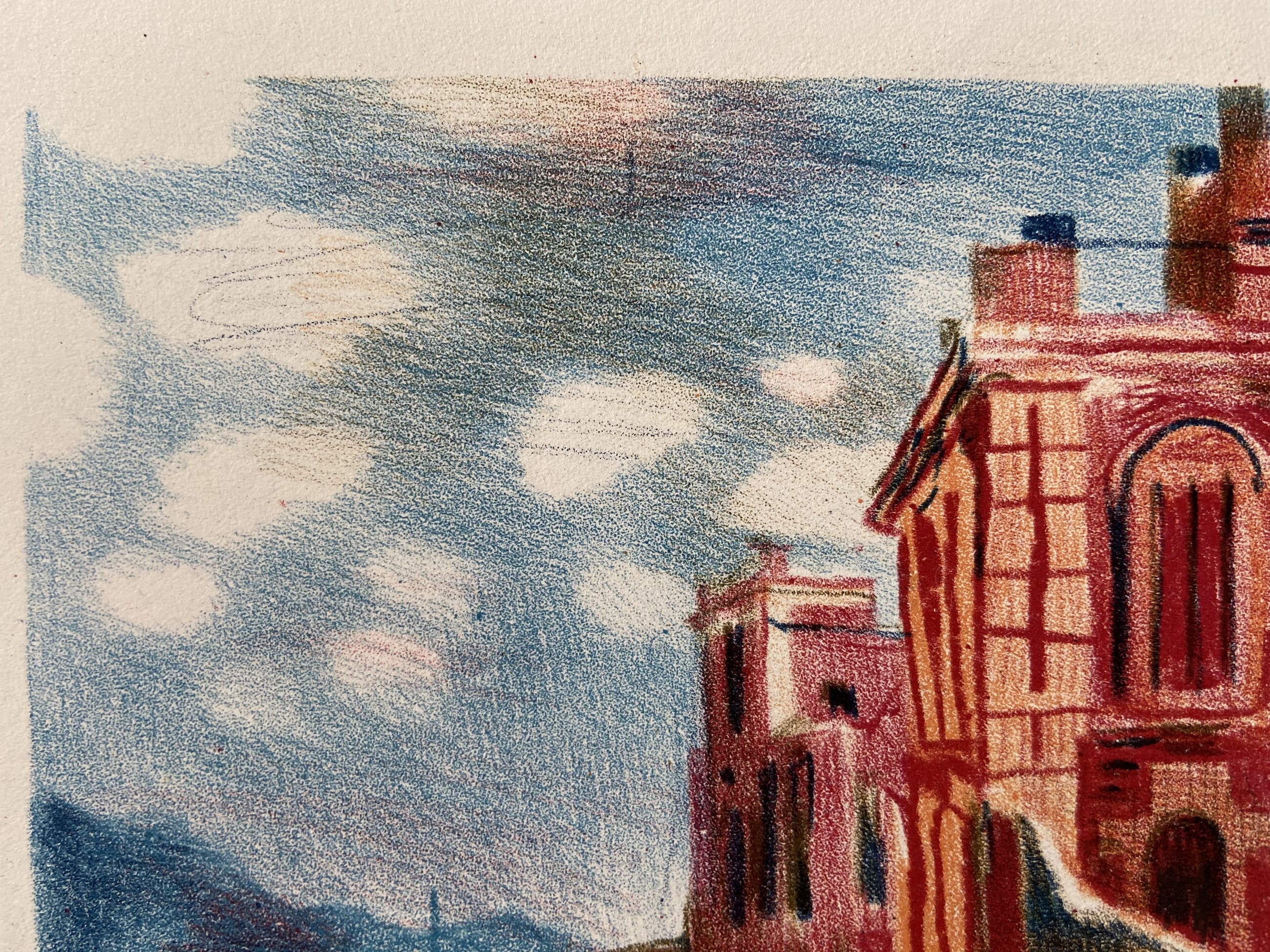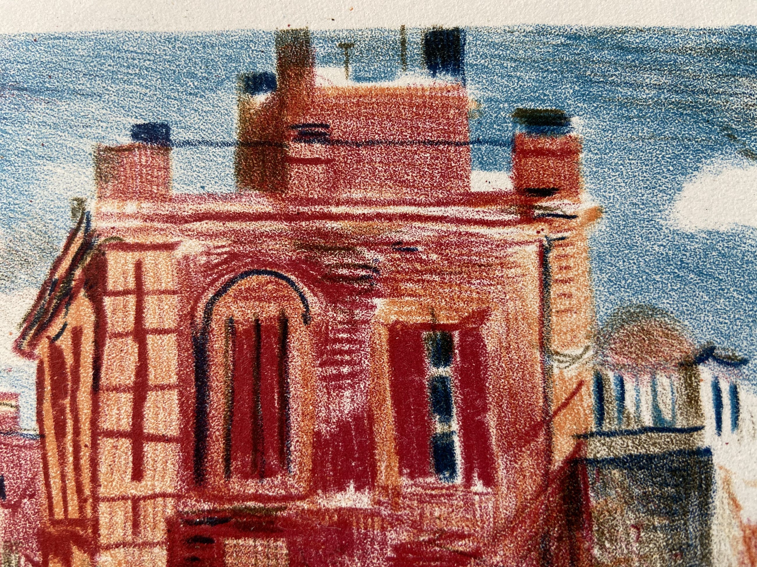 passe-partout in de rechtsboven hoek een vouw. Niet in het werk zelf.
