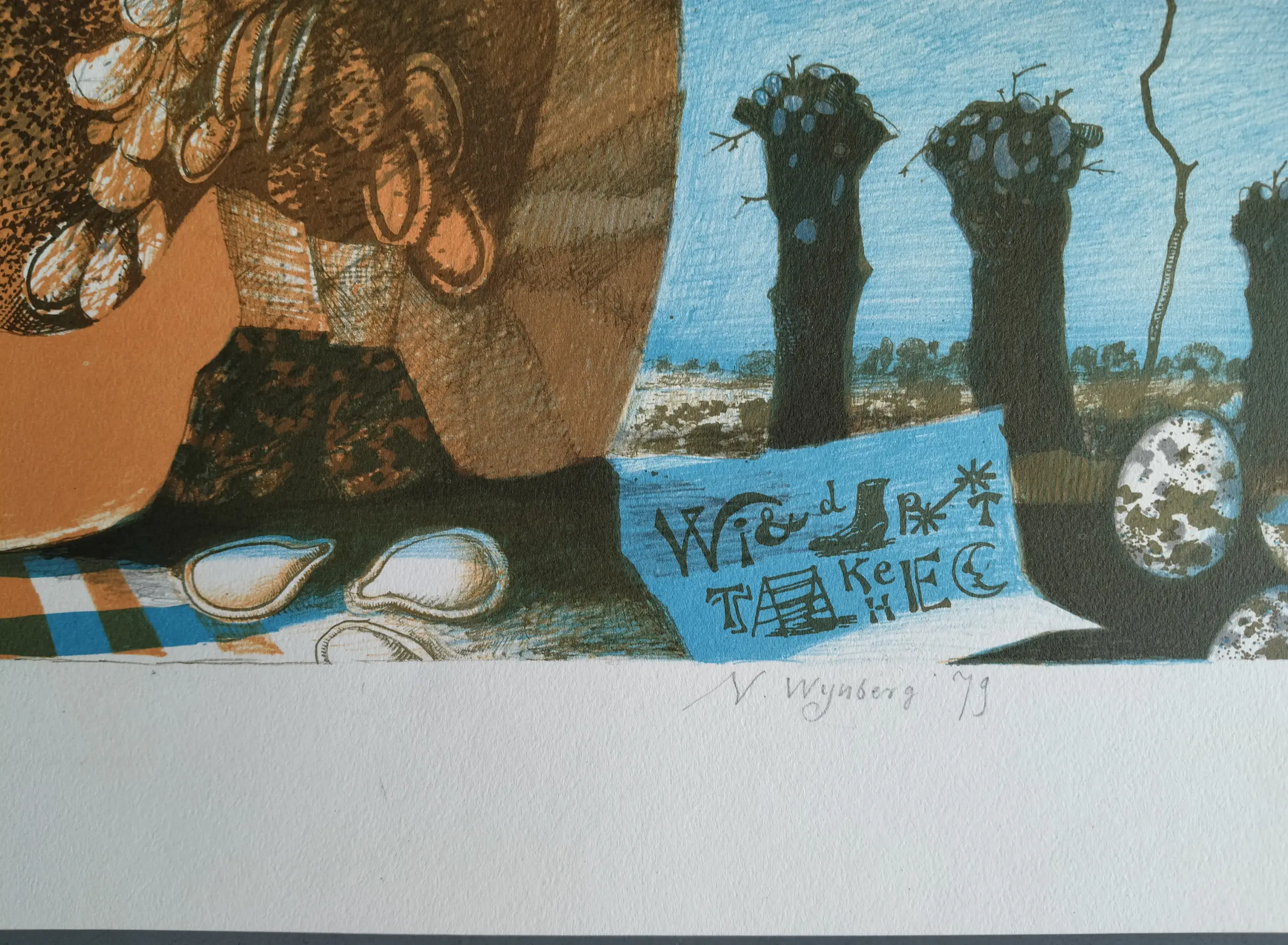 Gesigneerde litho van de Kunstenaar Nicolaas Wijnberg (1918 – 2006) uit 1979 gedrukt in een oplage van 100 stuks. In het midden is het werk gesigneerd in potlood en 79 en links 16/100. Papiermaat 49.5 x 64.5 cm. (hxb).