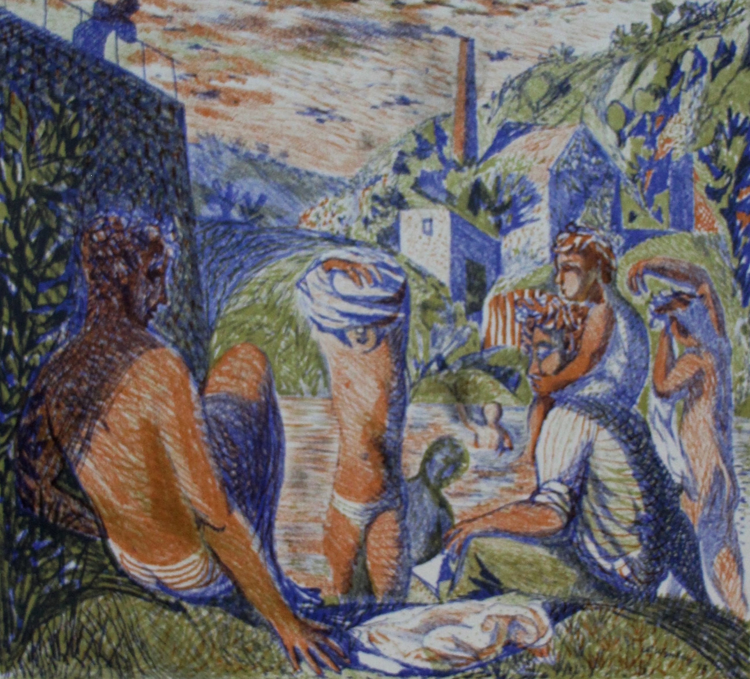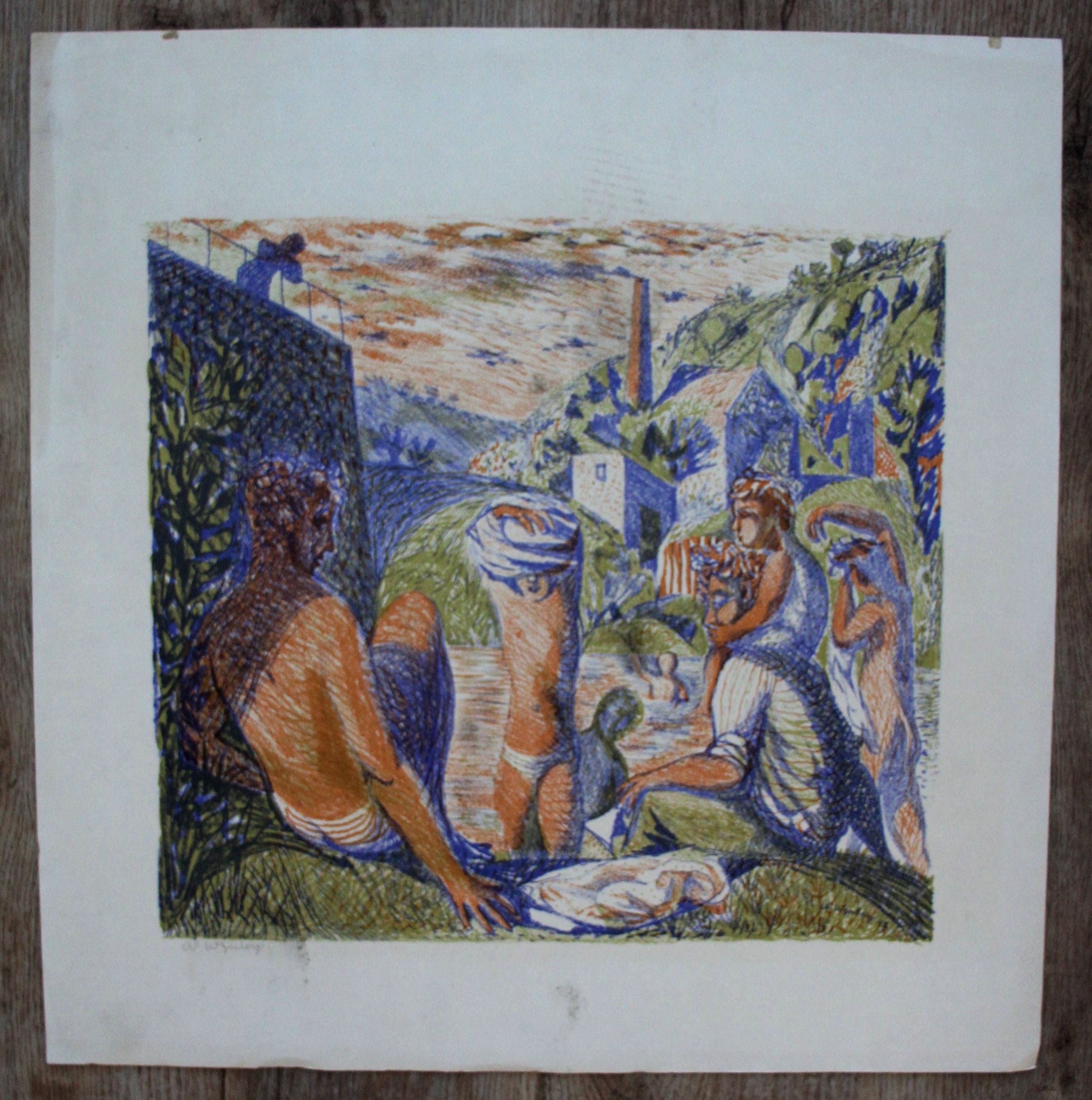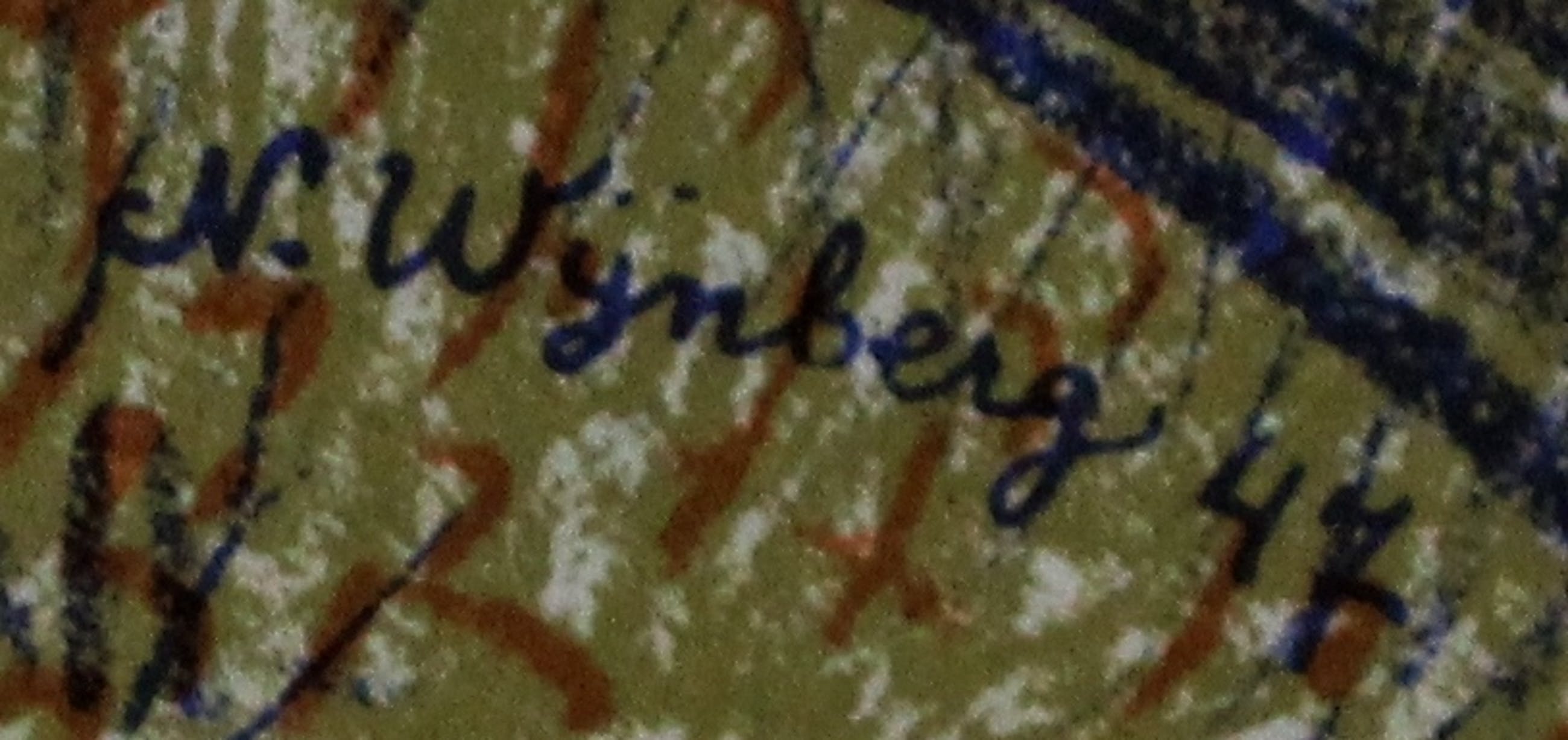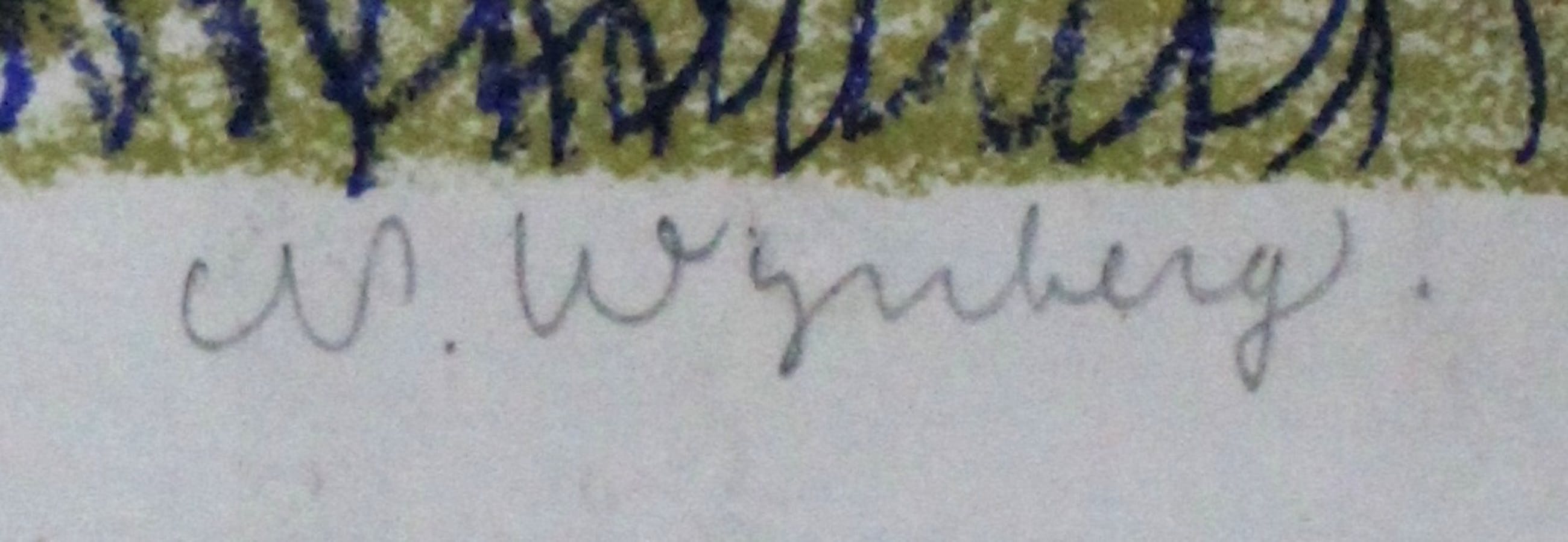 | Het werk is in goede staat. De randen om het werk zijn licht verkleurd, en er zitten wat vlekjes/kreukels, door een vorige inlijsting. Goed ingelijst valt dit in de lijst/onder de passepartout. | |||