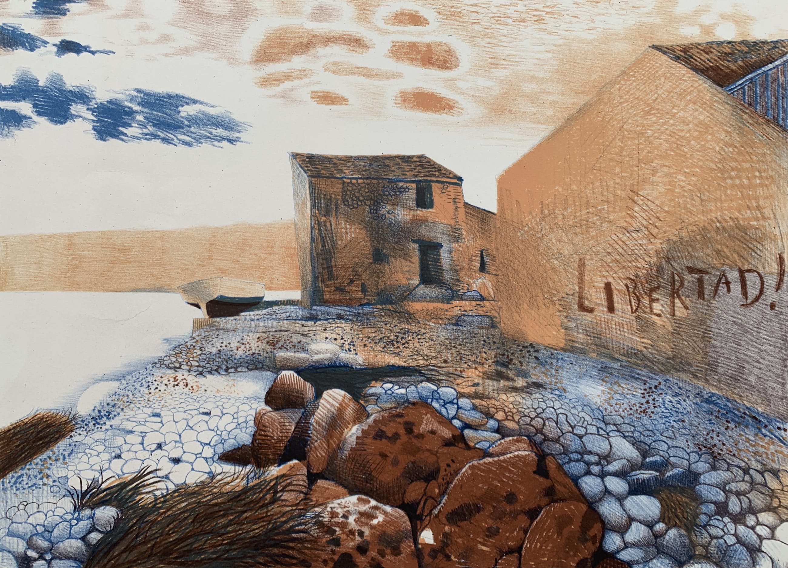 Mooie surrealistisch gekleurde compositie van de hand van Nicolaas Wijnberg.