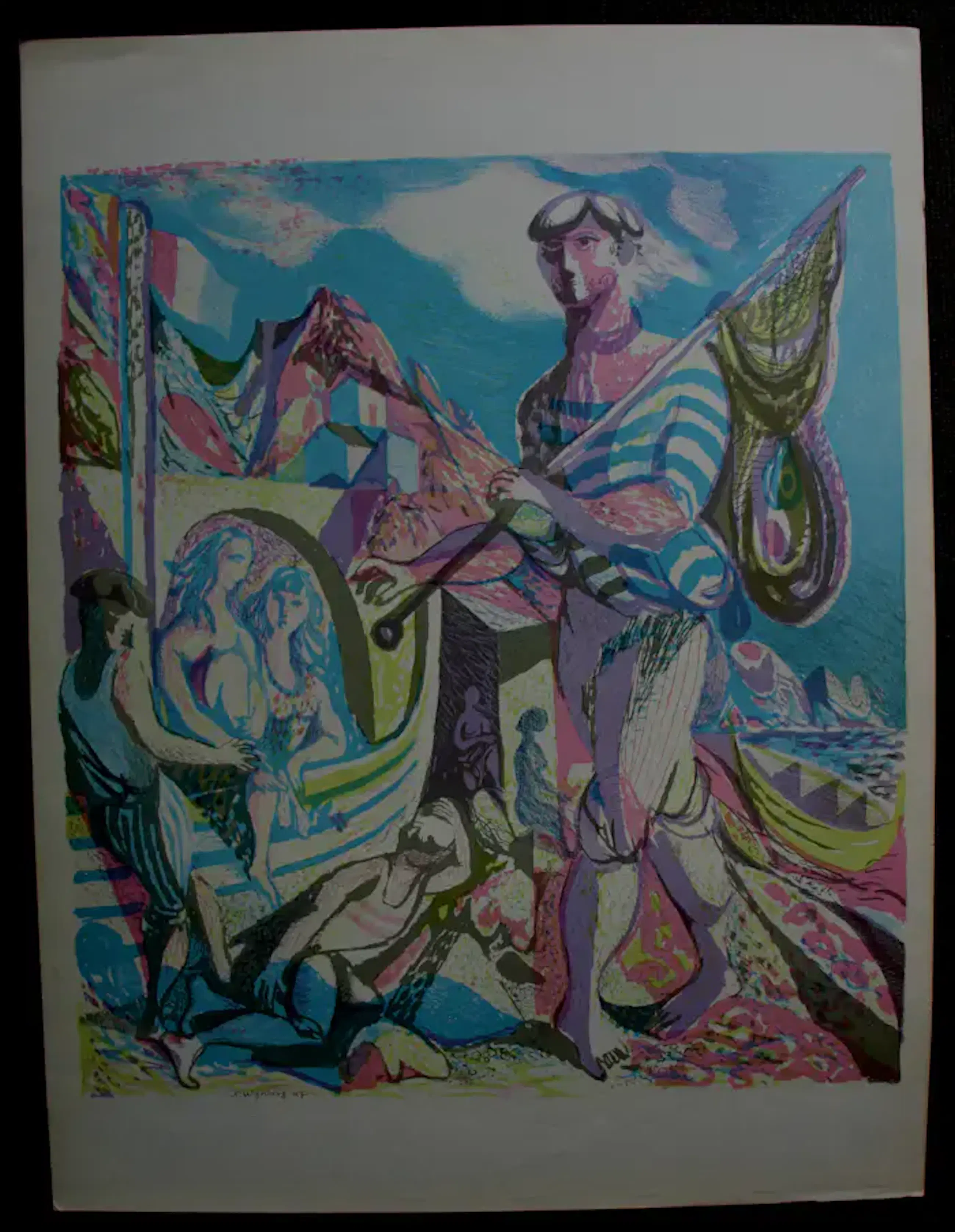 Nicolaas Wijnberg - Kleurenlitho: Zuid Franse visser - 1947