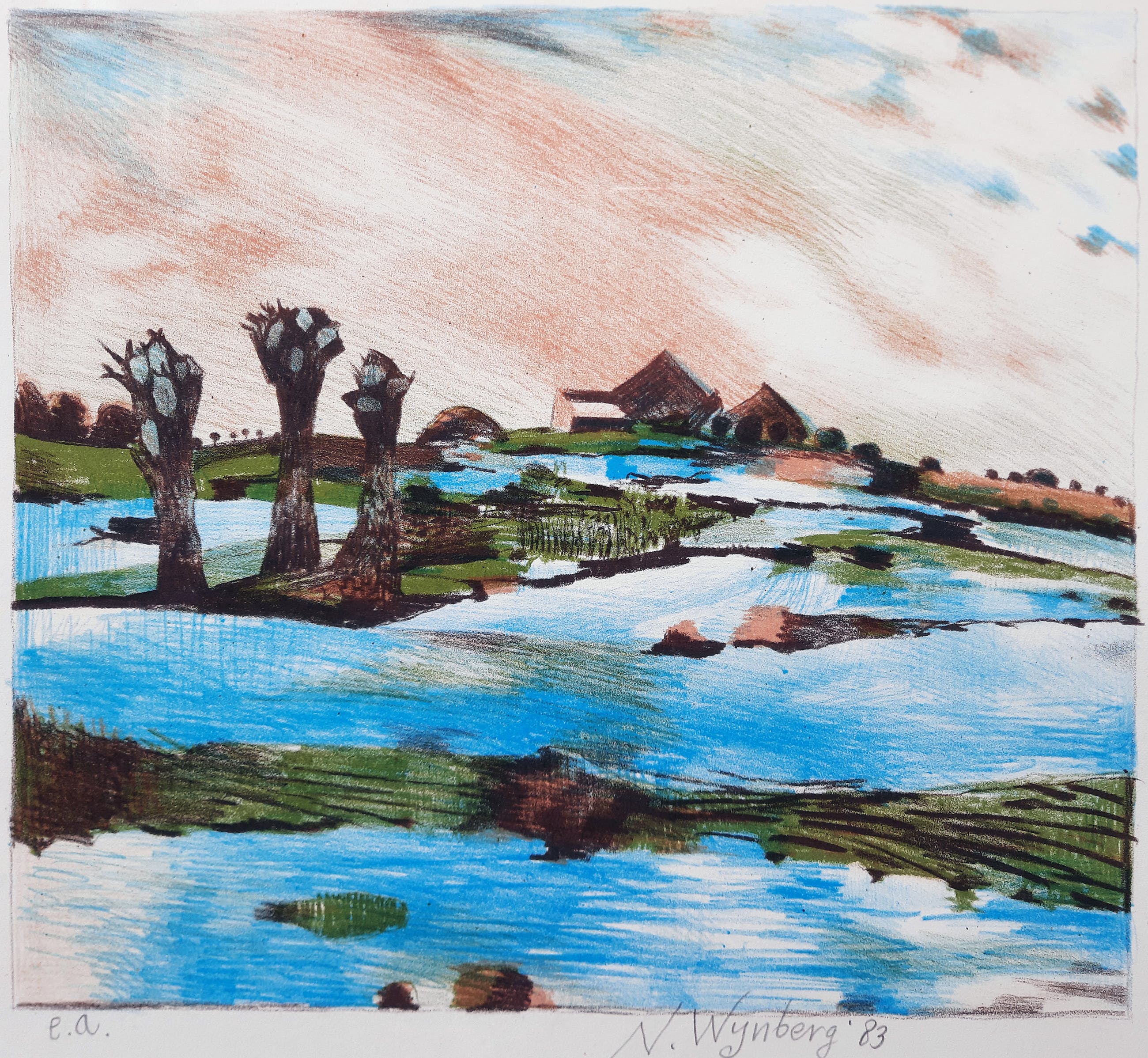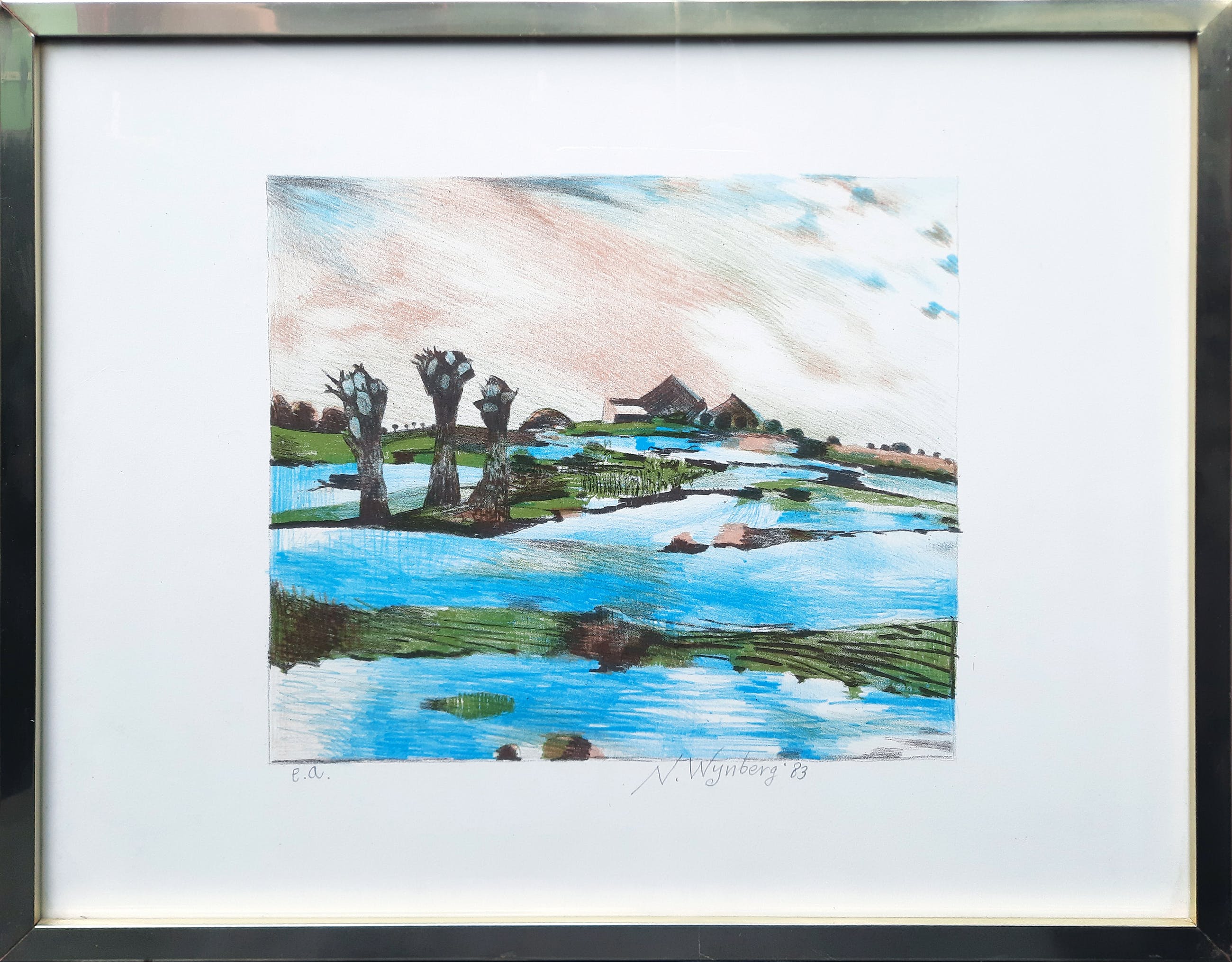 Fijne steendruk in meerdere kleuren ingelijst in een licht gouden metalen lijst. Wordt verzekerd verzonden echter is risico glasbreuk voor de koper. Afhalen in de galerie in Zaandam geniet de voorkeur. Het werk bekijken alvorens een bod uit te brengen is ook mogelijk.