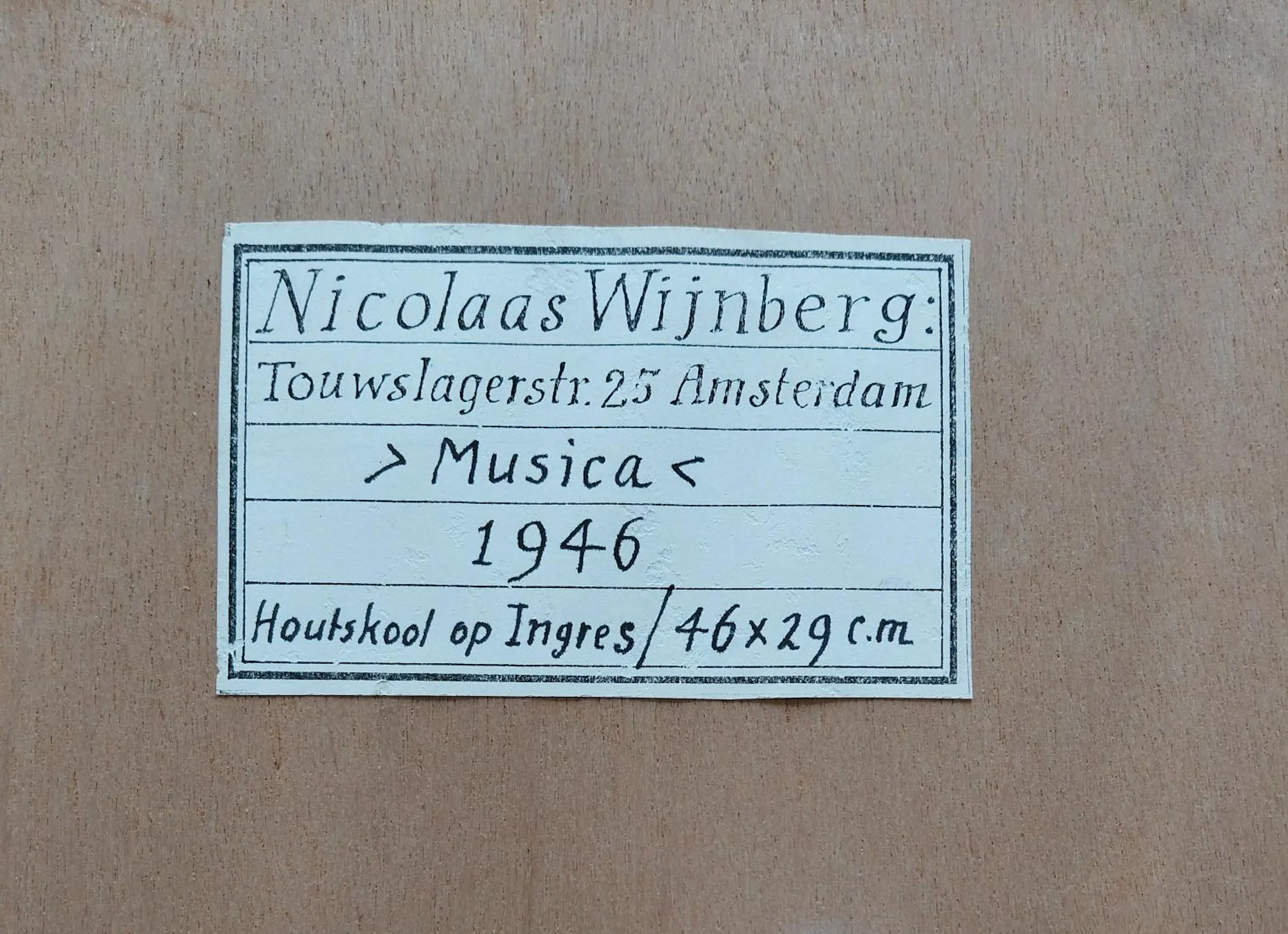 Werk uit 1946. Met extra opdracht van Nicolaas Wijnberg: 'Voor Marina, 1-12-96' (hij gaf het werk cadeau aan mijn tante, als cadeau voor haar verjaardag)