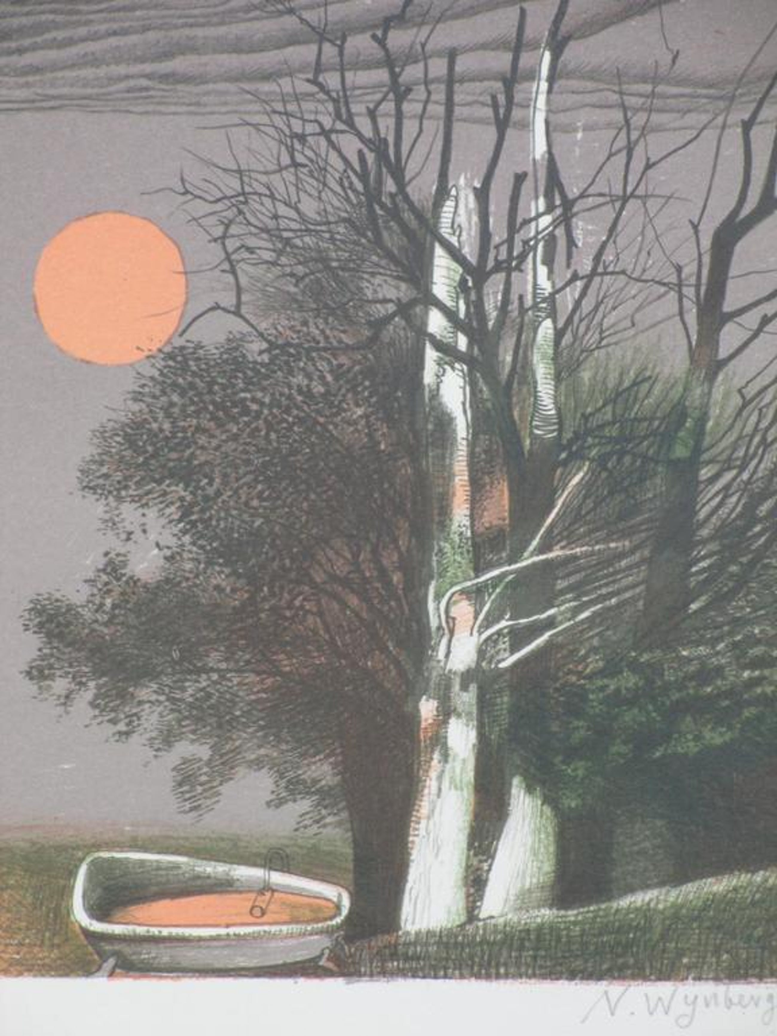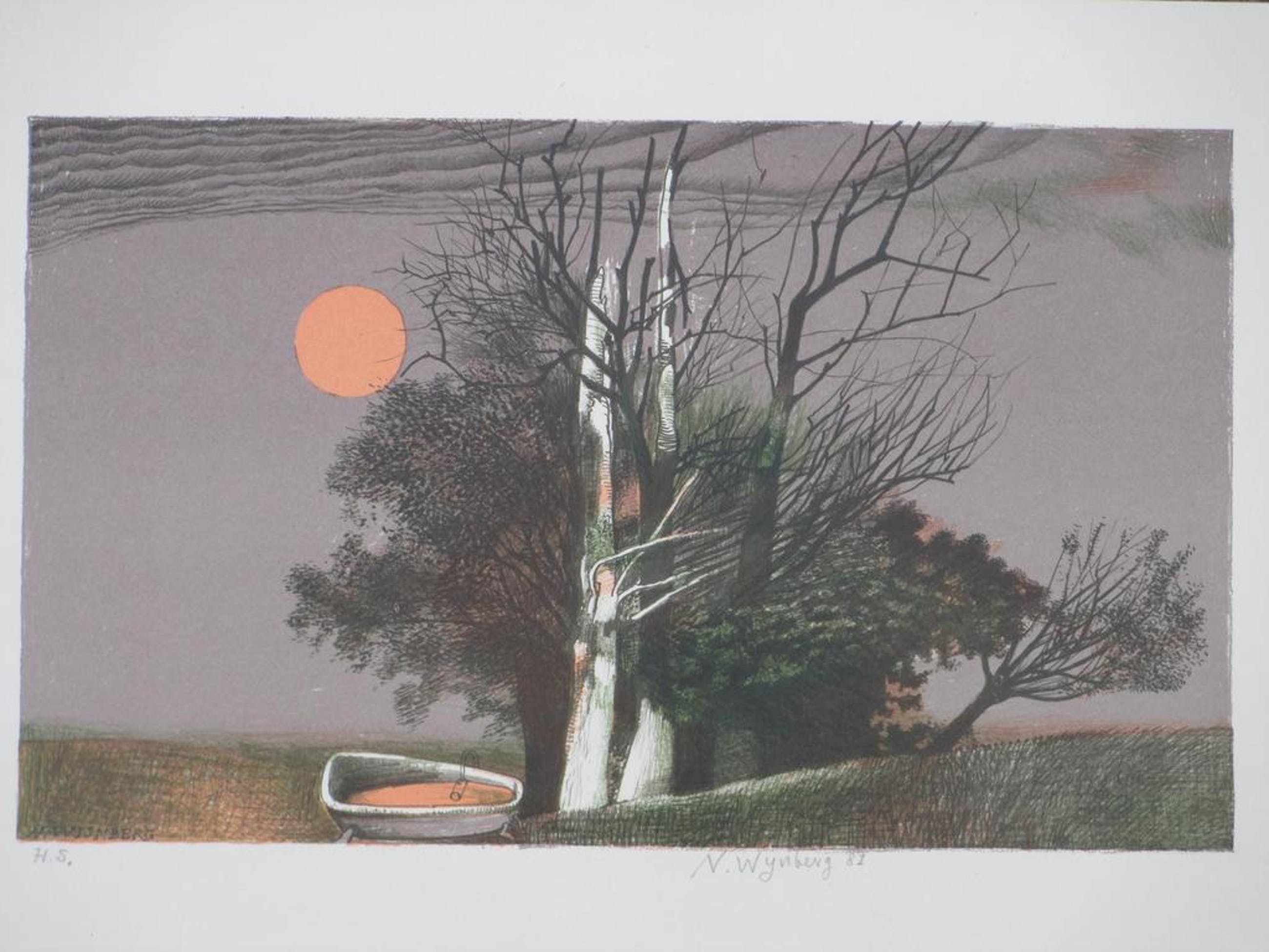 Surrealistische kleurenlitho door Nicolaas Wijnberg.
