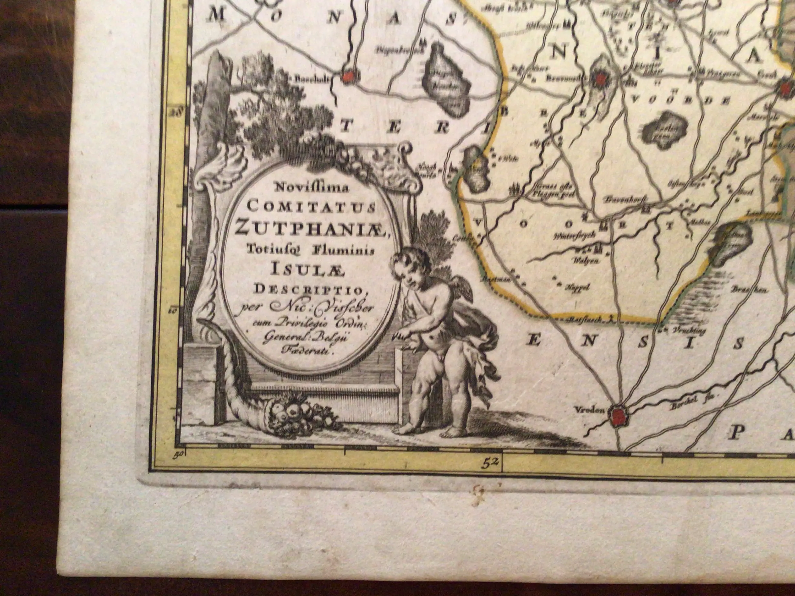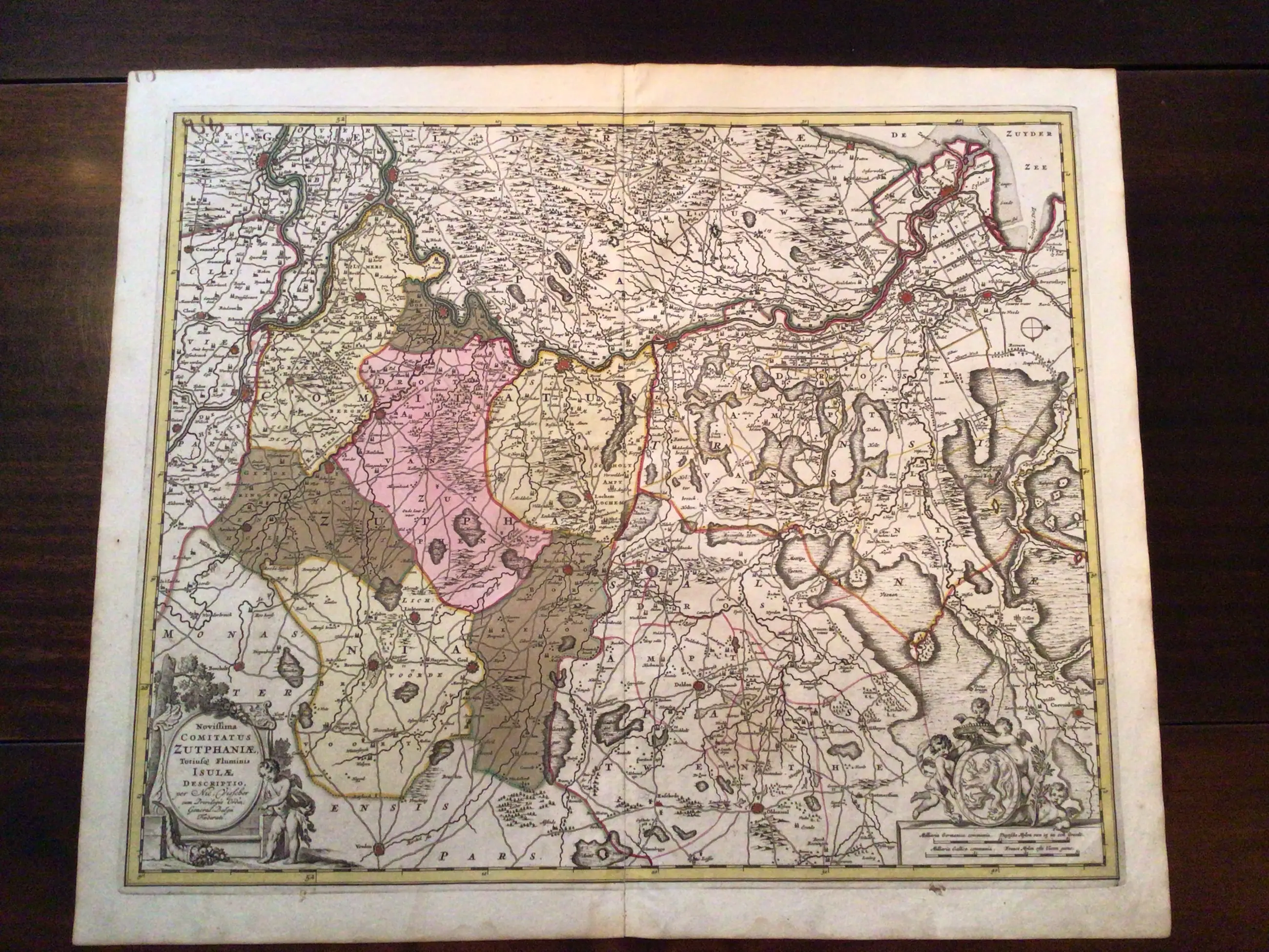 Oudgekleurde kopergravure van het Graafschap Zupthen. Zie foto's Wordt aangetekend in koker verzonden