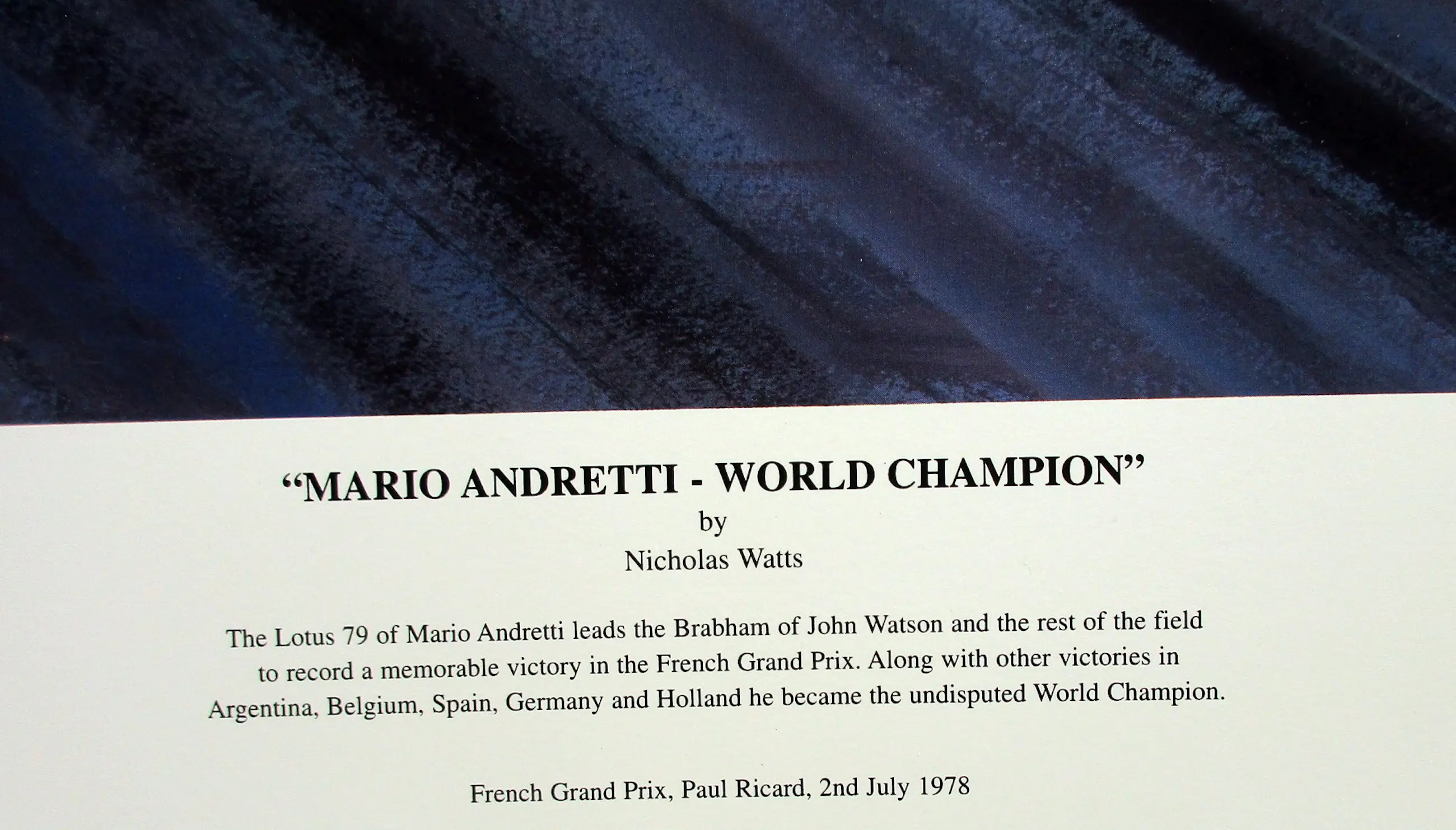 Lotus 79 #5 Mario Andretti (Signed) - Winner French Grand Prix 1978 (Paul Ricard) - "Mario Andretti-World Champion" By Nicholas Watts