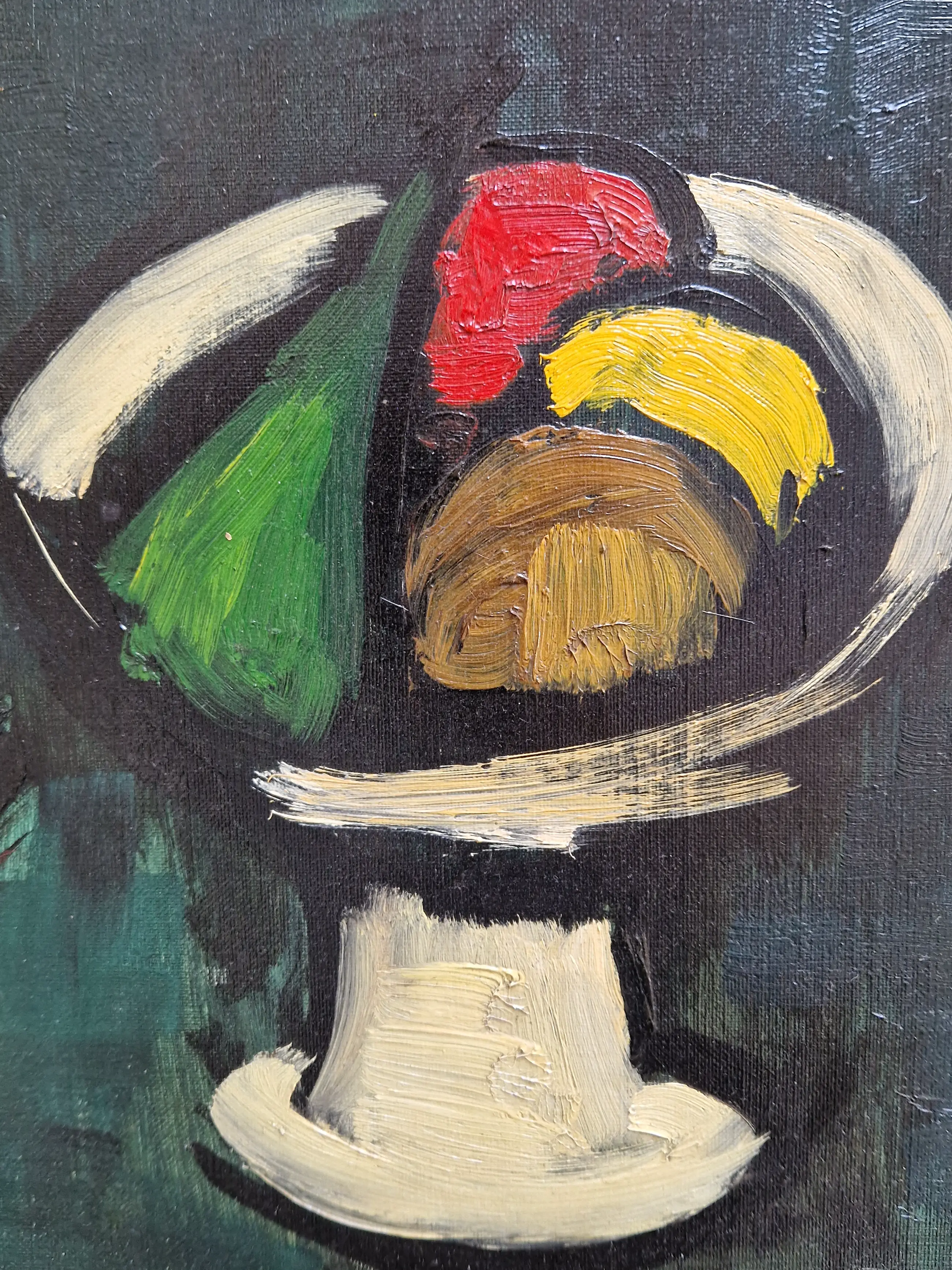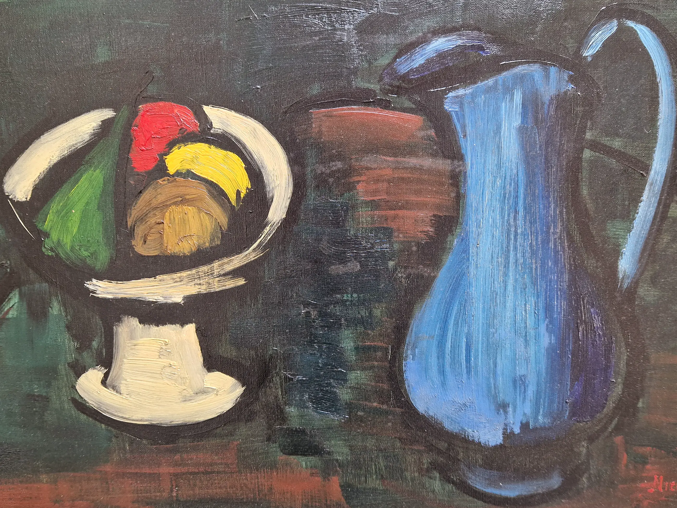 Krachtig neergezet stilleven. Het doek blijft op een bijzondere wijze de aandacht vasthouden.