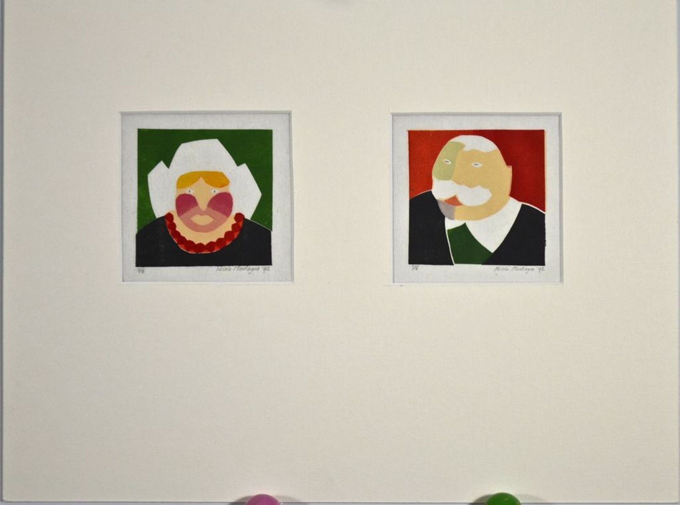 Twee mooie sjabloondrukken van Nicole Montagne gezamenlijk in een passe-partout