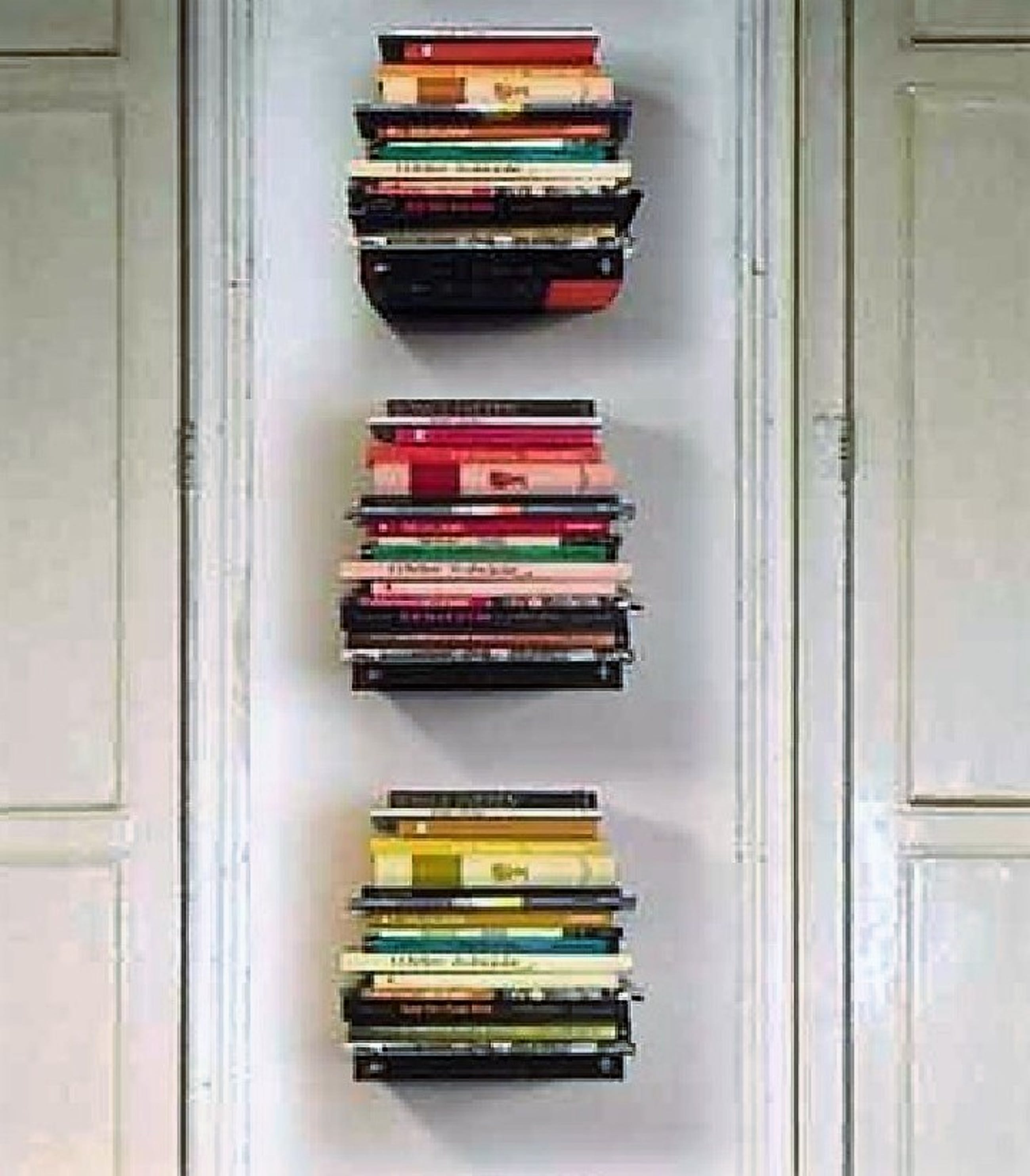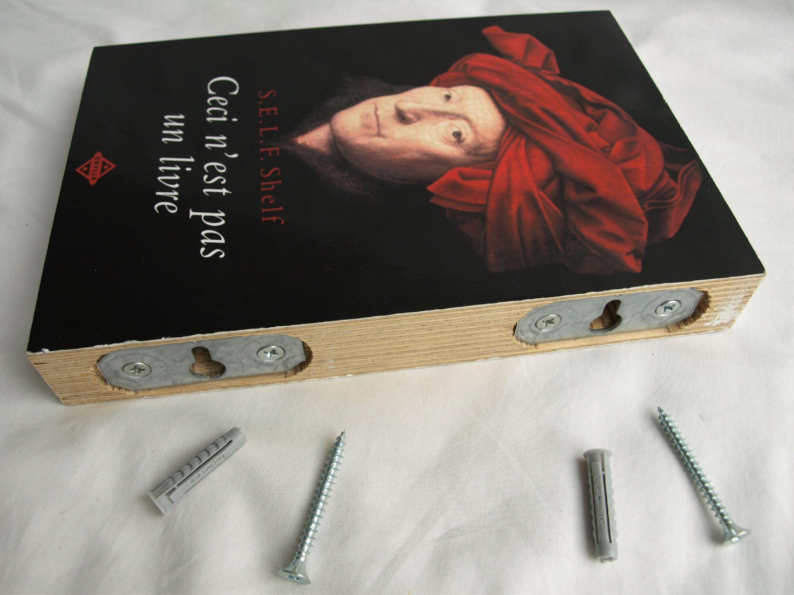 De ‘Selfshelf’ ziet er uit als een boek, maar is een boekenplank, waardoor het lijkt het of de boeken die erop liggen zweven. Er passen ca. 8 tot 15 boeken (4 kg) op.