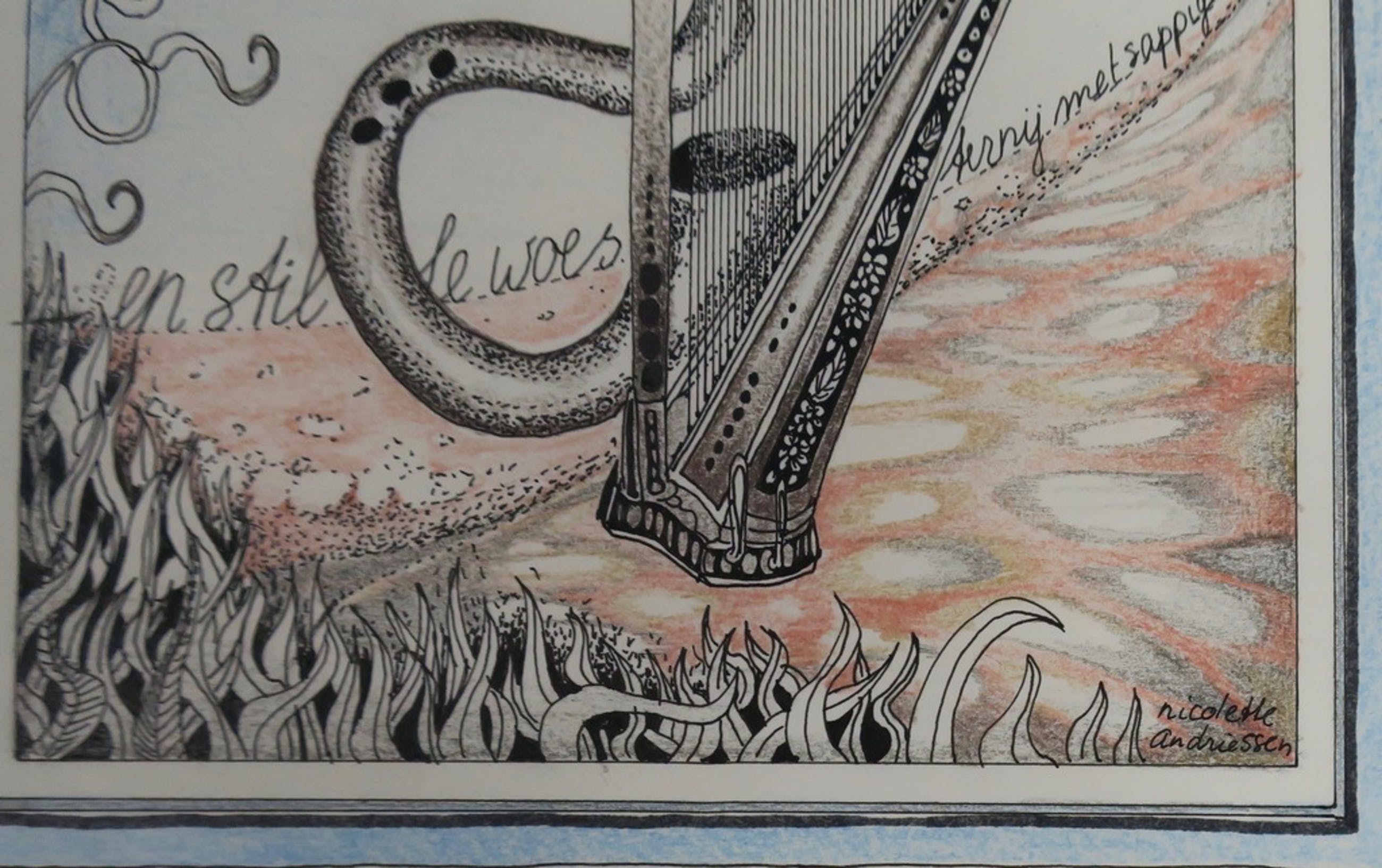 Materiaal: Gemengde techniek (o.a. potlood, pen en collage) op papier