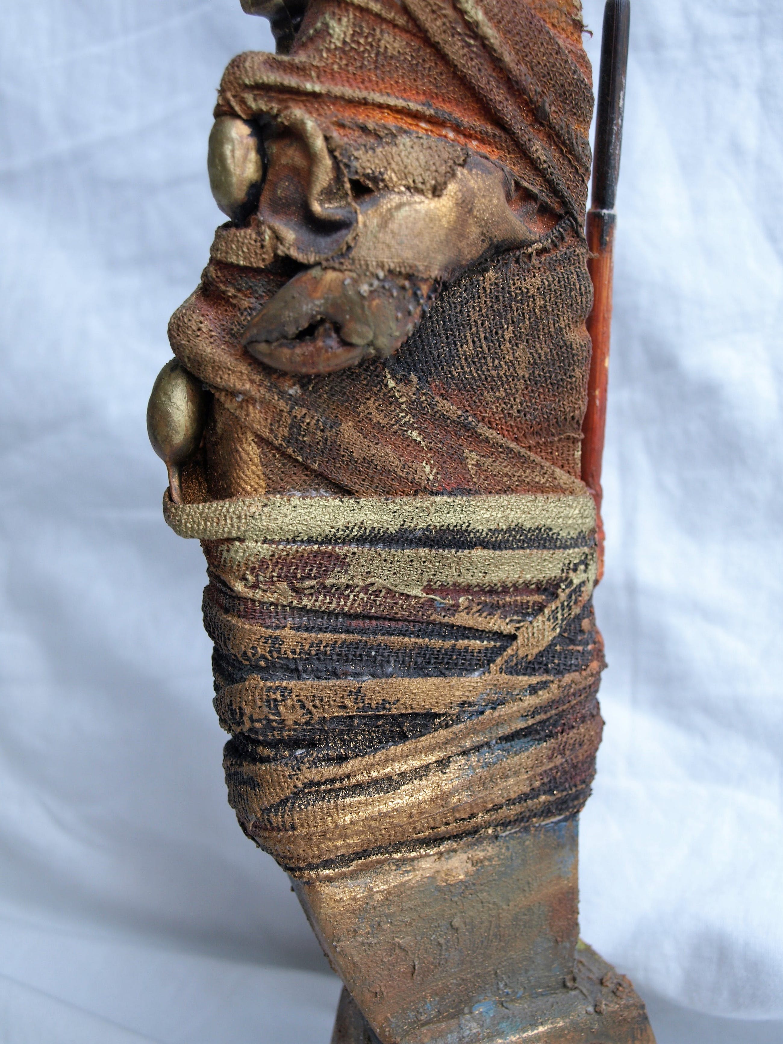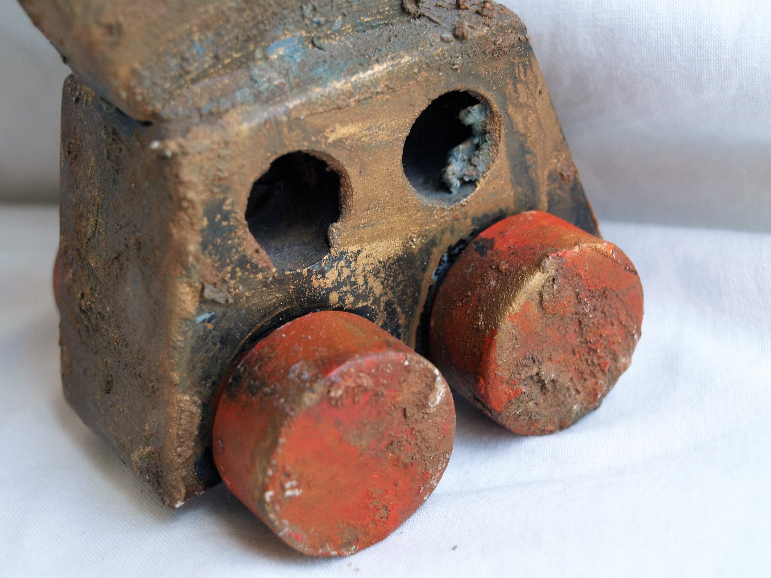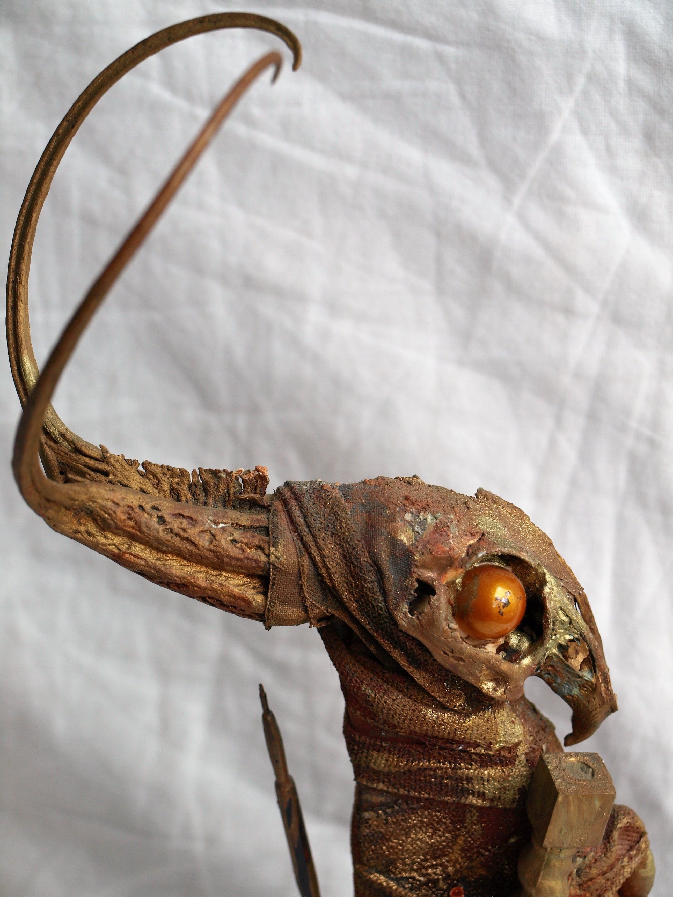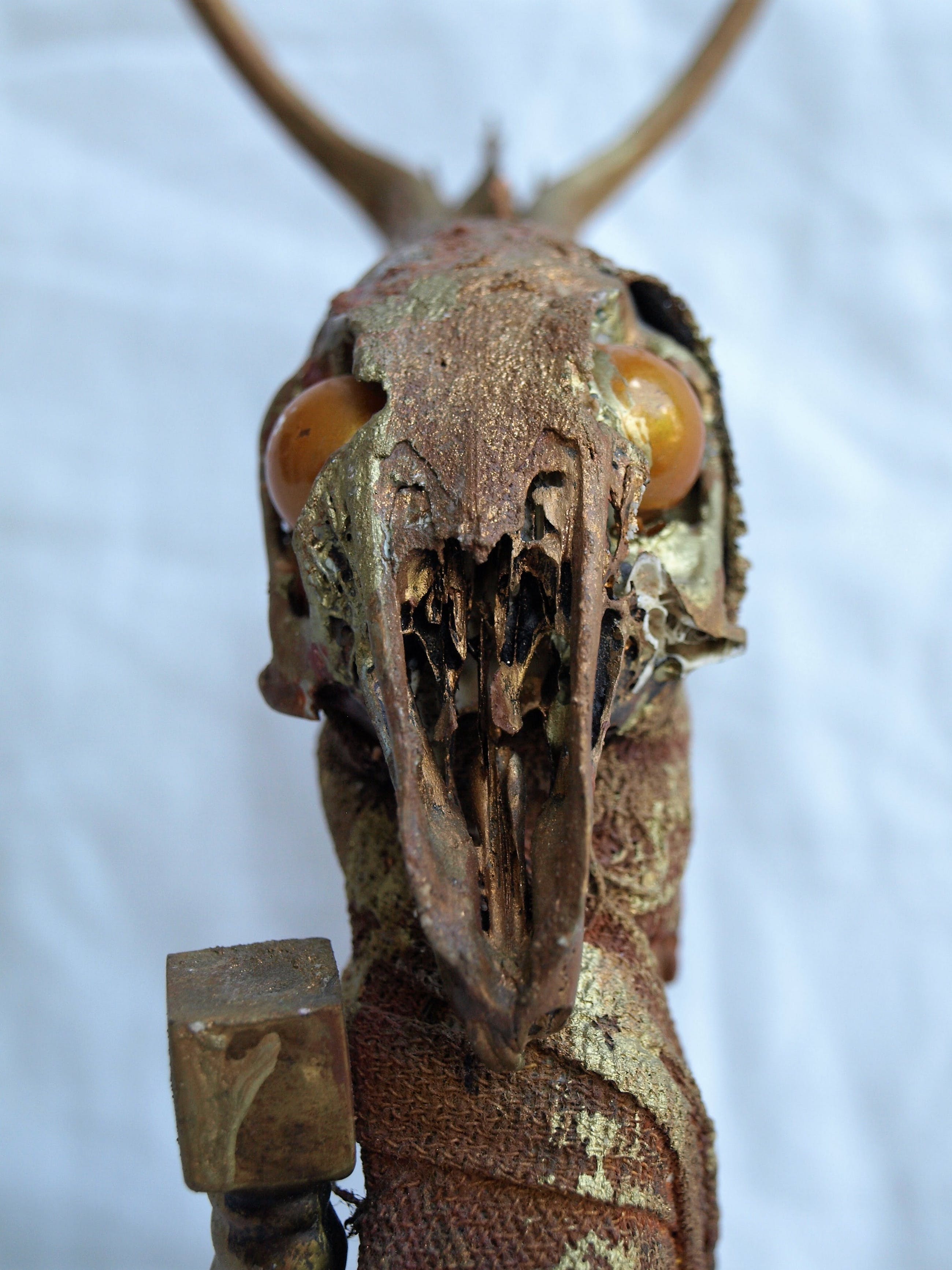 Een assemblage op wieltjes van de Nederlandse kunstenaar Niek Bruynzeel (1952), gemaakt van gevonden en/of verloren materiaal (o.a. hout, speelgoed, dierenschedel(s), goudverf, doek).