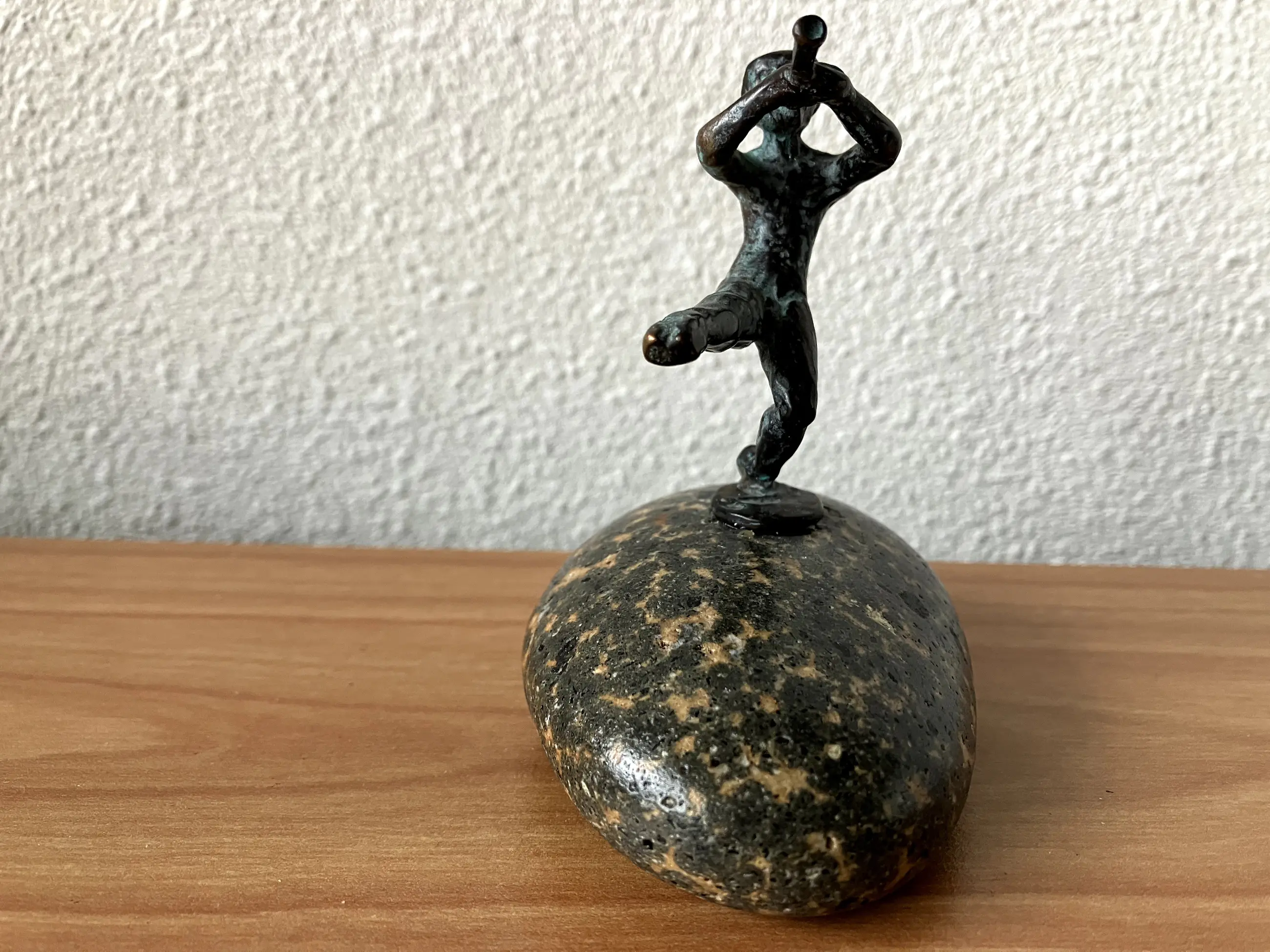 Het betreft een schitterend beeld op een steen geplaatst - in totaal 9 cm hoog.