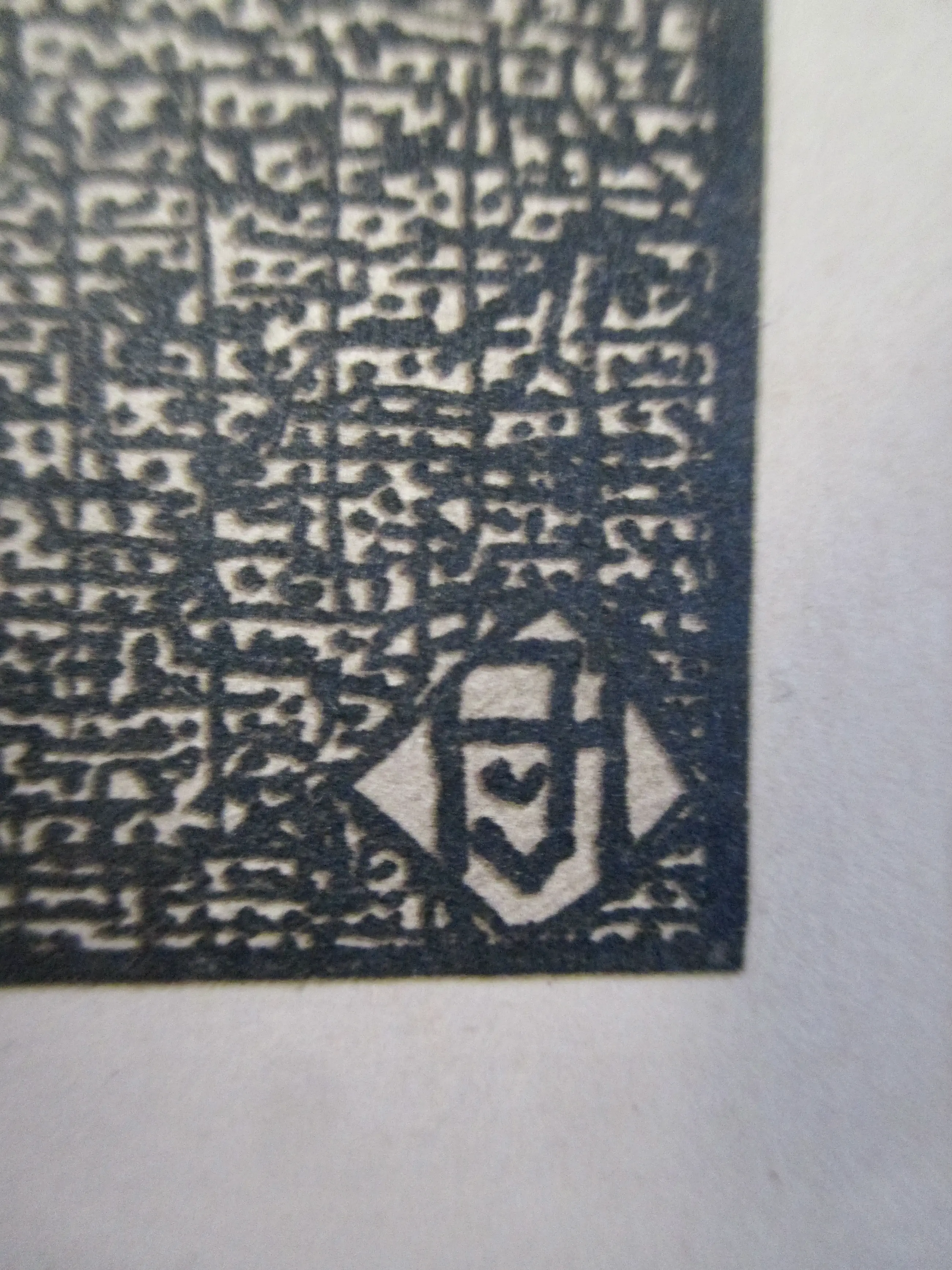 2 en 3. twee etsen monogram AvJ of HvJ of JvH, bij 1 ets roestvlekje in beeld