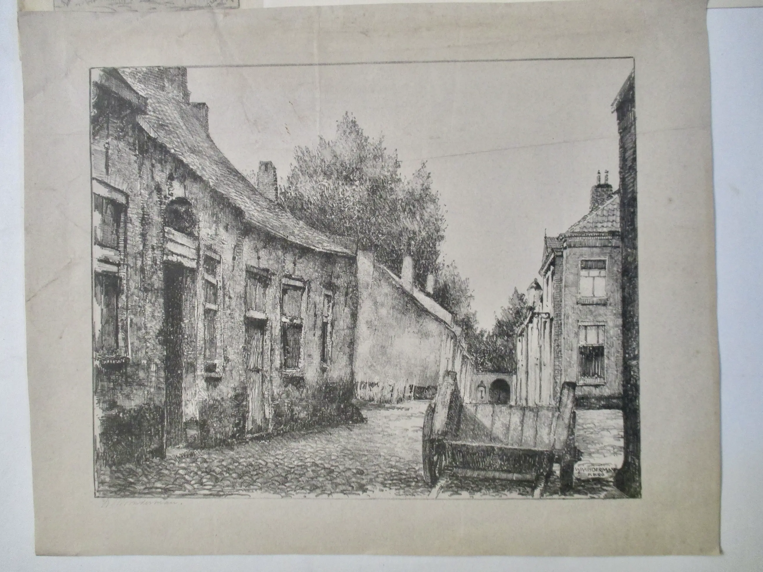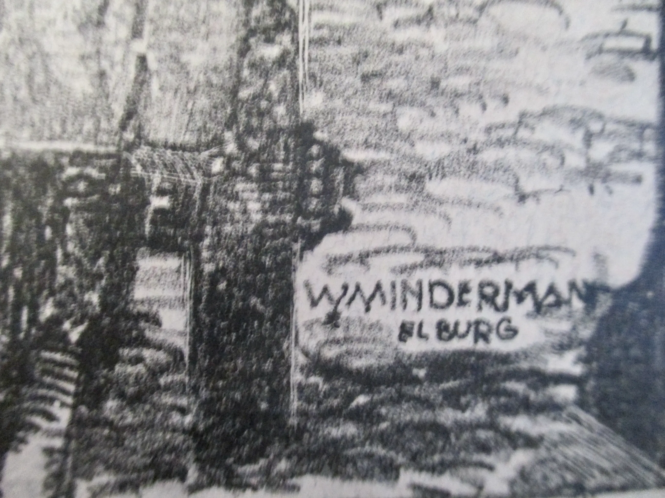 1. litho W. Minderman Elburg, gesigneerd in de druk, er zitten meerdere vouwen en kreukels en ook vlekjes op het blad.