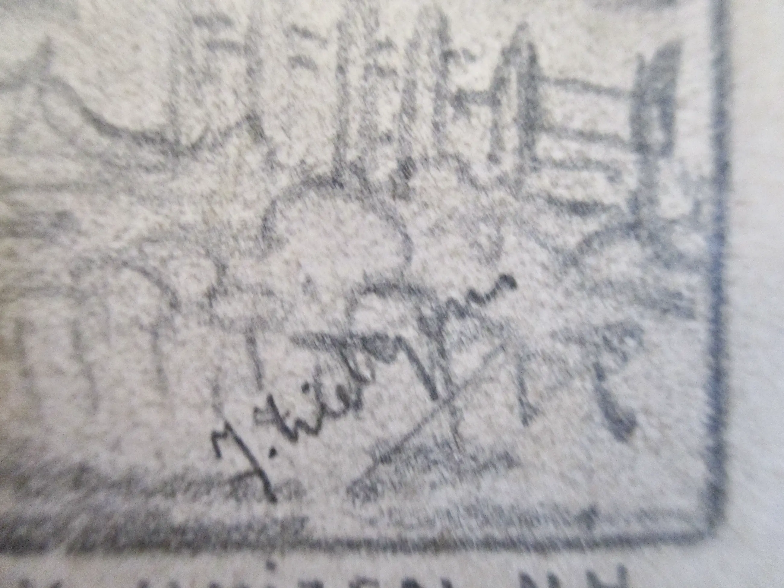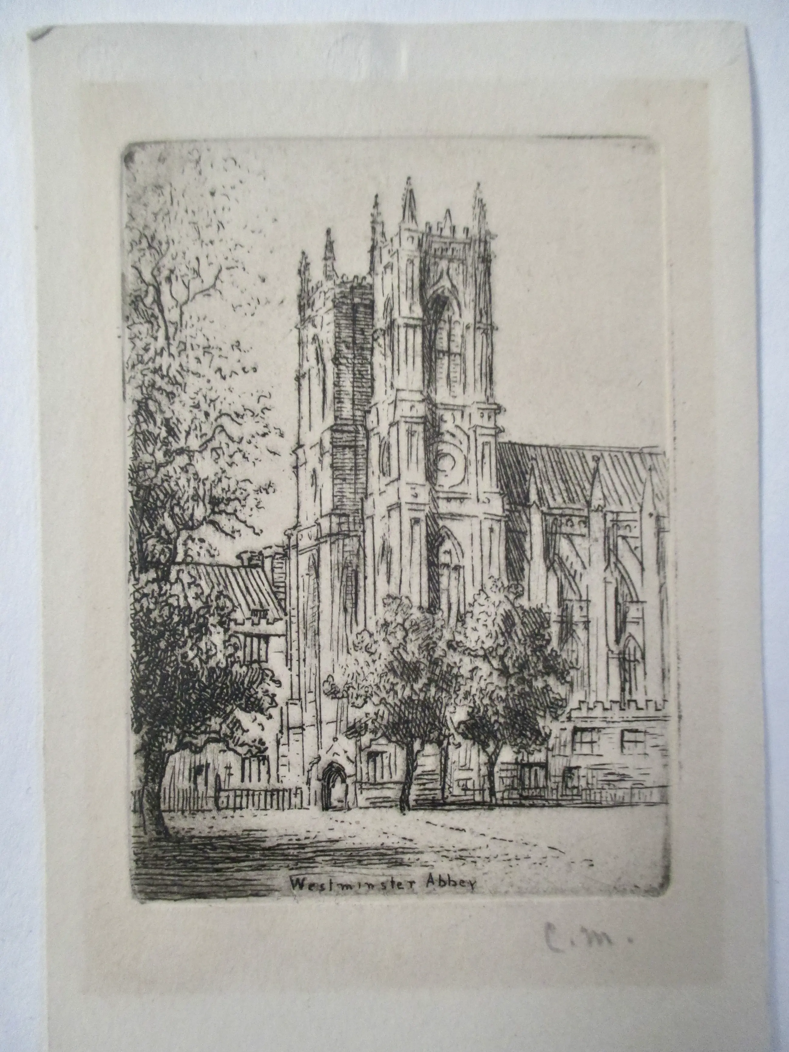 9. etsje Westminister Abbey gesigneerd. L.M? form. blad 12x8,5 cm