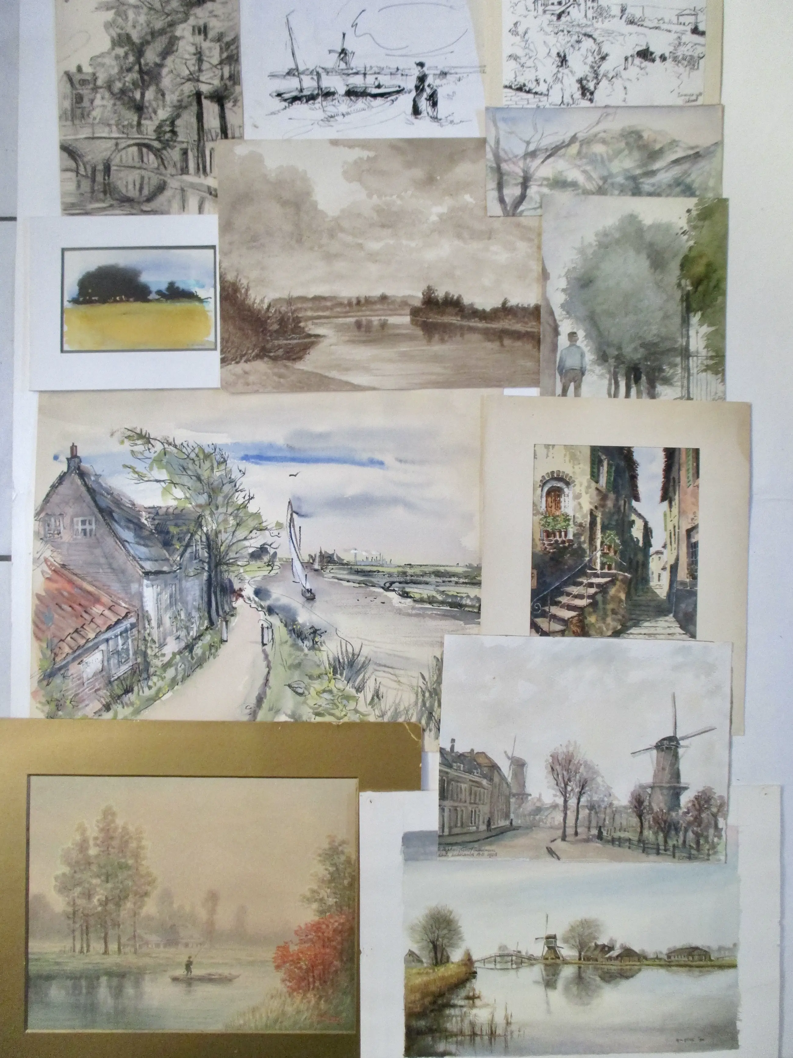 7. gewassen bruine pen riviergezicht niet gesigneerd
