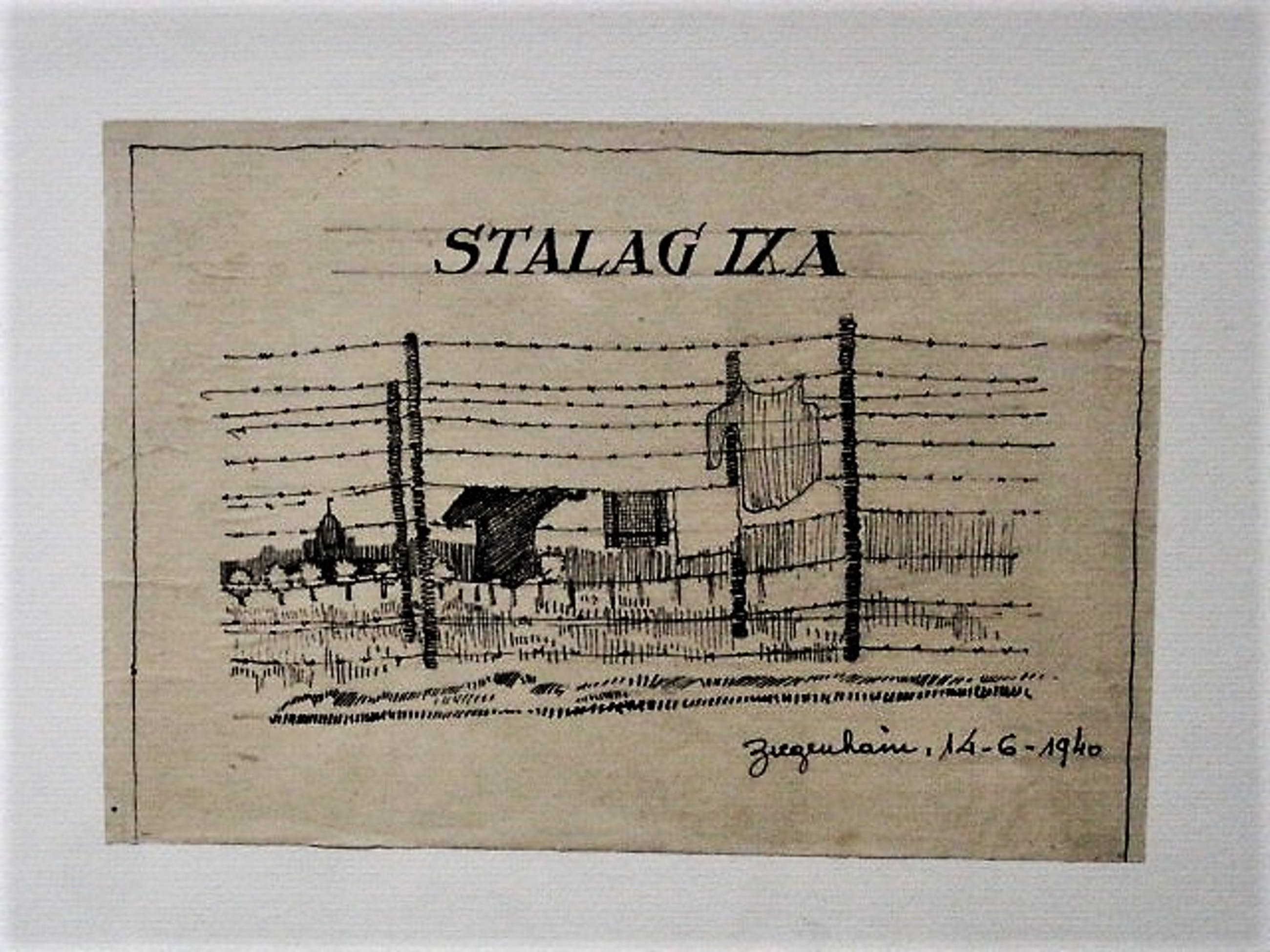 Onbekend - 1940 - 3 x tekening "STALAG IX A Ziegenhain" W.O.II - gesigneerd - Verkocht
