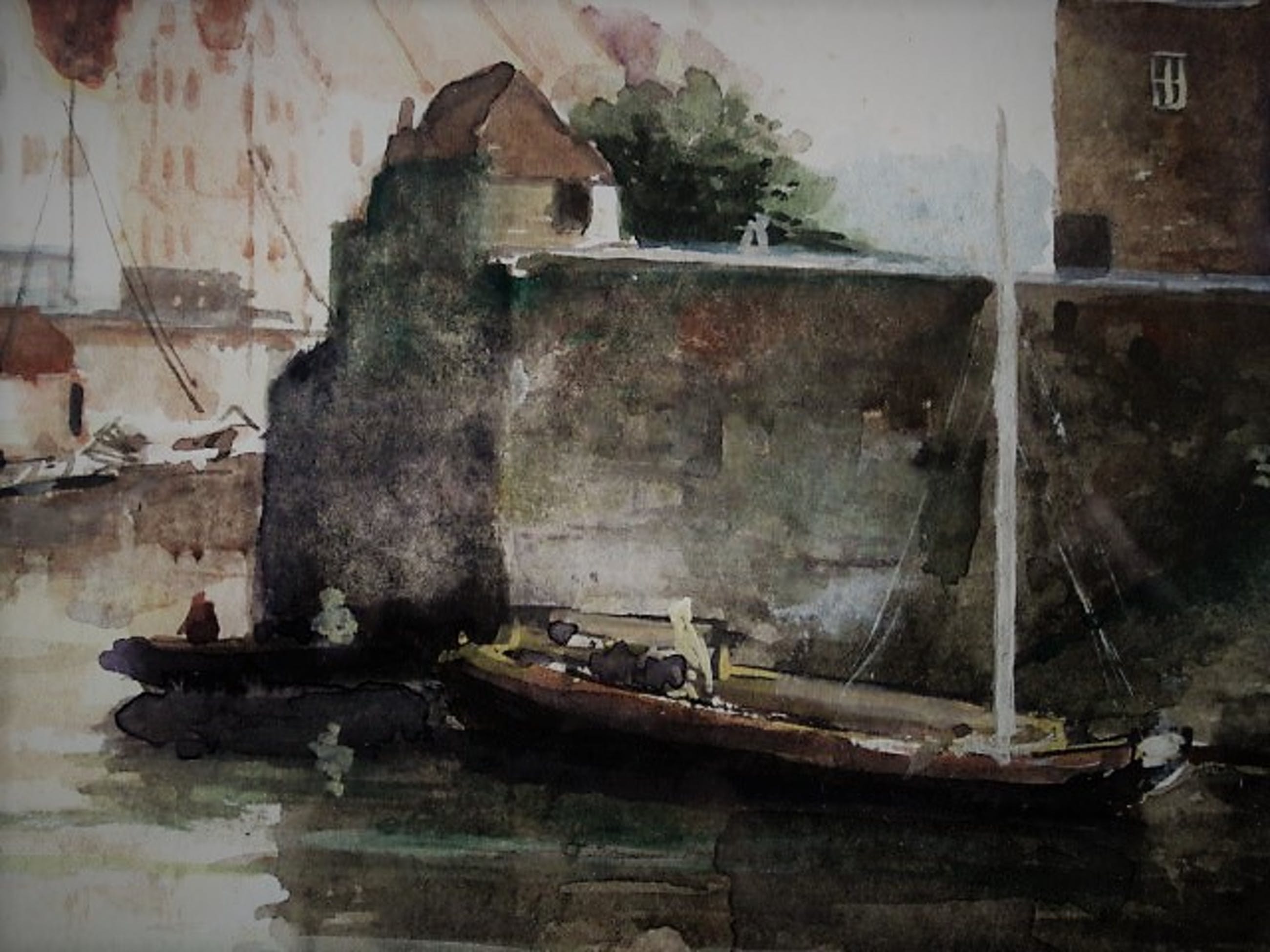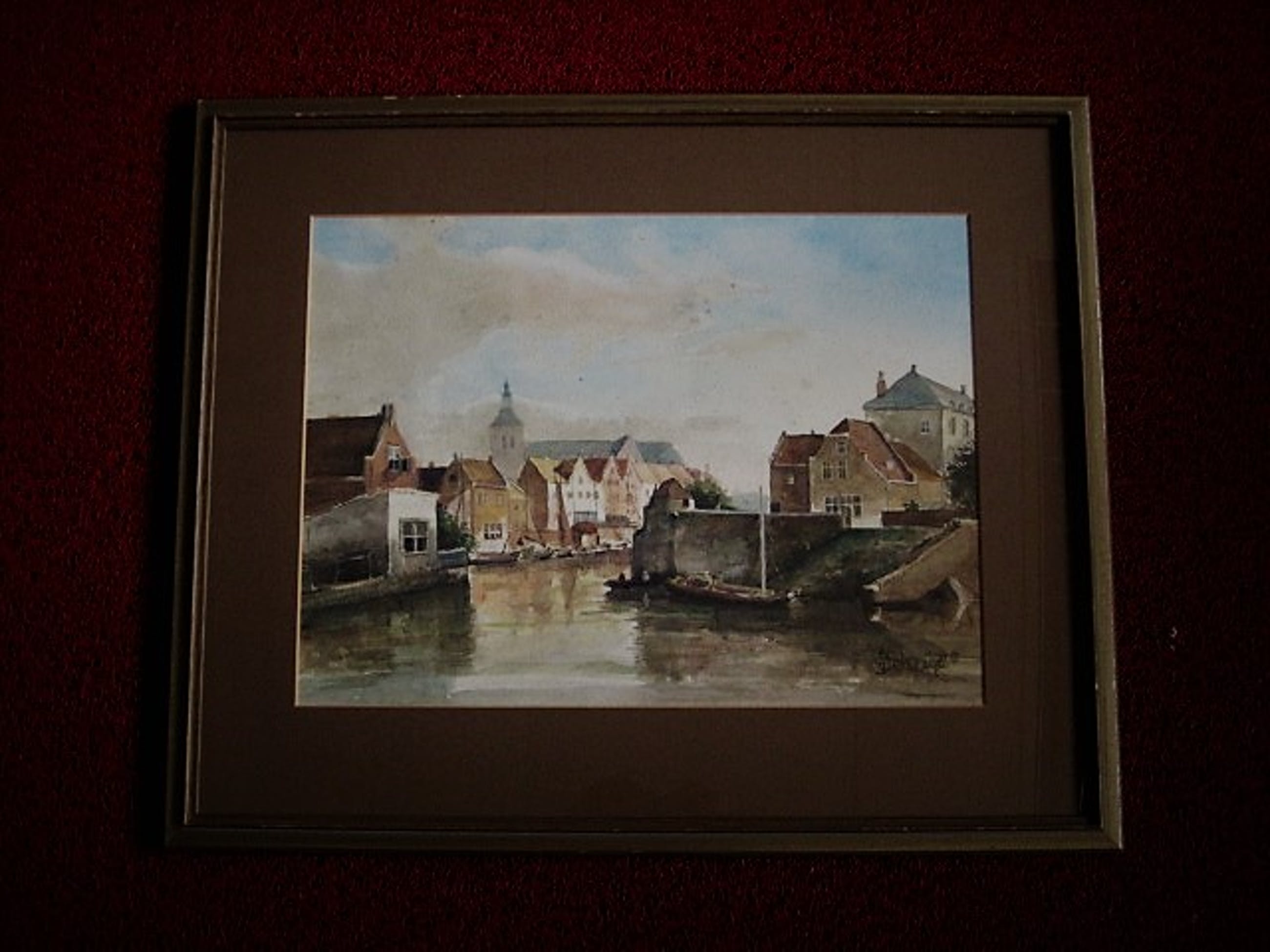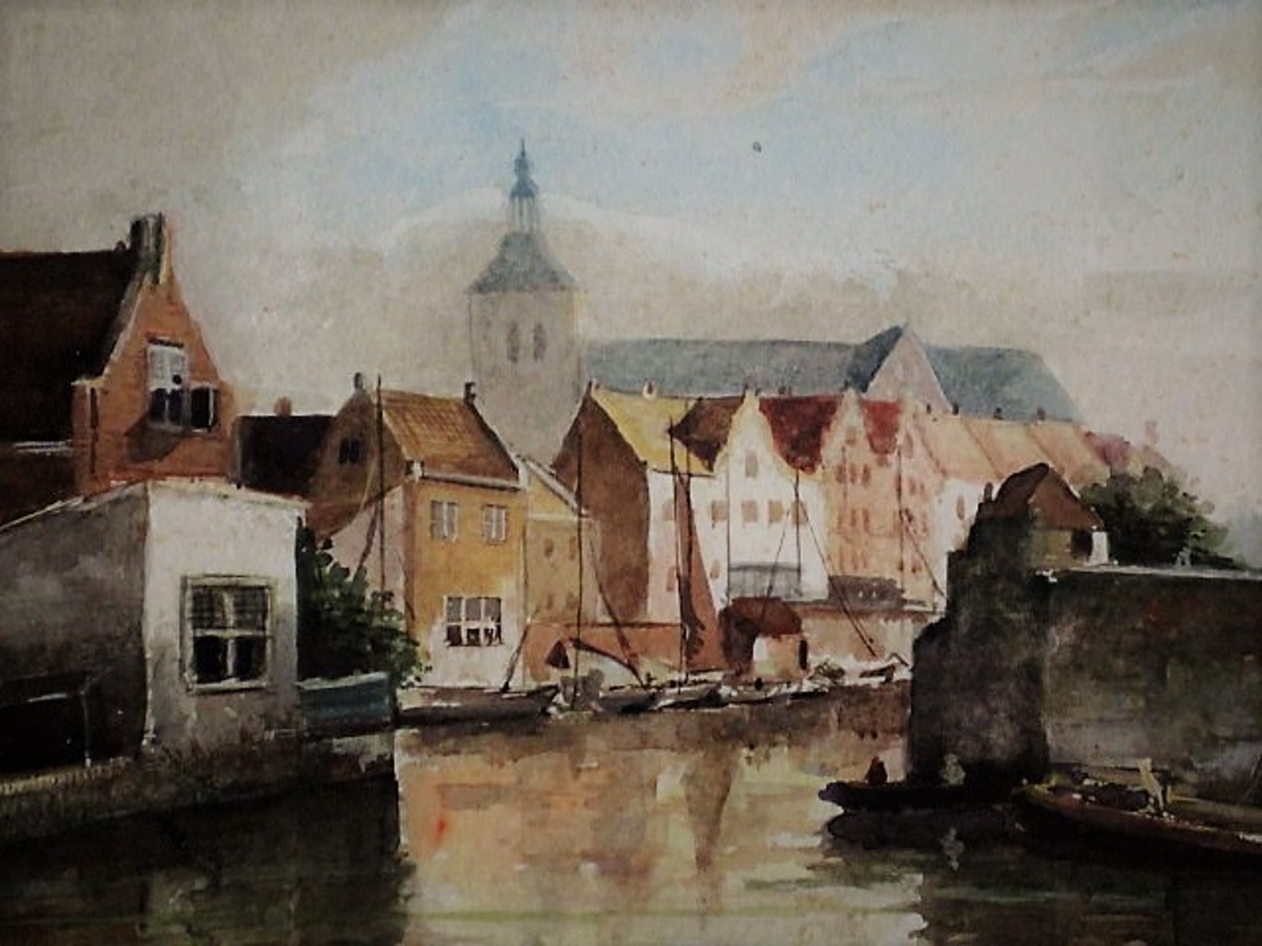 Goed geconserveerde 19e eeuwse(1878) Aquarel. Rechtsboven in de luchtpartij wel de nodige kleine bruine zuurpuntjes. Mooie diepe kleuren. In nette lijst.