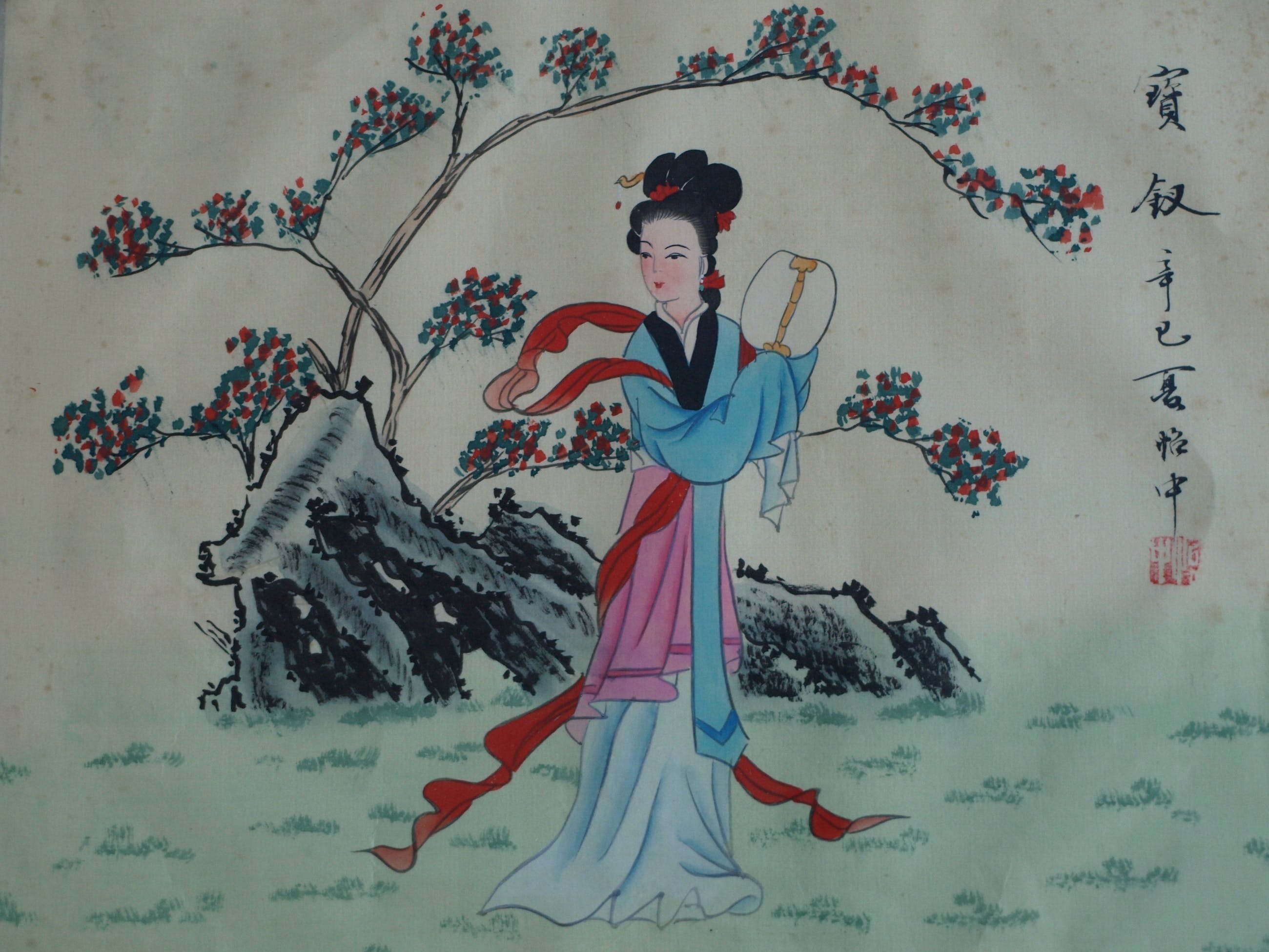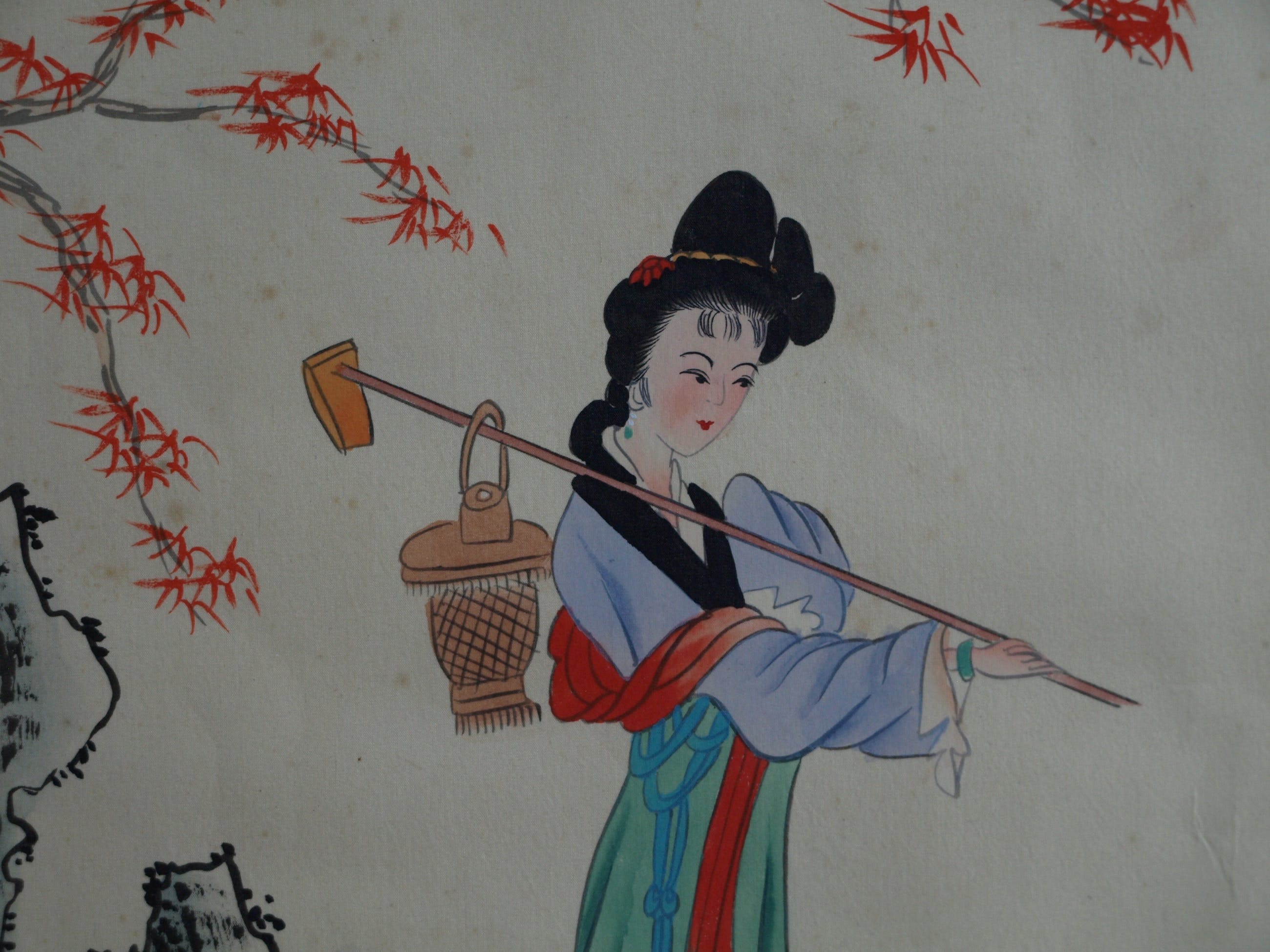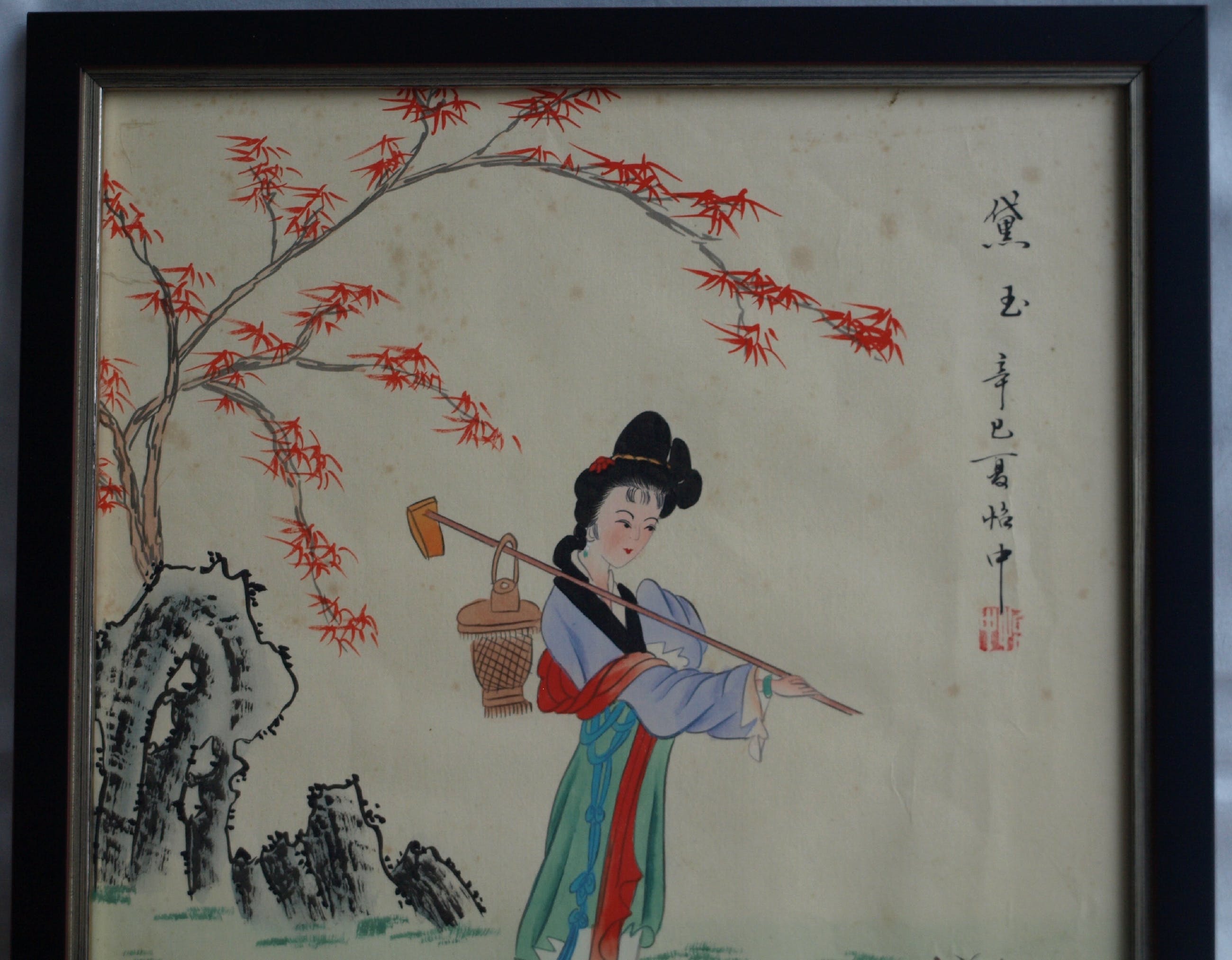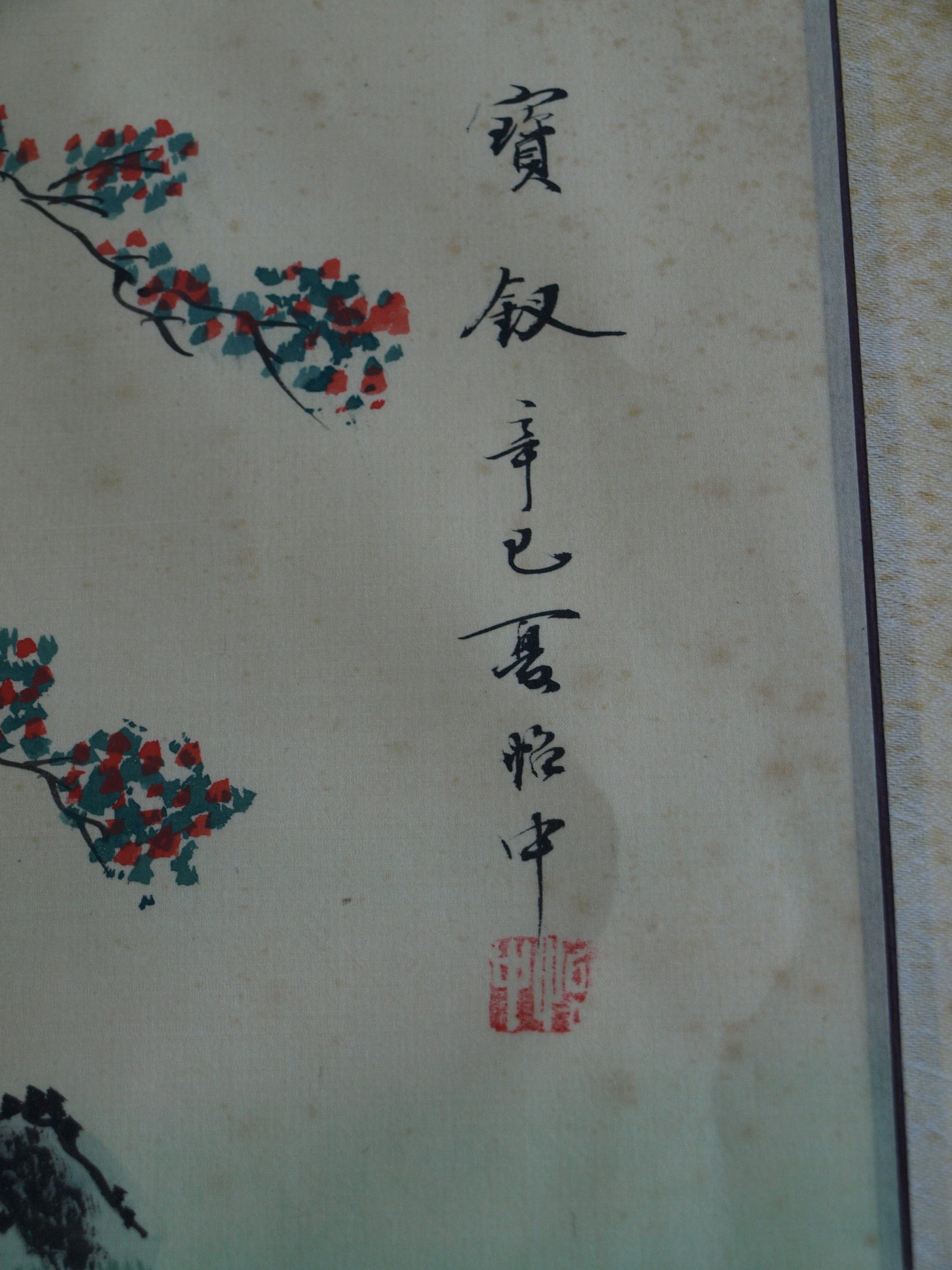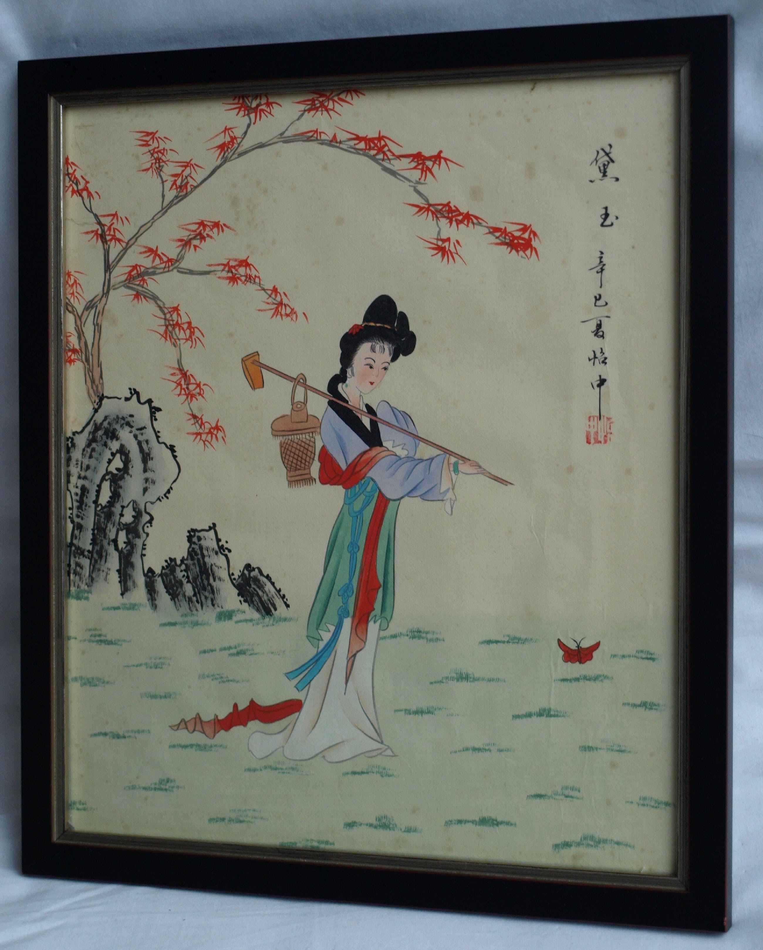 | In redelijk goede staat. Het zijde heeft ‘zuurvlekjes’ en lichte kreukjes. De lijsten hebben slijtplekjes. Zie ook de foto’s voor een eigen indruk. Kunnen zo aan de muur. | |||||||||||