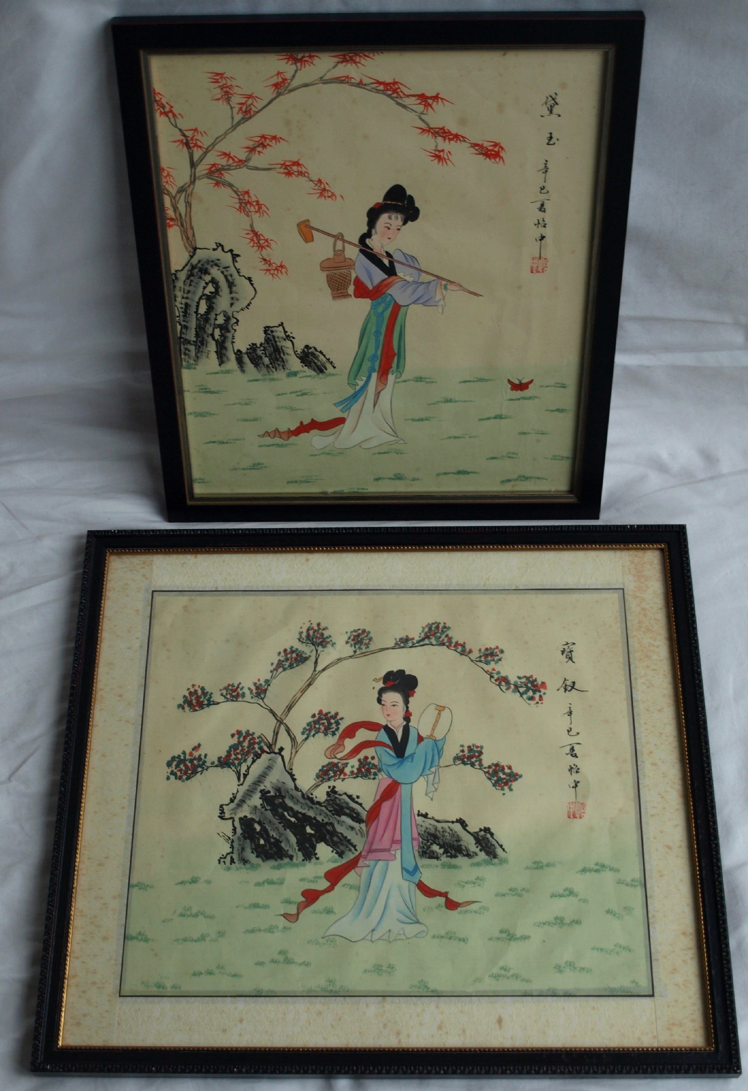 2 Ingelijste werken van een ons onbekende Chinese? of Japanse? kunstenaar.