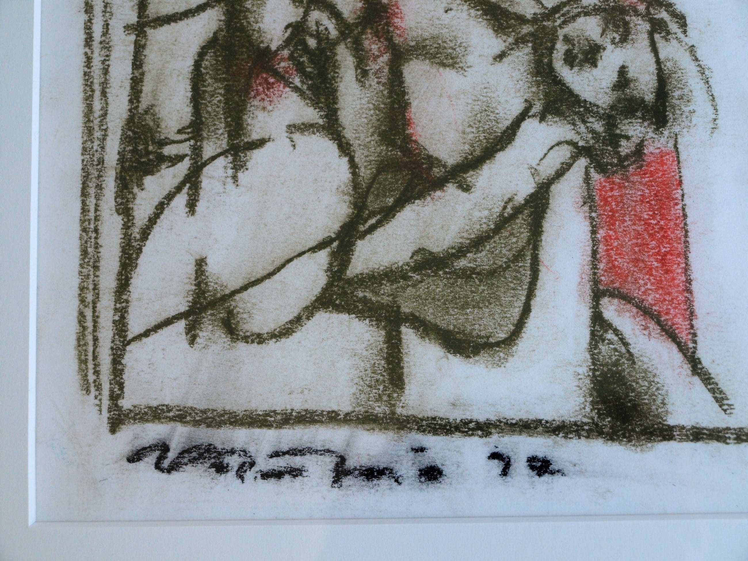 -Conditie: De pasteltekeningen zijn in goede staat. Het passe-partout van de linker tekening heeft kleurverschil/vlekken. De lijsten hebben slijtplekjes.