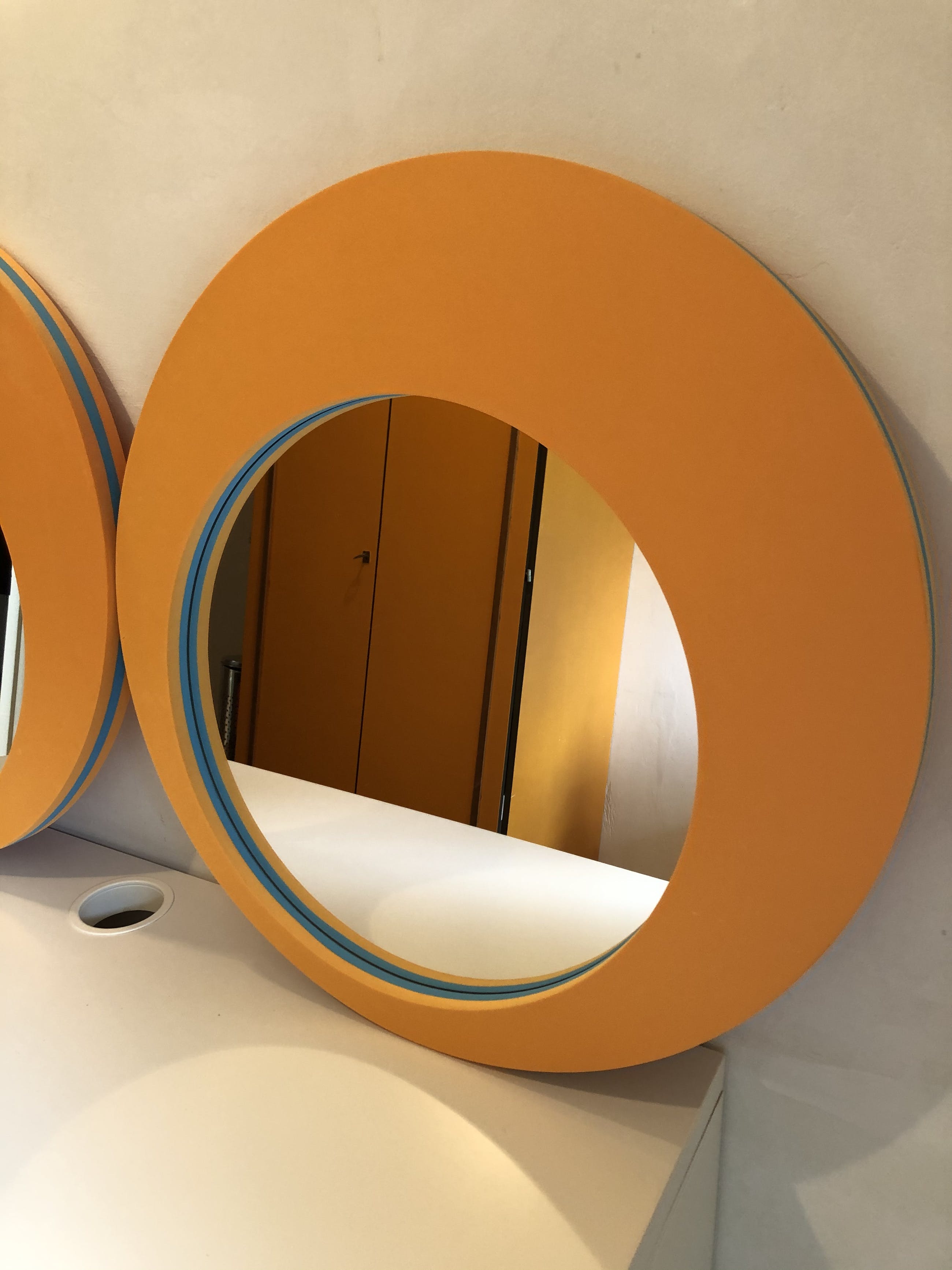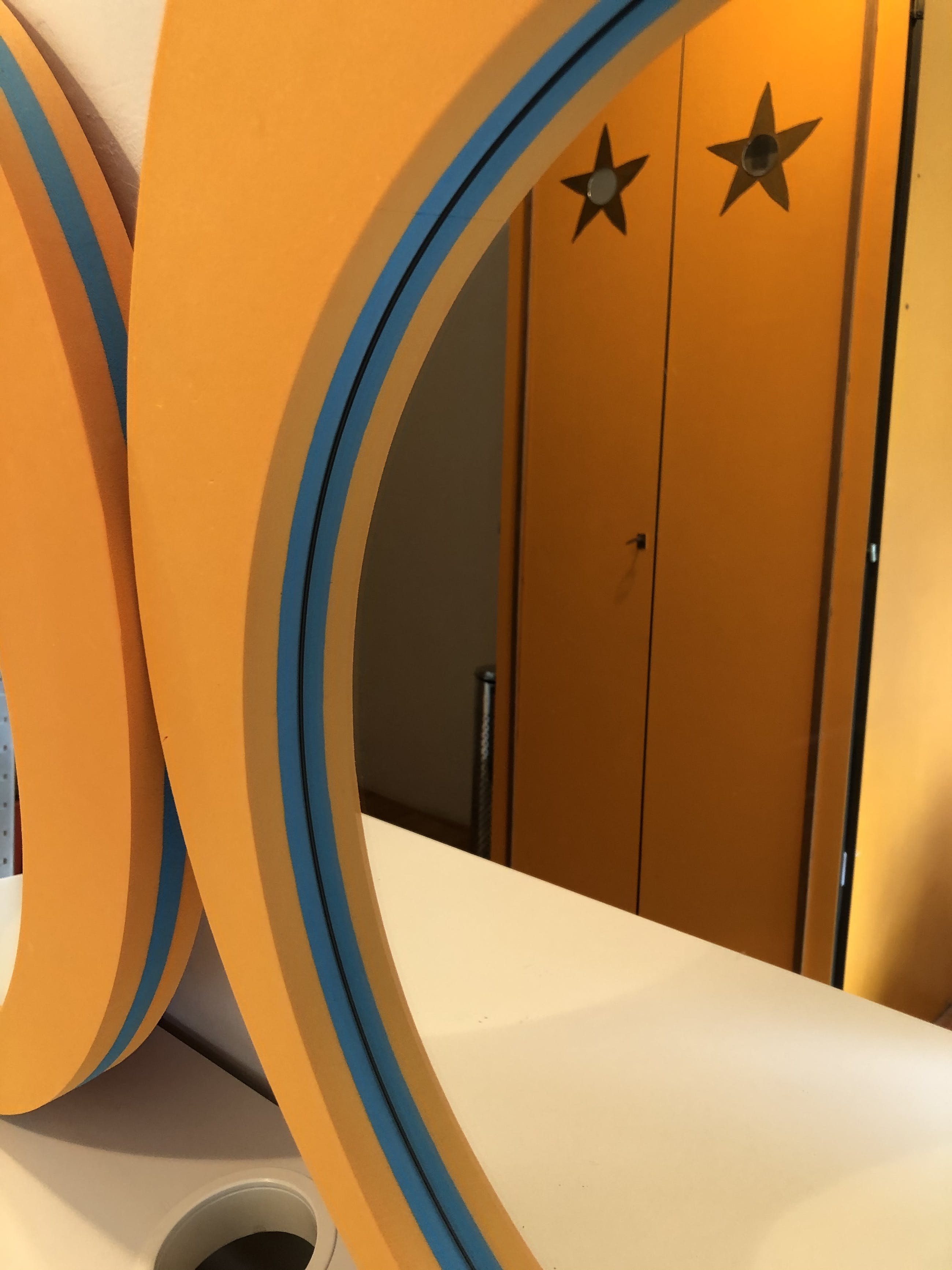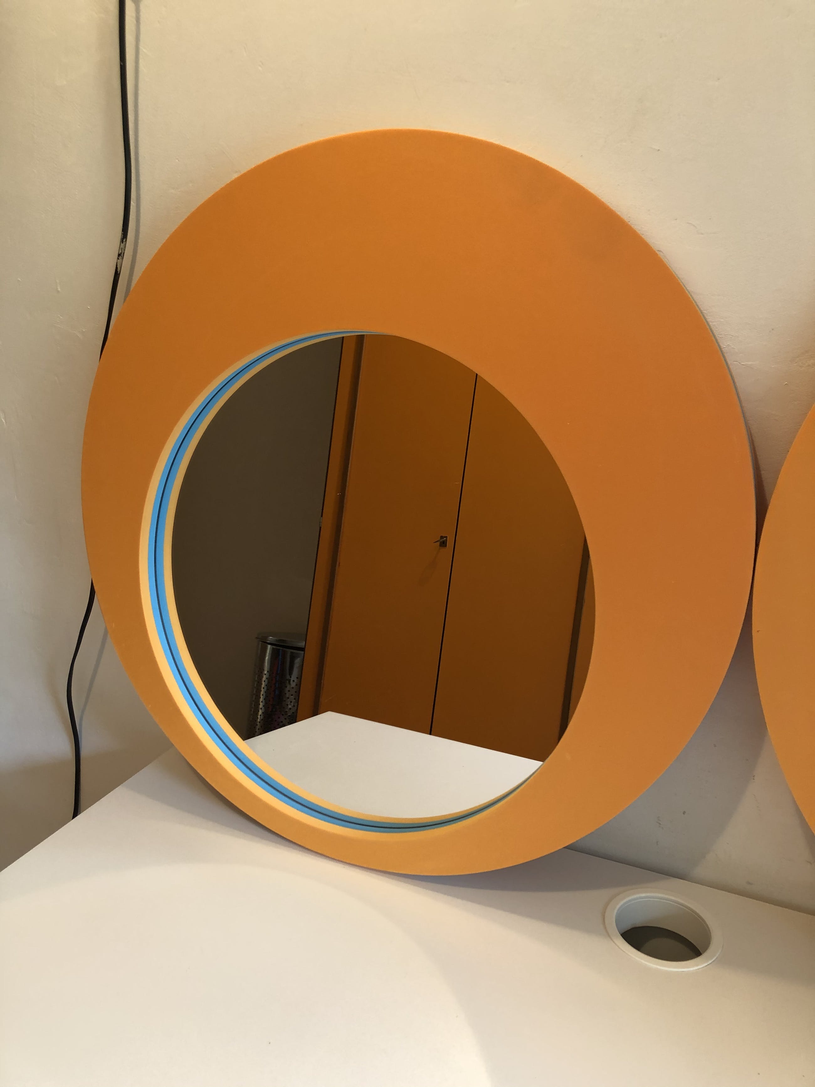 Leuke set vintage Ikea spiegels met randen van foam. Ca. 60 cm doorsnede. Horten 1999. Kleine gebruikssporen aan de achterzijde.
