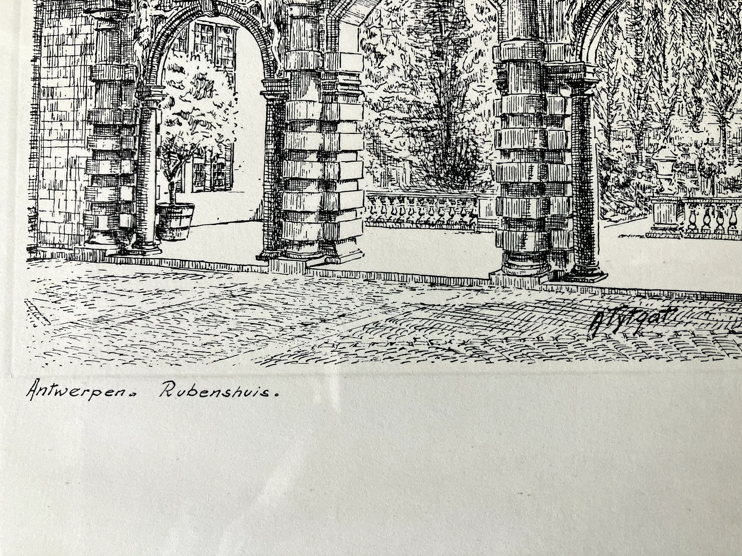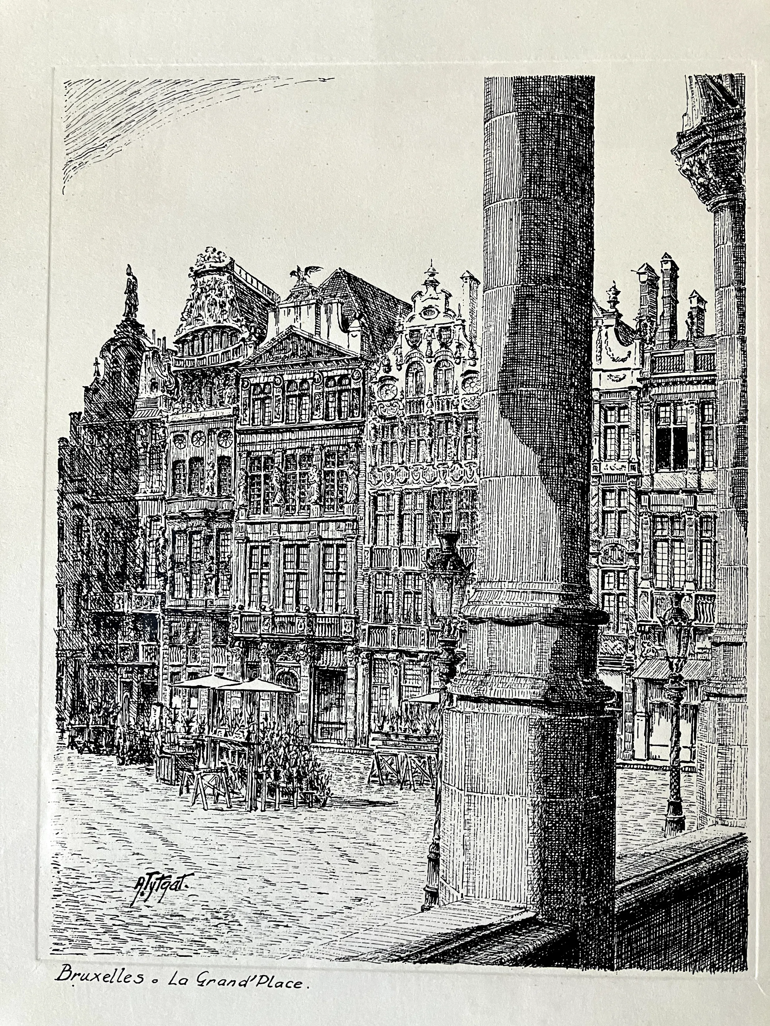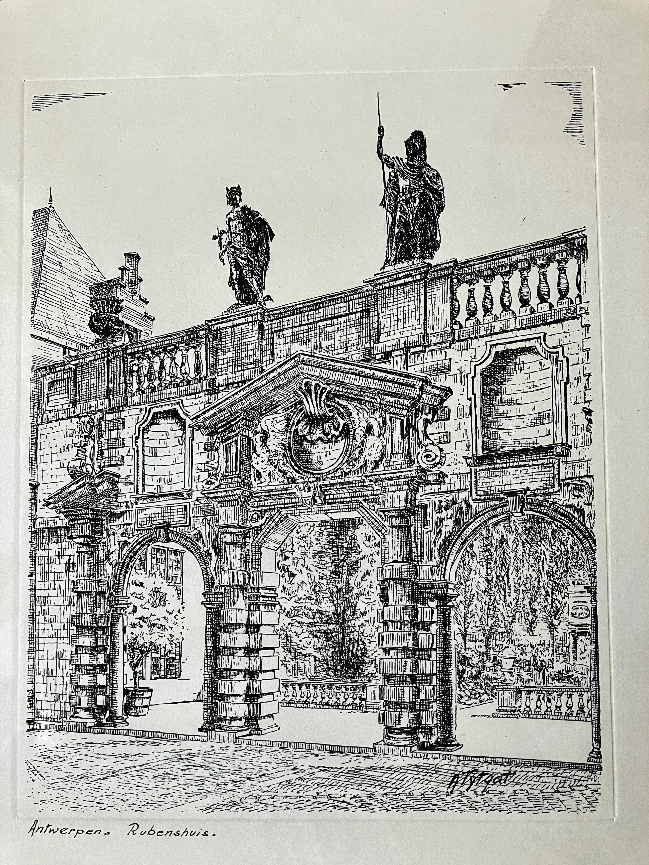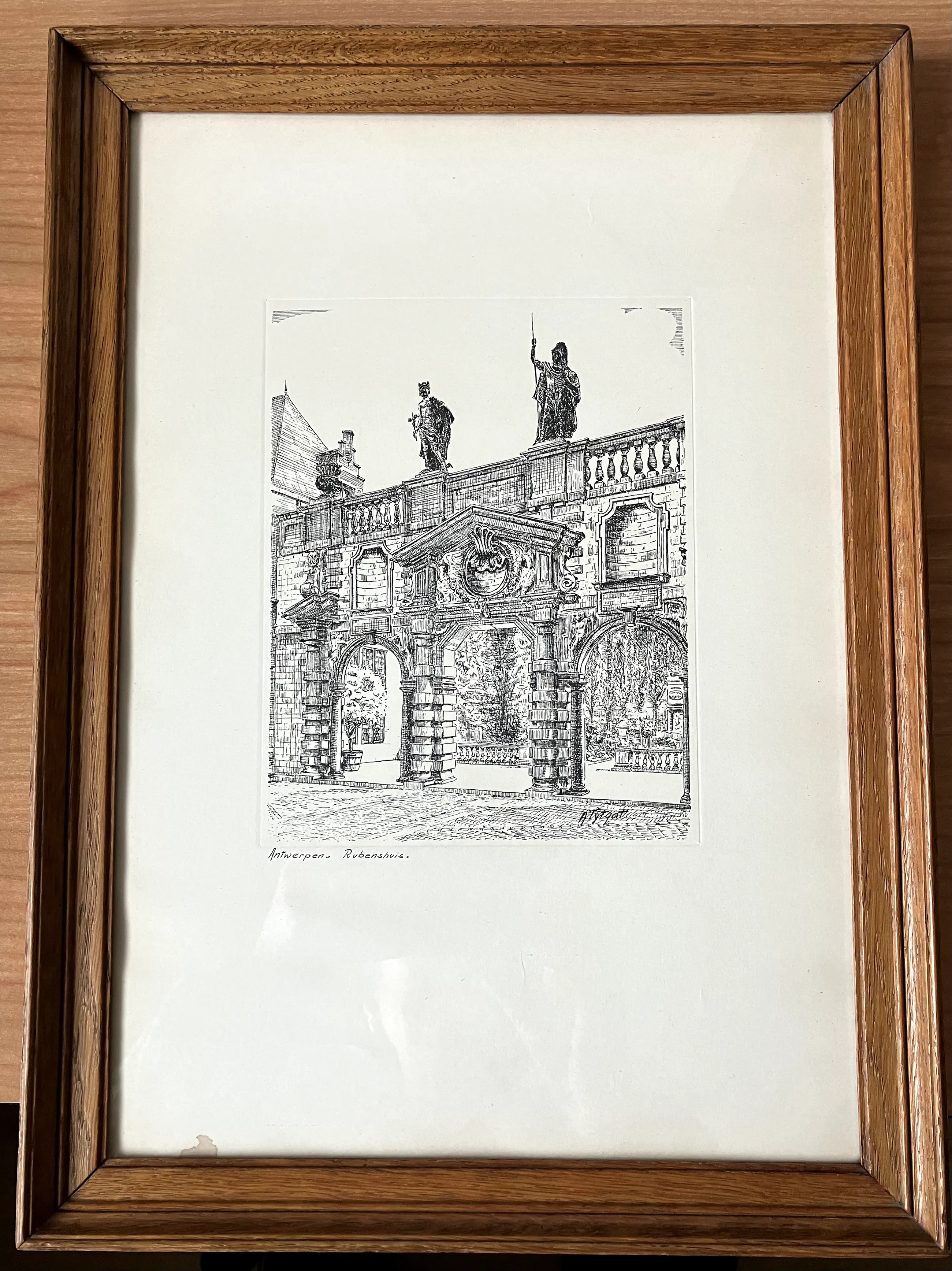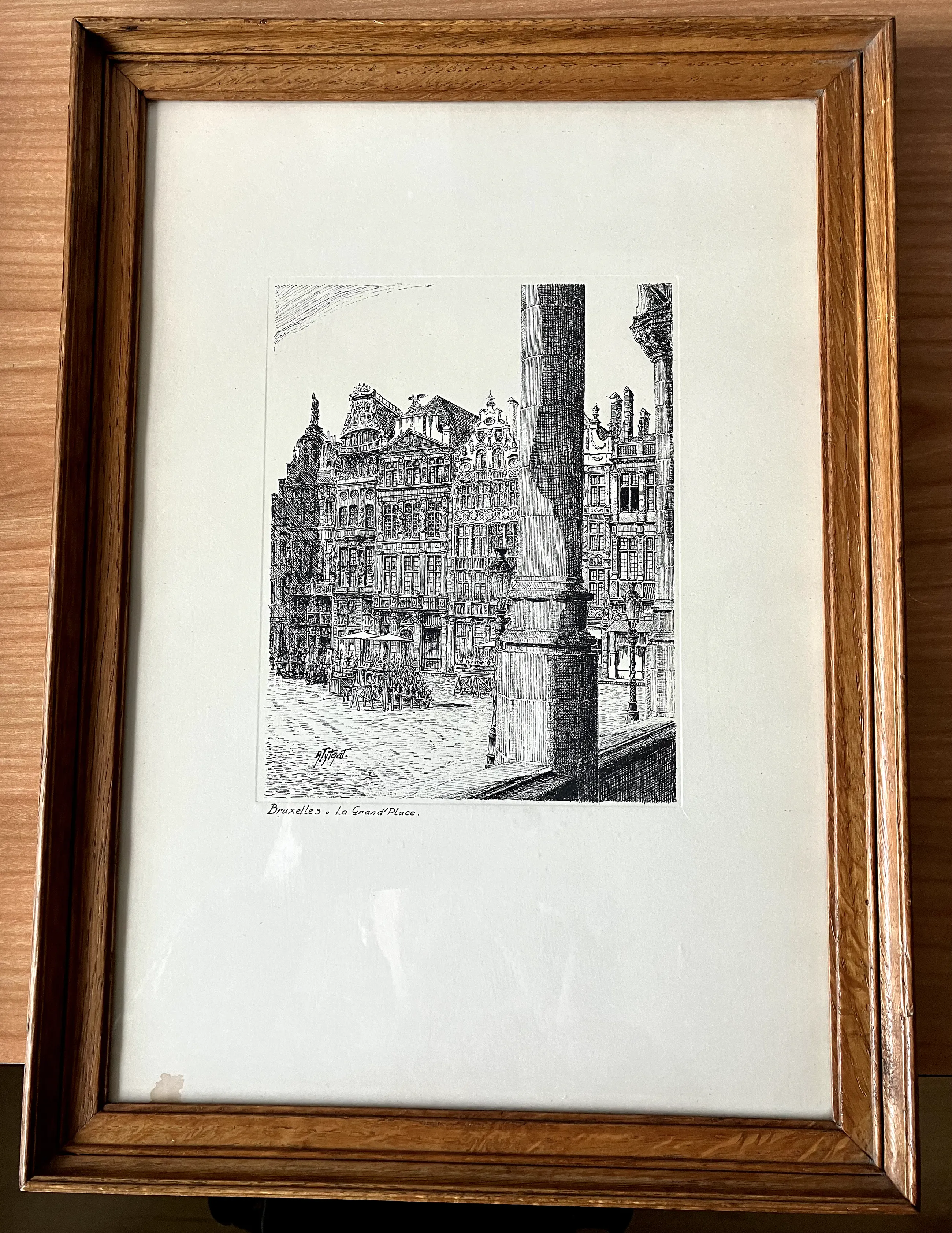 Betreft een ets van het Rubenshuis in Antwerpen en een ets van La grand place Bruxelles.