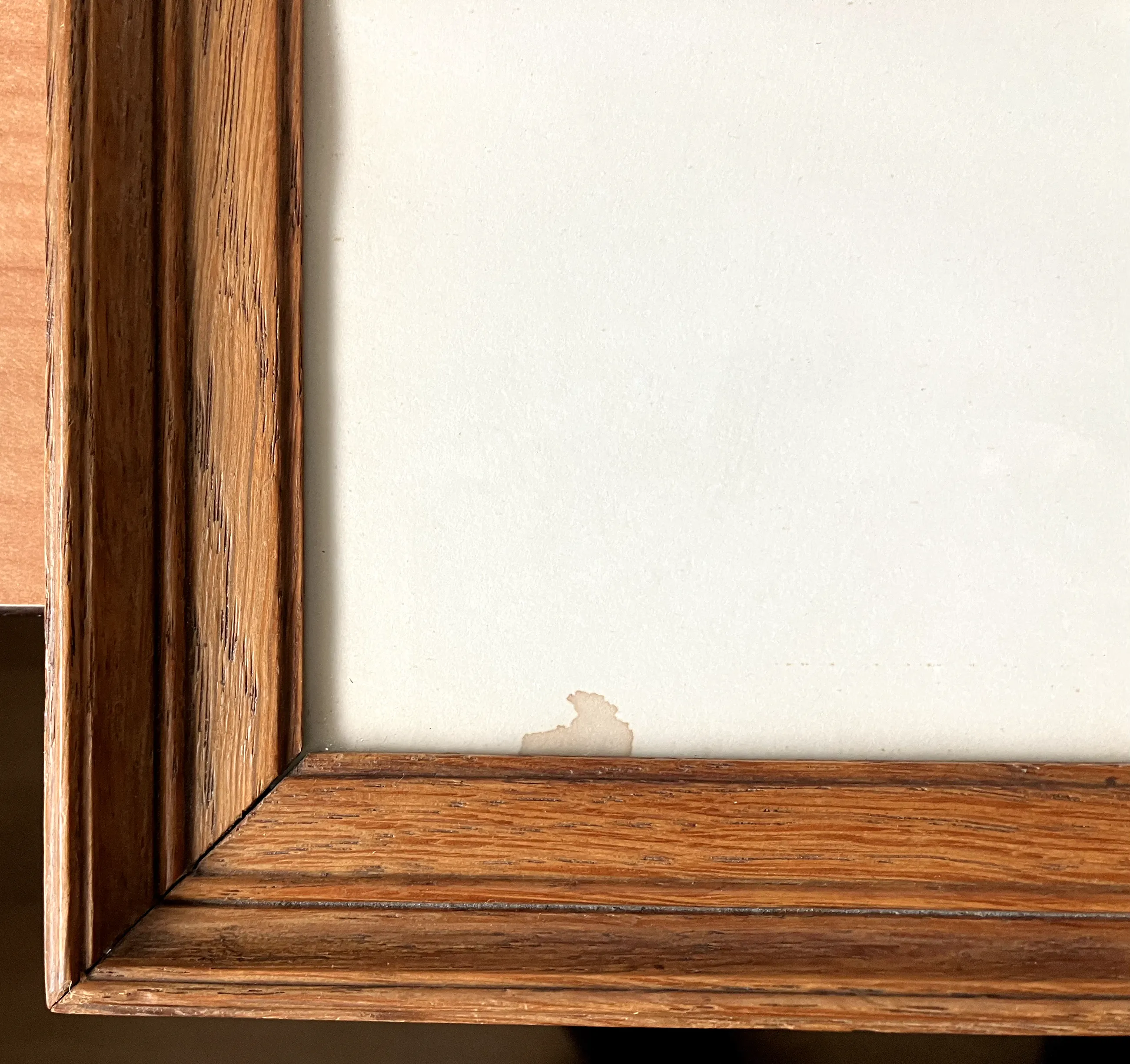 De etsen zitten in een prachtige houten lijst van 40 x 29 cm.