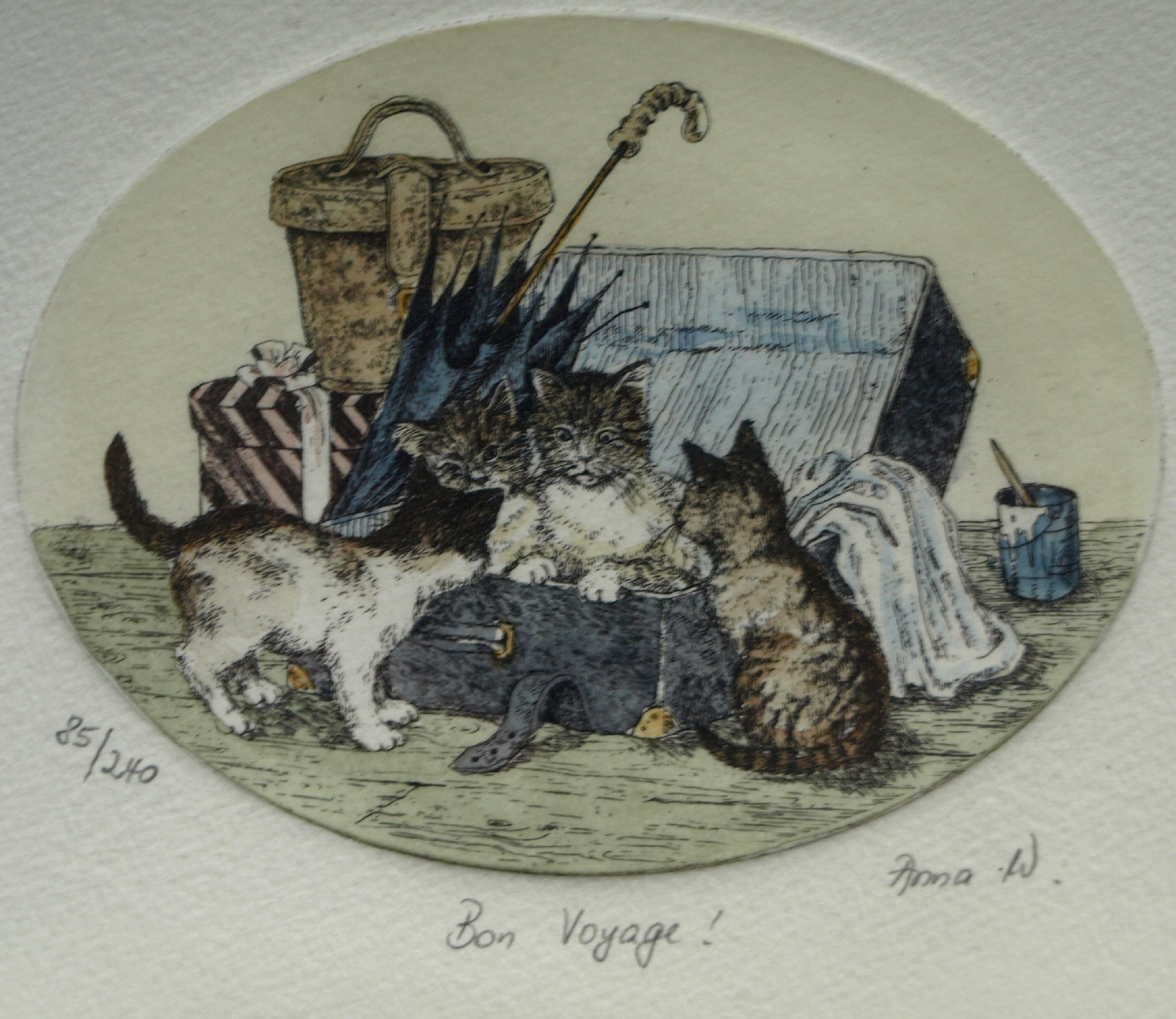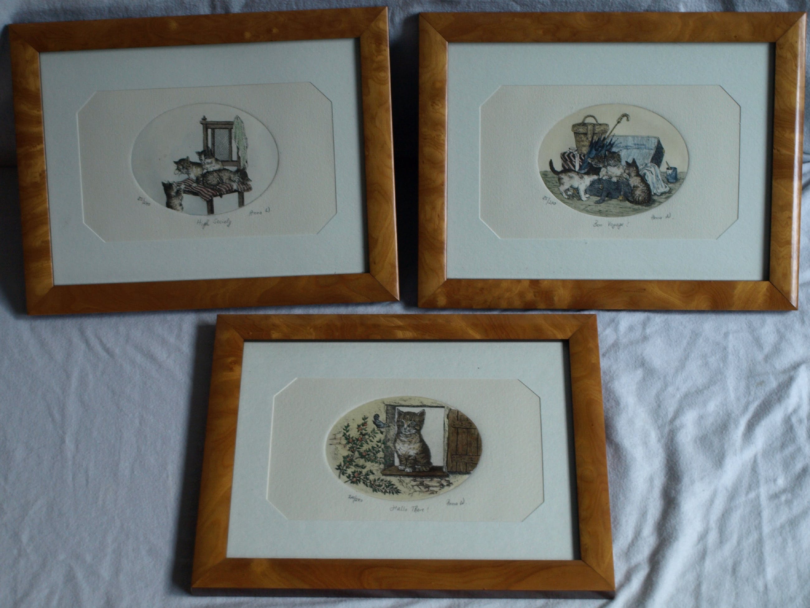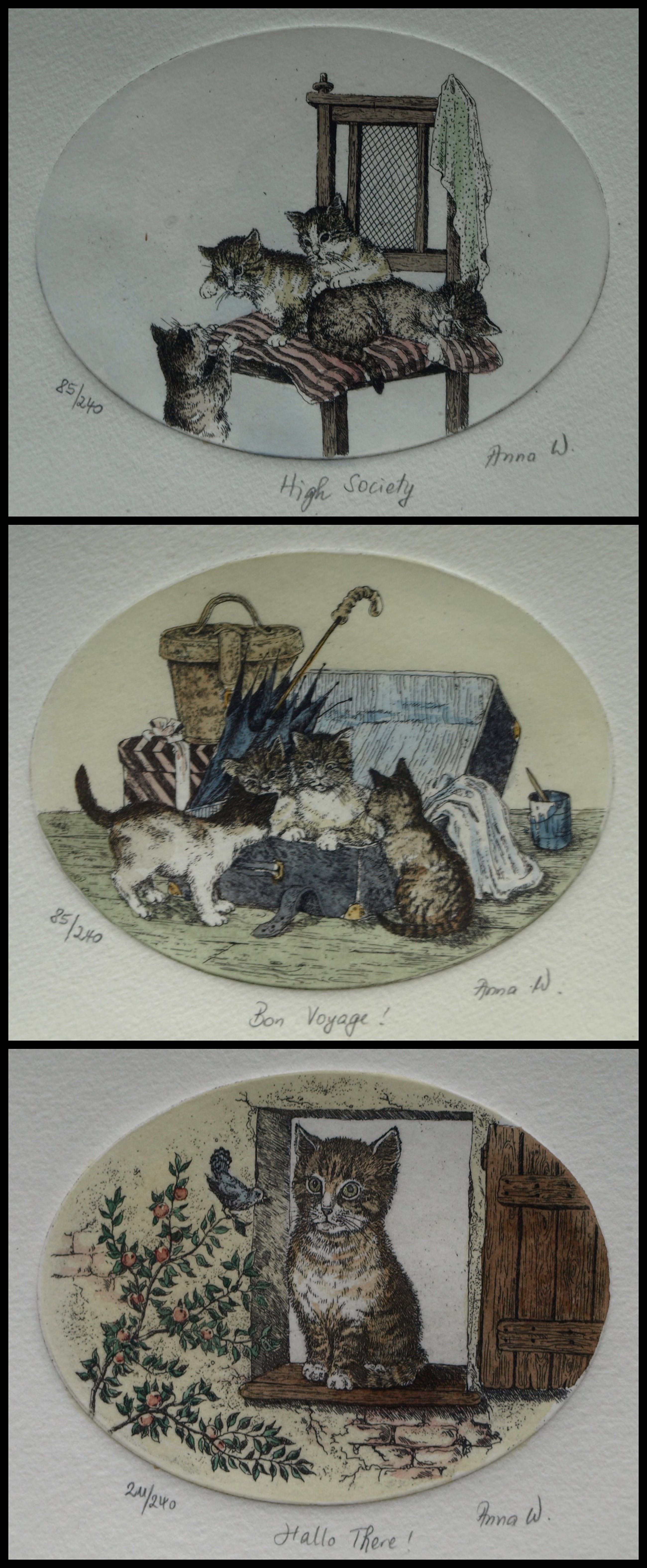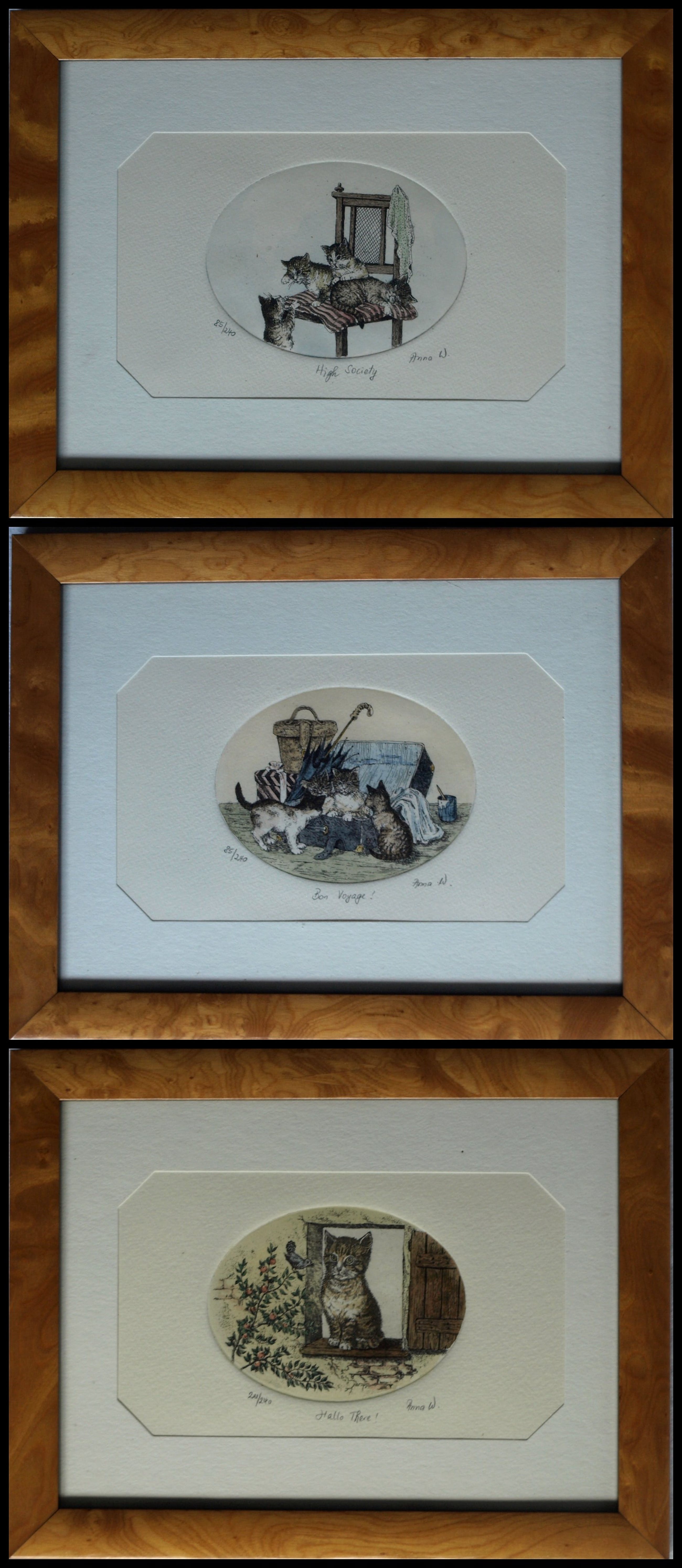 -De 3 etsen zijn gesigneerd (“Anna W.”), getiteld en genummerd met potlood.