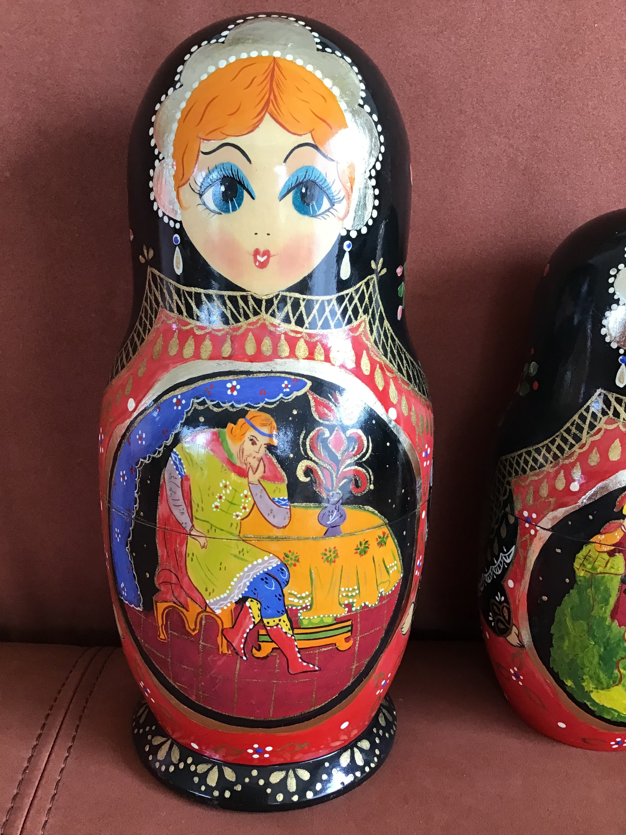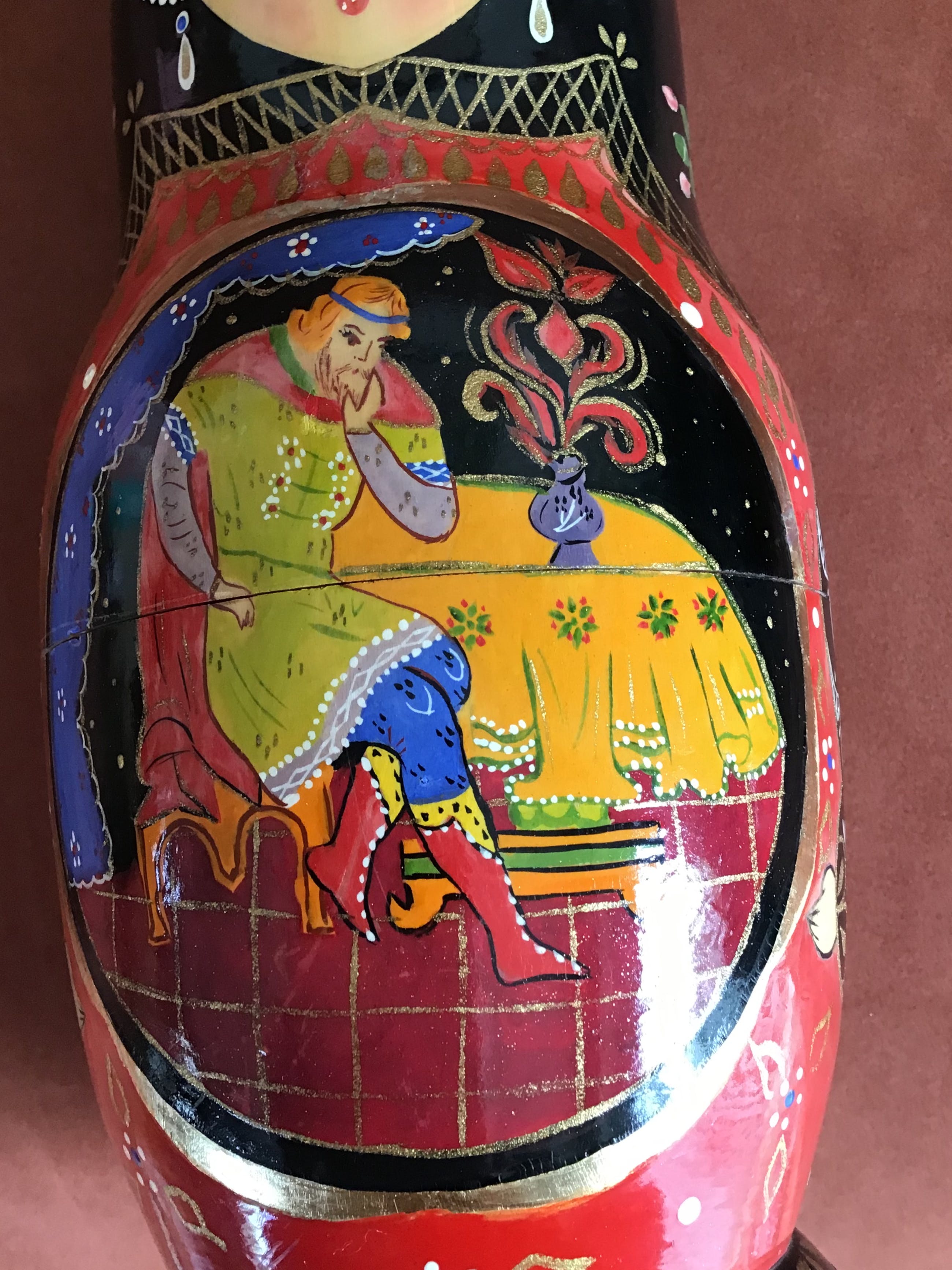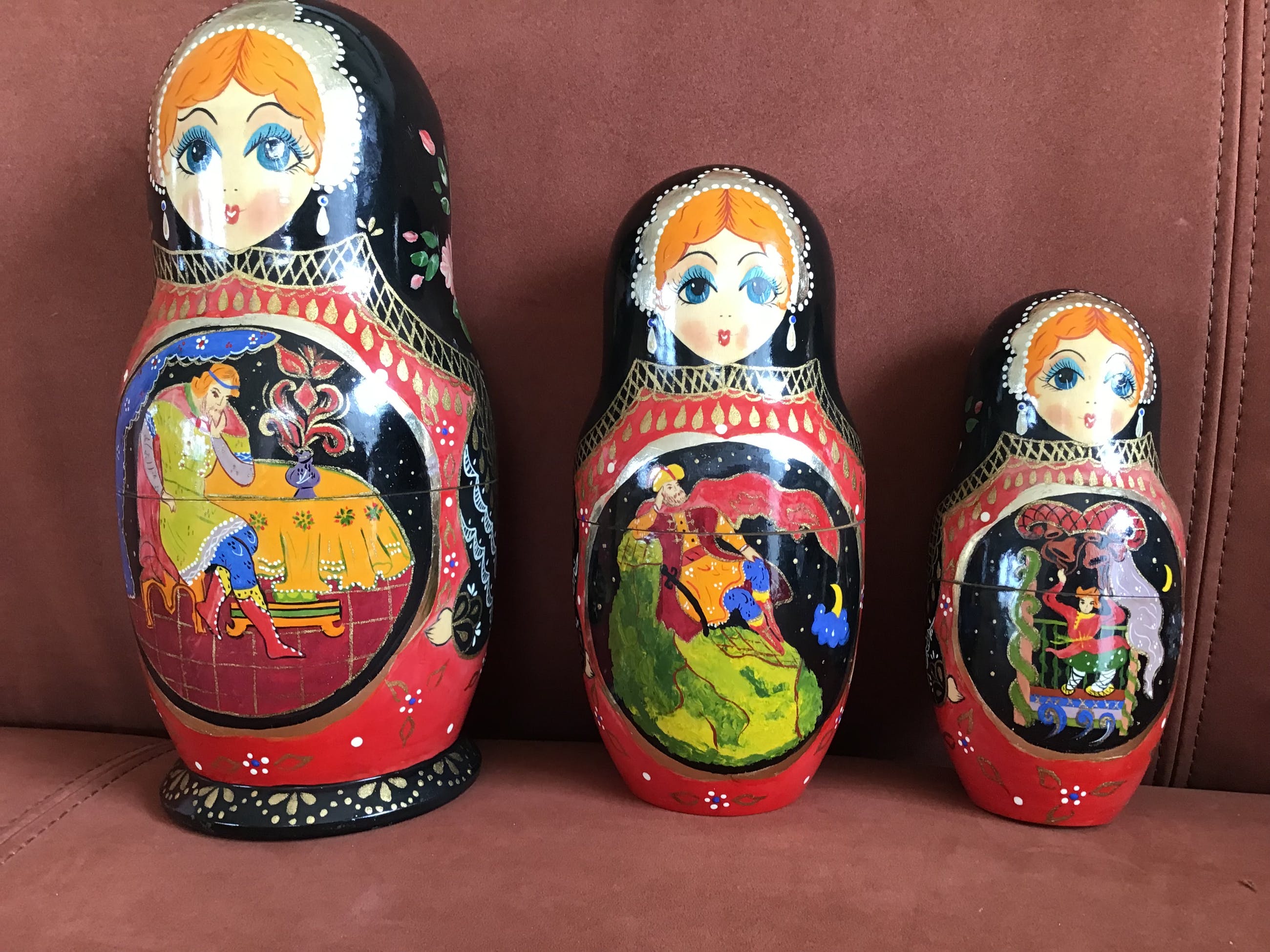 3 prachtige Matroesjka’s gesigneerd en gedateerd aan onderkant Lindehout en prachtig beschilderd met veel goud Jaar 1993 Land van herkomst is Rusland Uitstekende staat - nauwelijks gebruikt met minimale gebruikssporen en tekenen van ouderdom Afmetingen grootste 23 cm