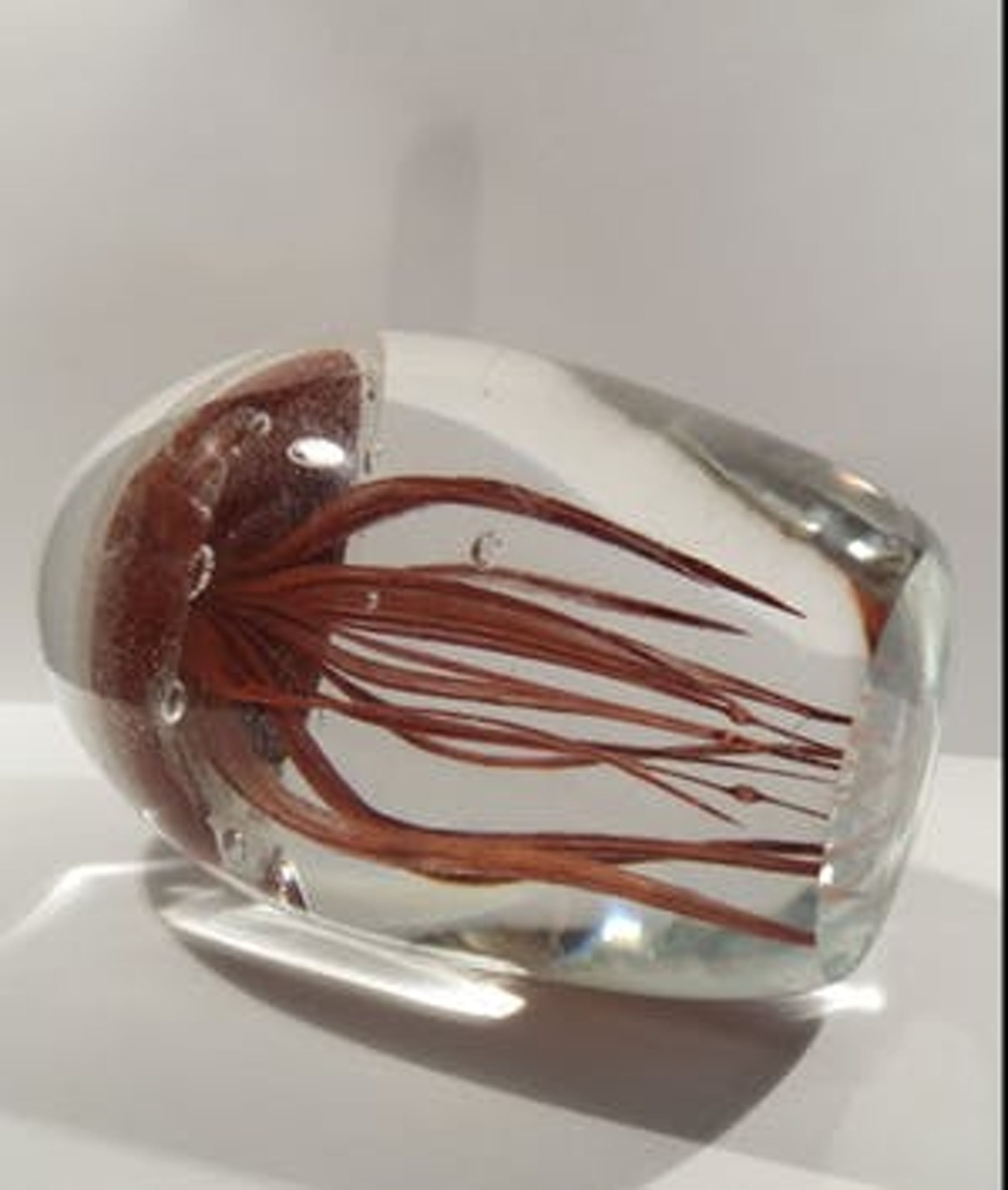3D jellyfish Presse-papier Glow in the Dark kleuren zijn  Bruin rood  .In goede staat Word aangetekend verzonden plus track en trace