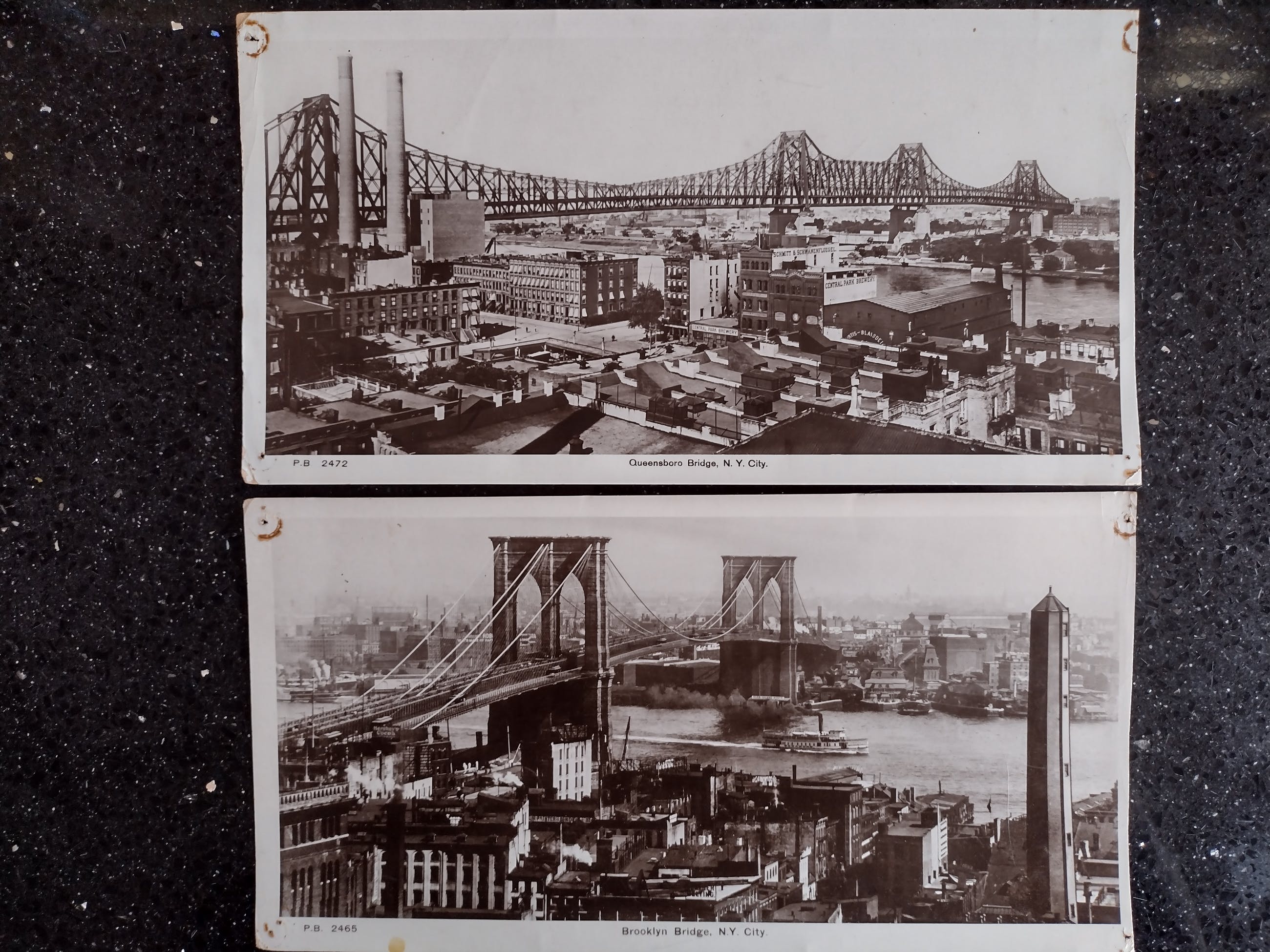 - Queensboro Bridge, N.Y. City: op voorzijde gemerkt P.B. 2472. Achterzijde identiek aan foto Brooklyn Bridge.