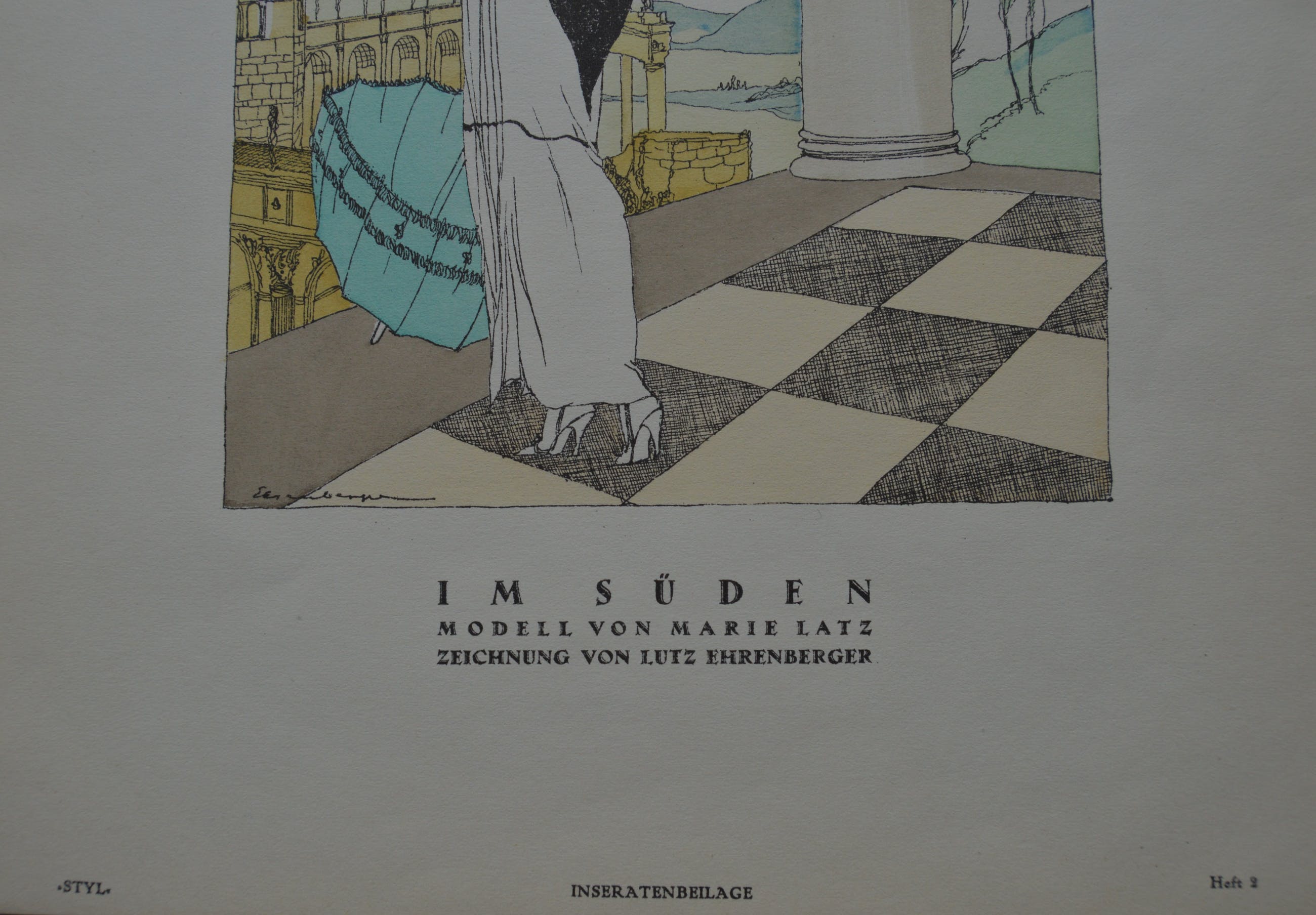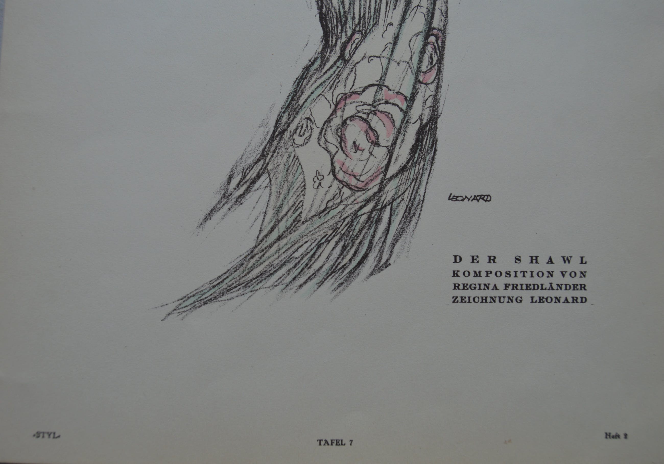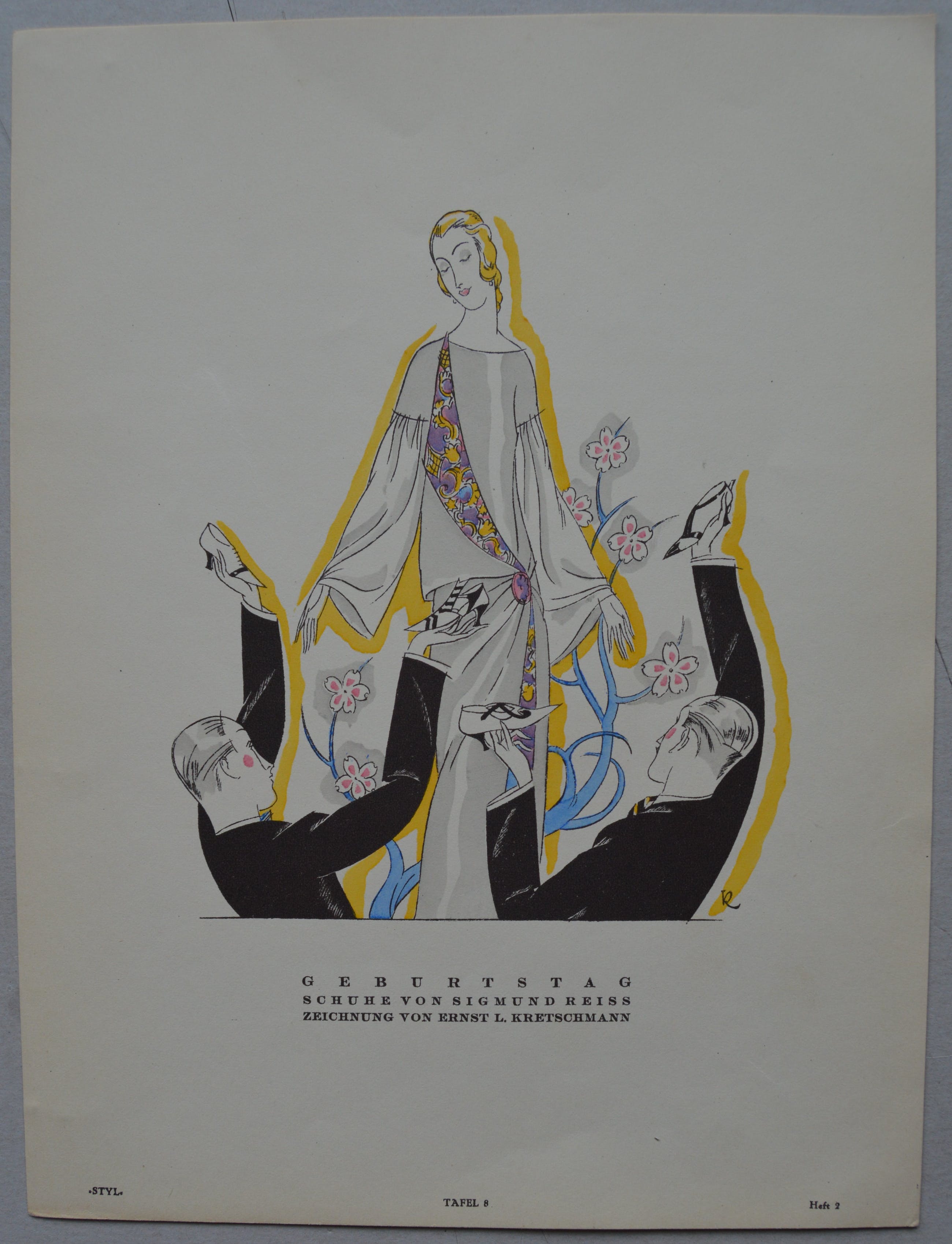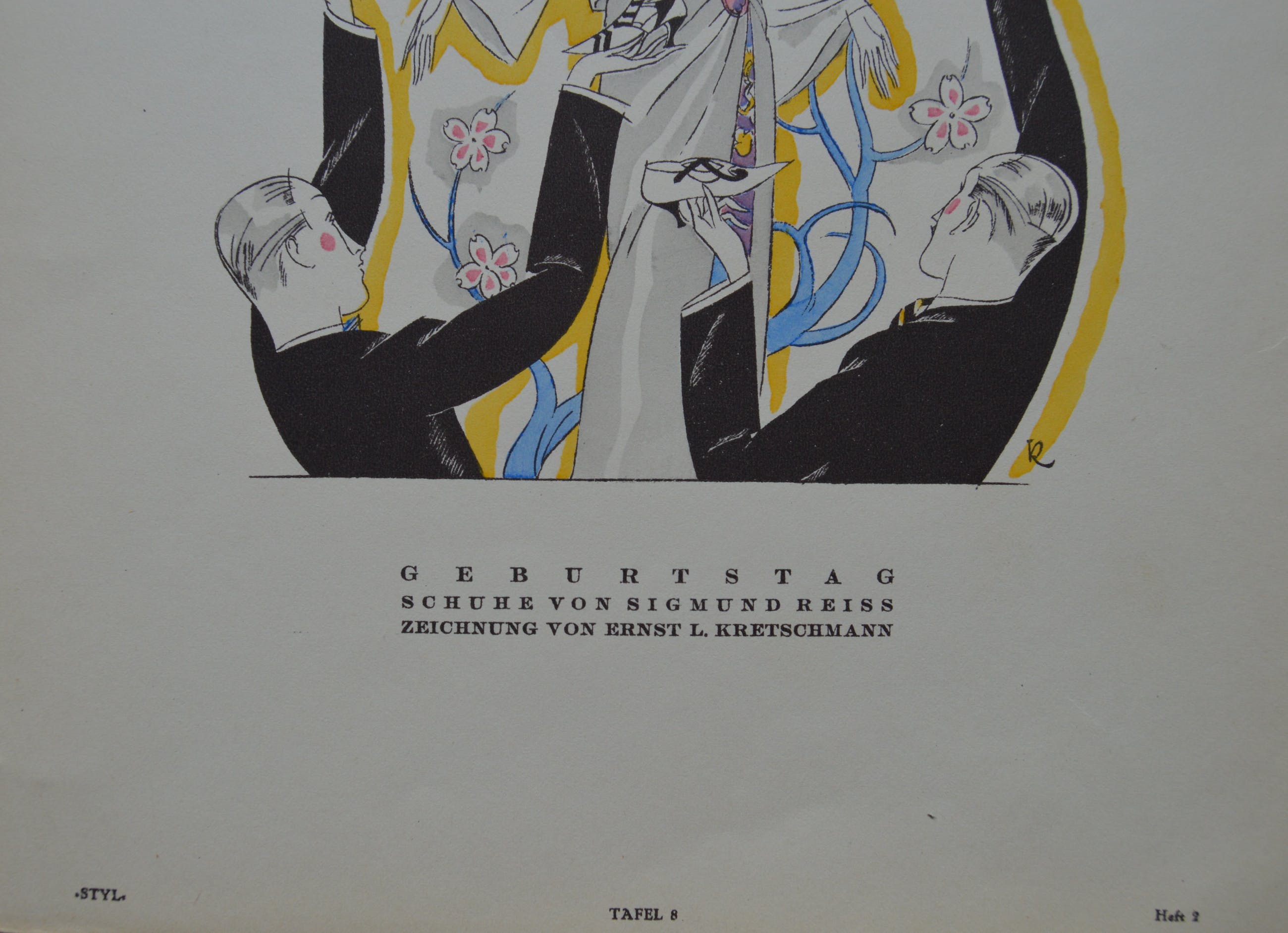 Pochoirs; Geburtstag; tekening van Ernst L. Kretschmann. Modell Regina Billitz, tekening Mancy Billitz. Abra-ka-dabra, tekening Georg G. Kobbe. Im Suden, tekening Lutz Ehrenberger. Der shawl, tekening Leonard. Alle in de druk gesigneerd. Verzending aangetekend.