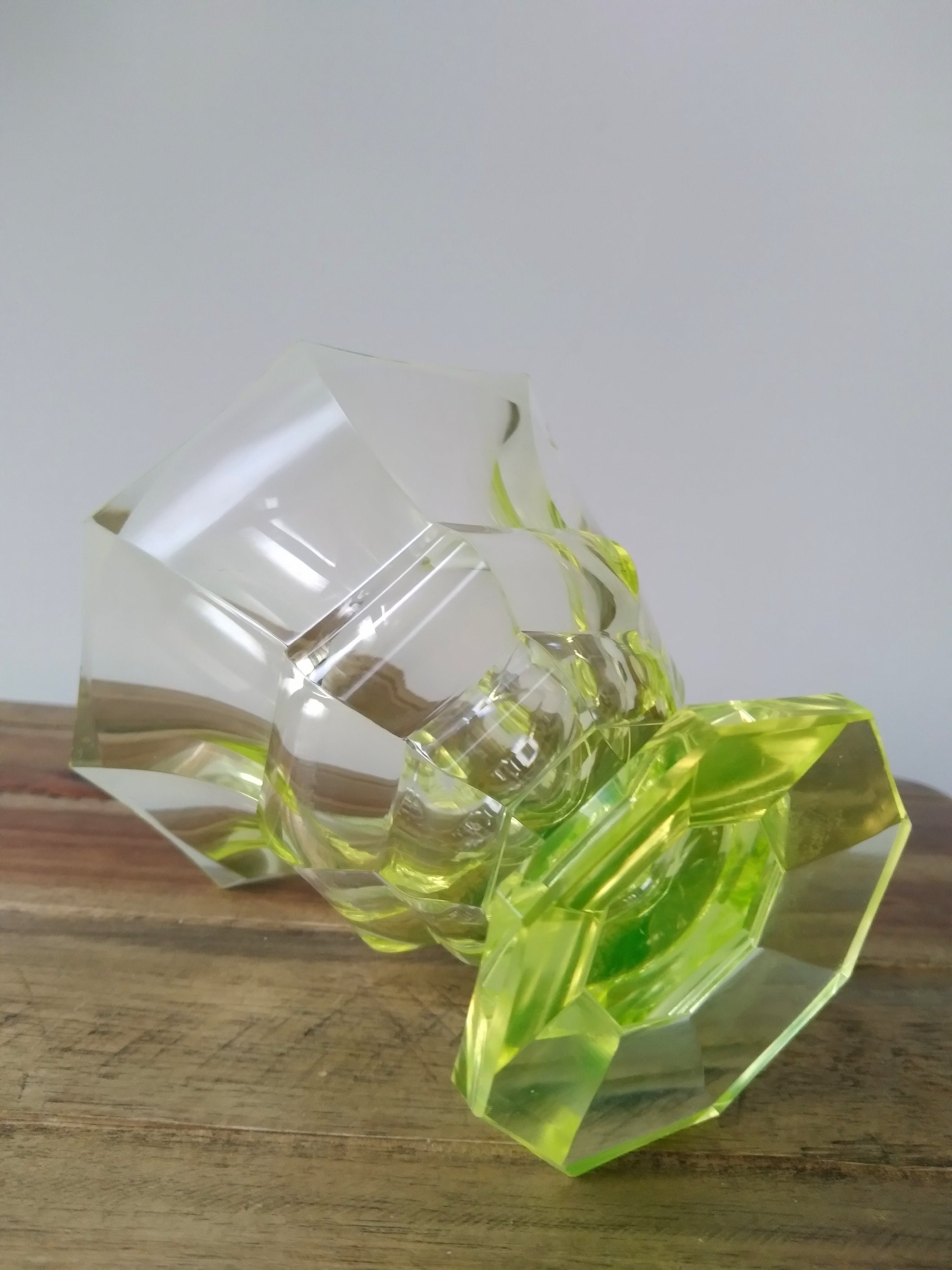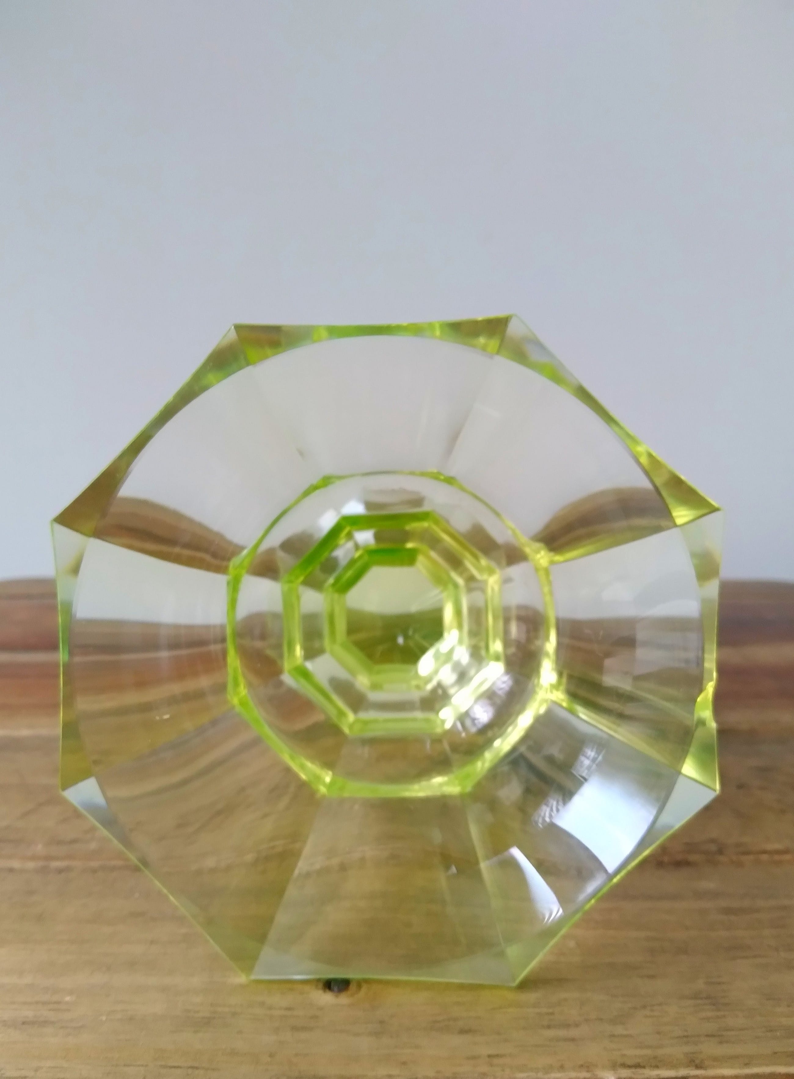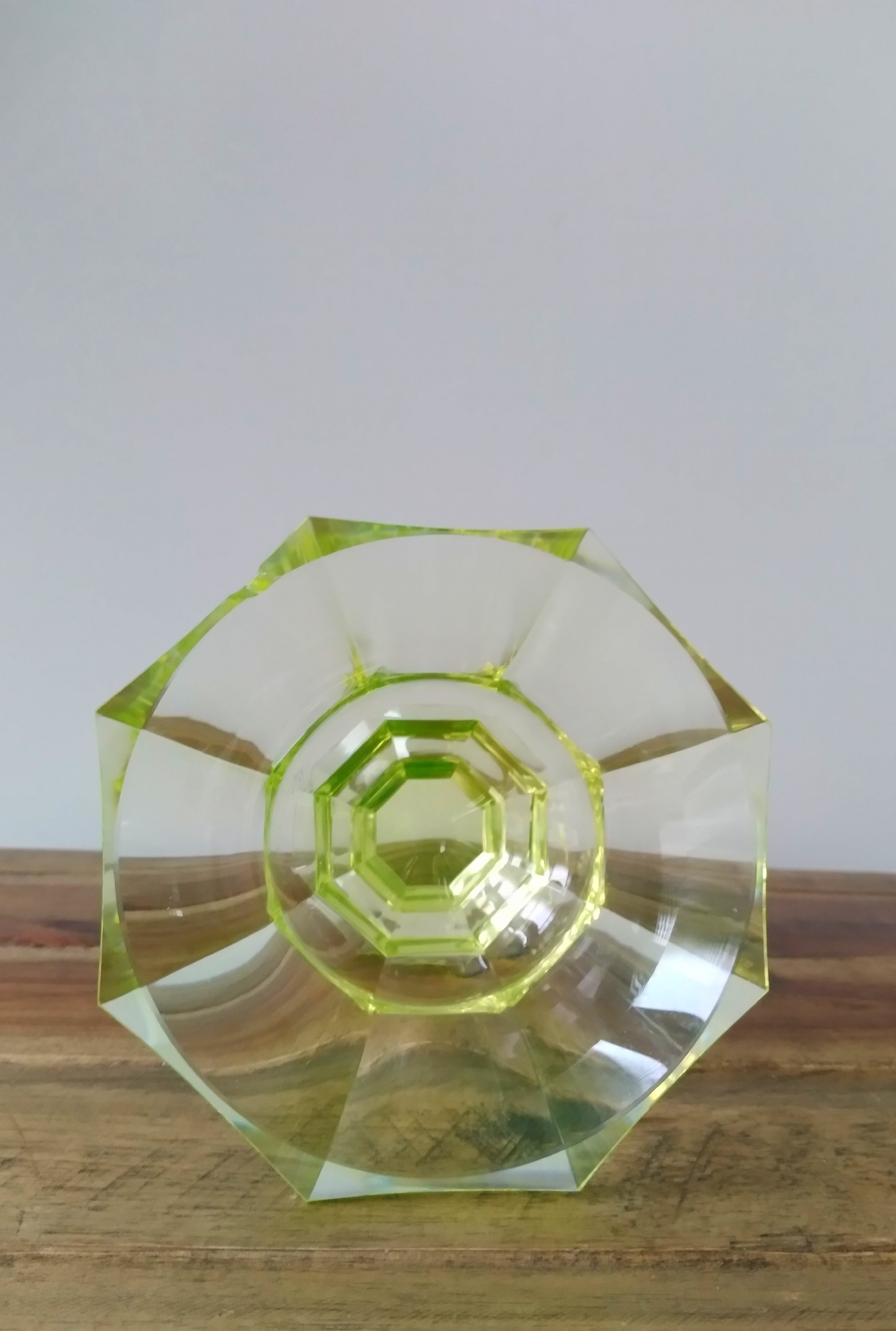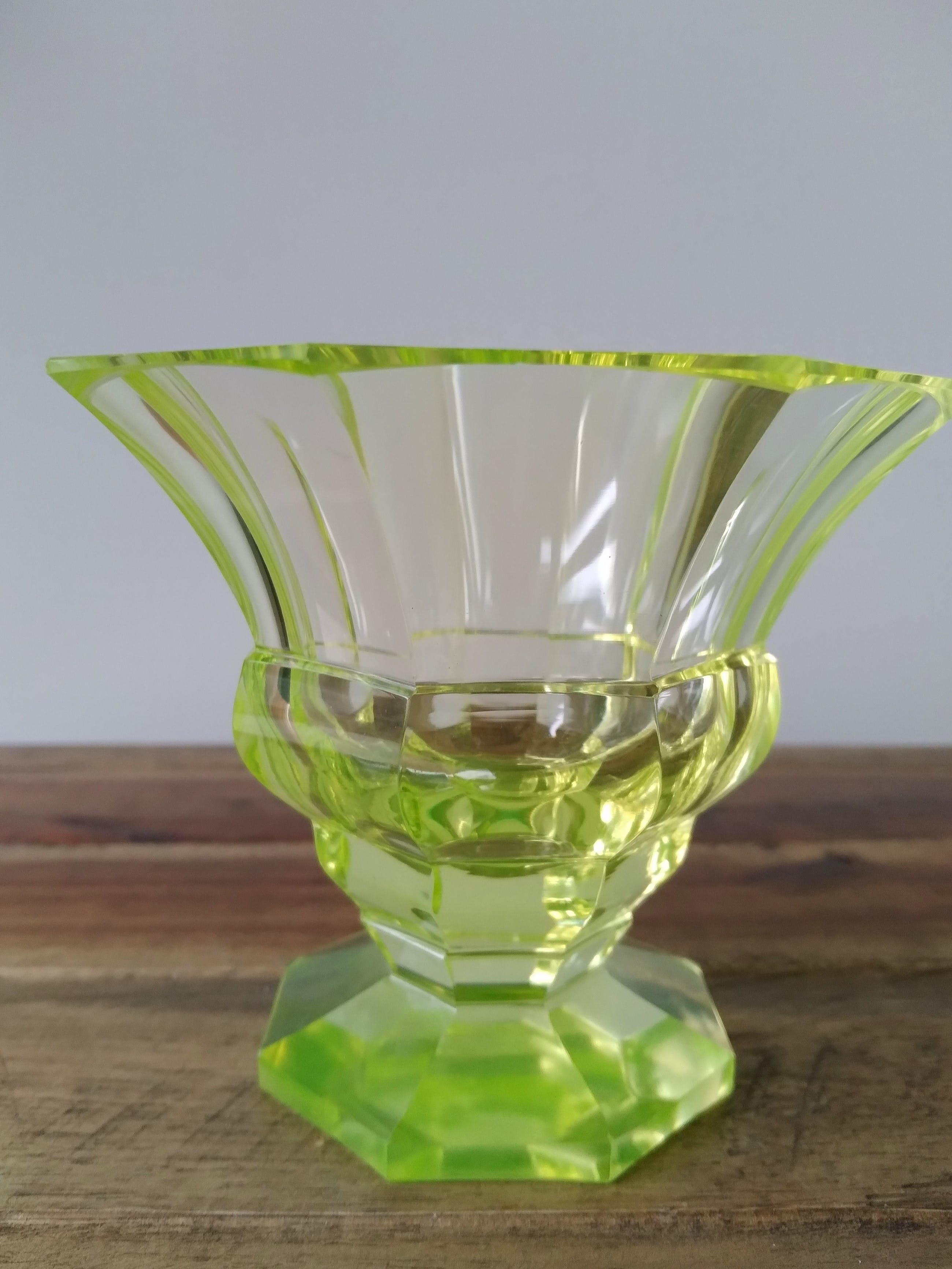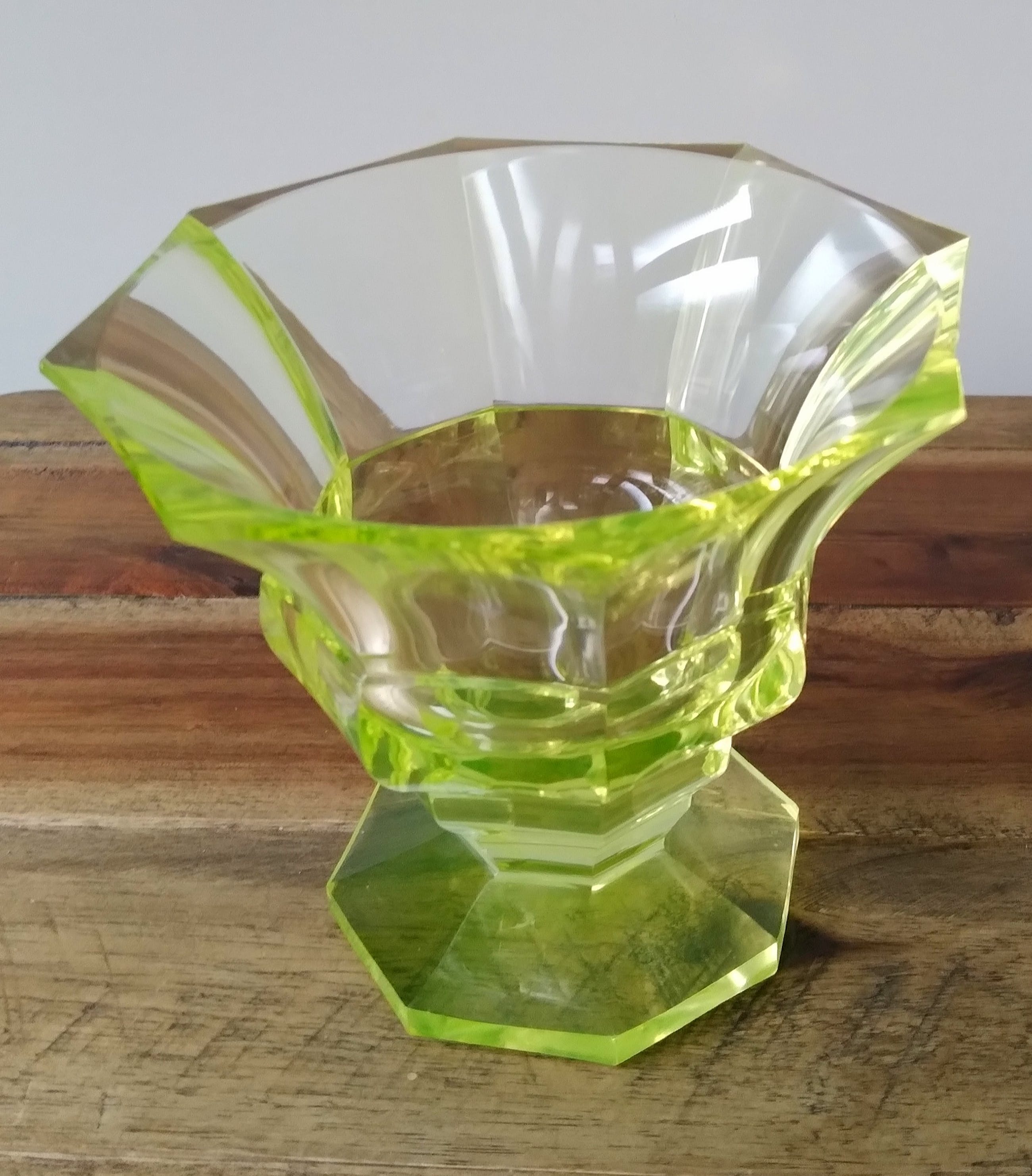 Verkeert in goede staat; heeft een chip aan de bovenrand en lichte krasjes aan de onderkant.