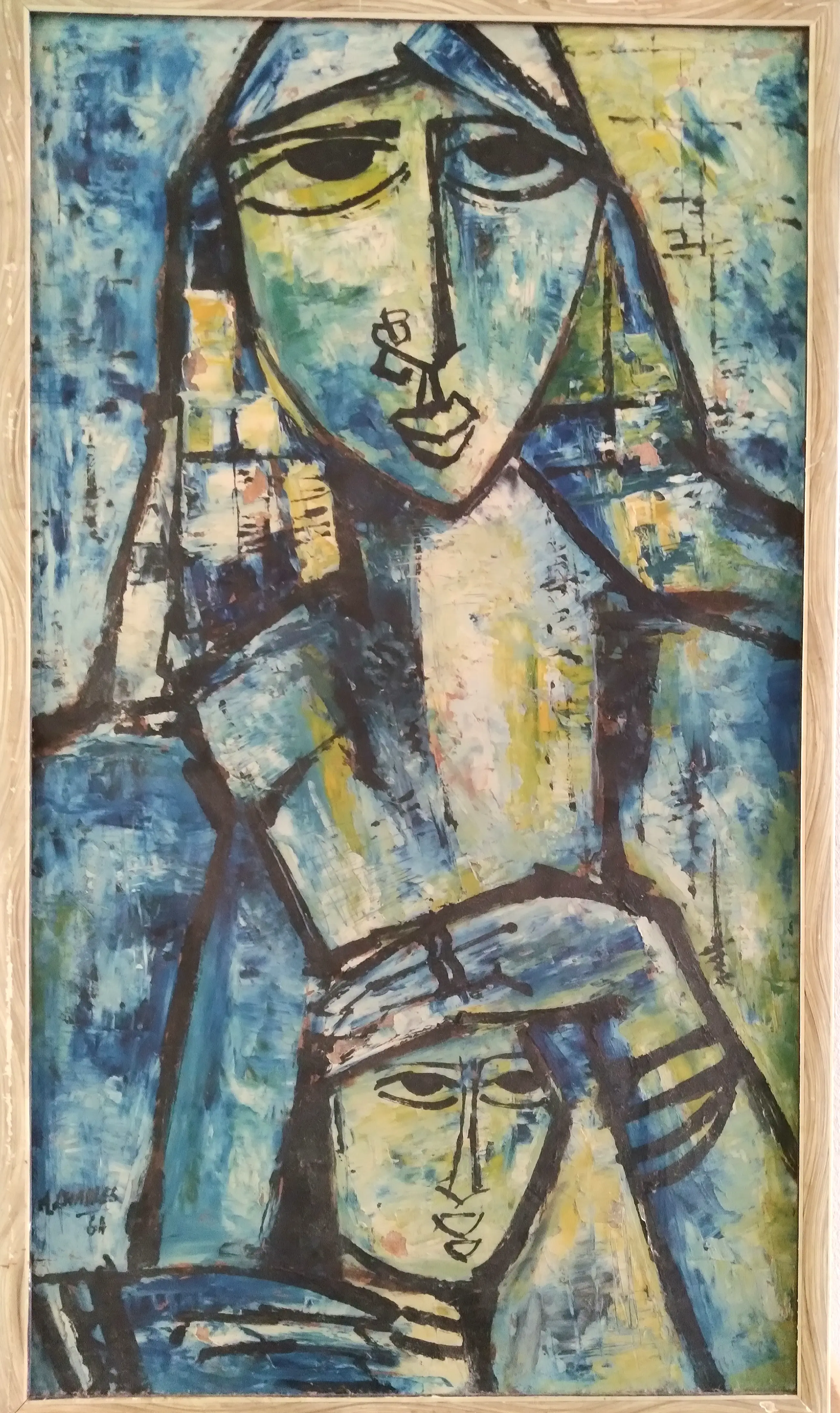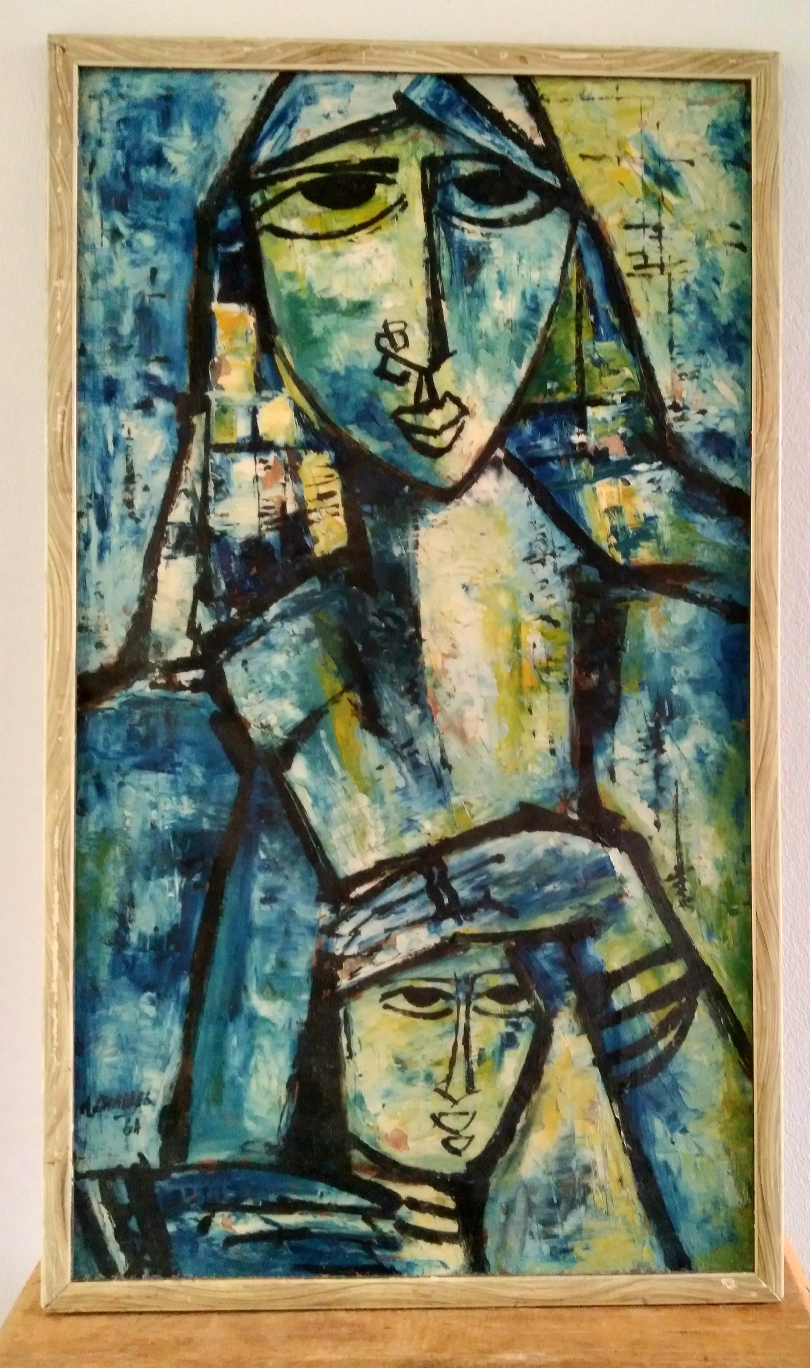 Het schilderij is gevat in een eenvoudige lijst en kent enig -niet storend- verfverlies.