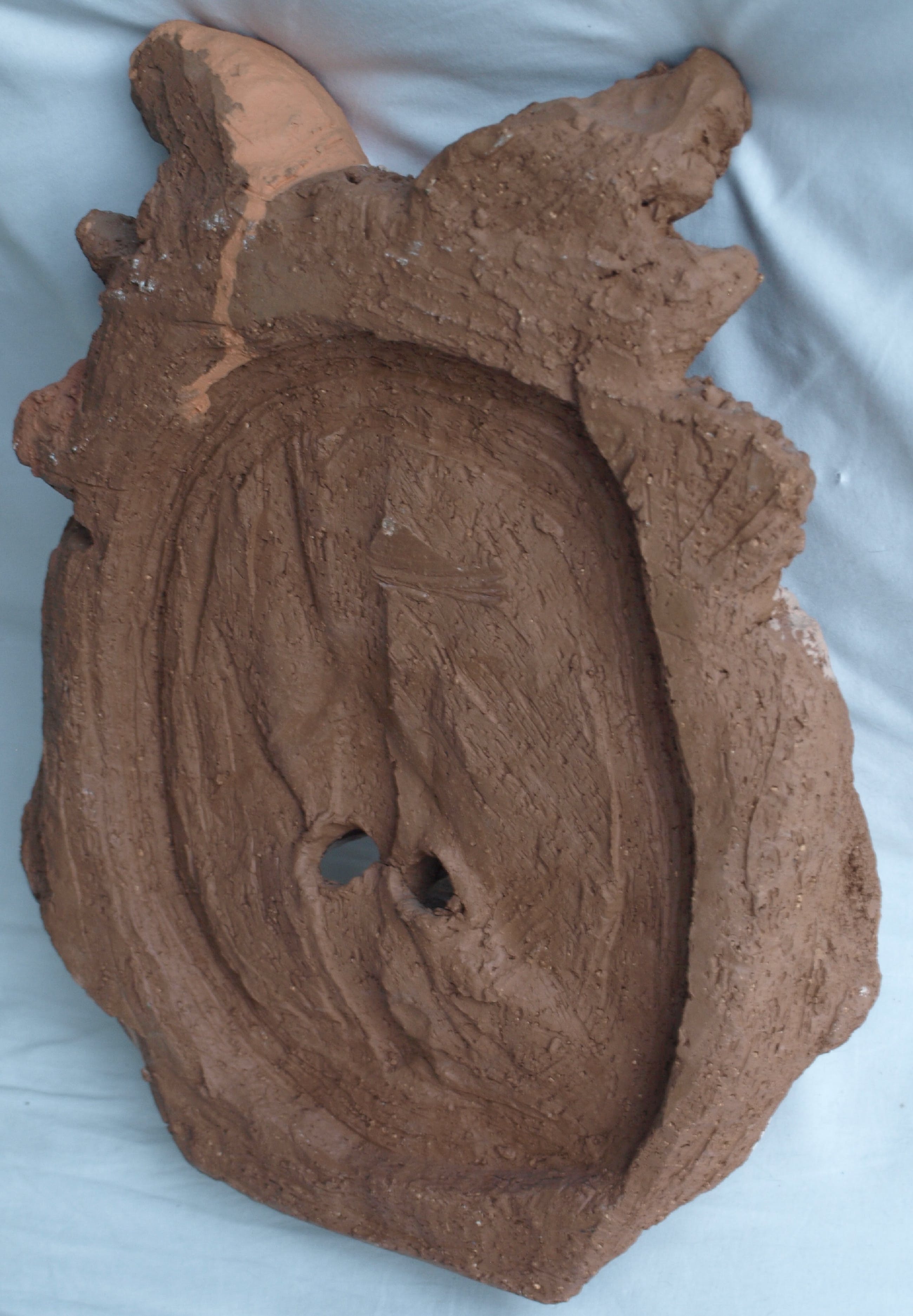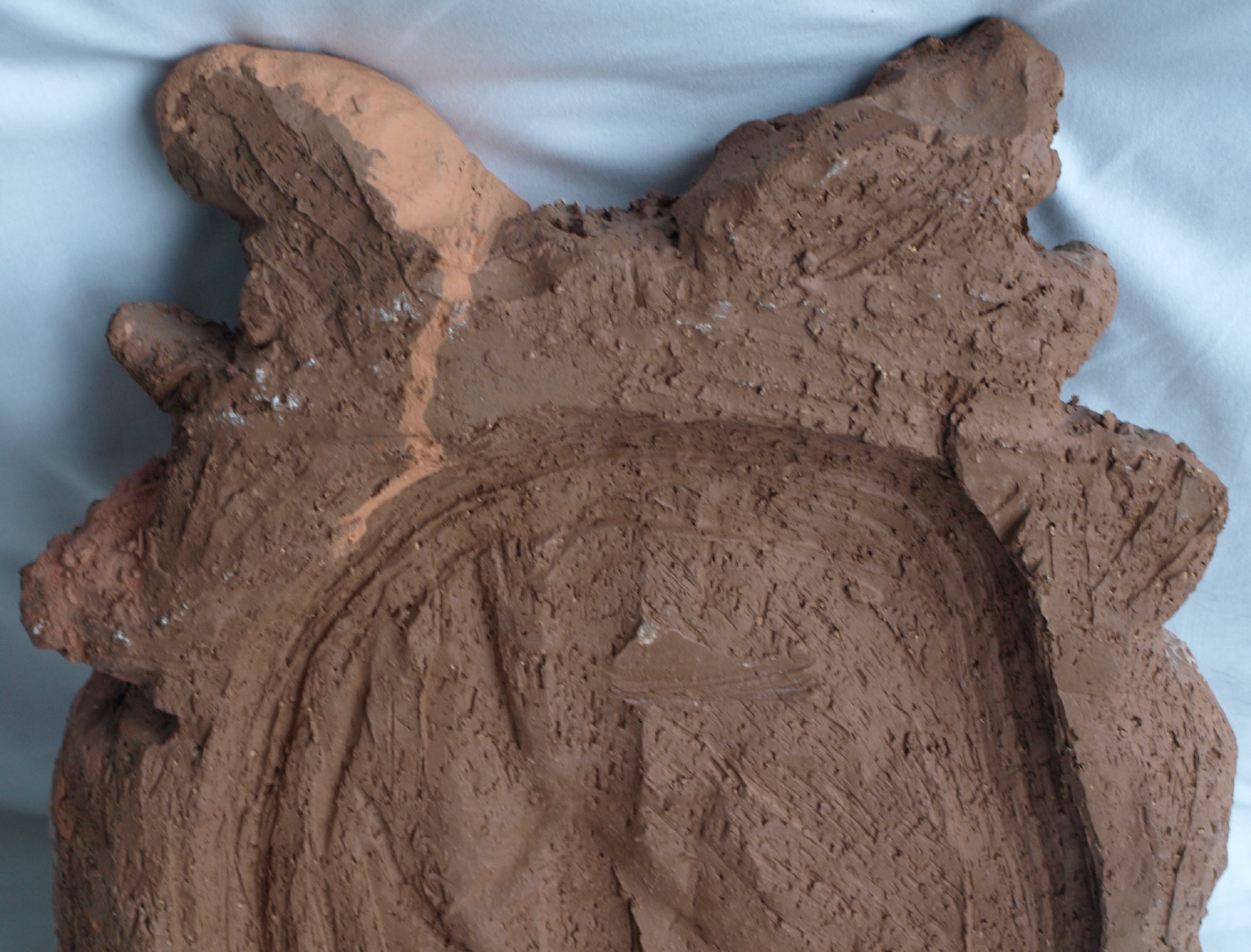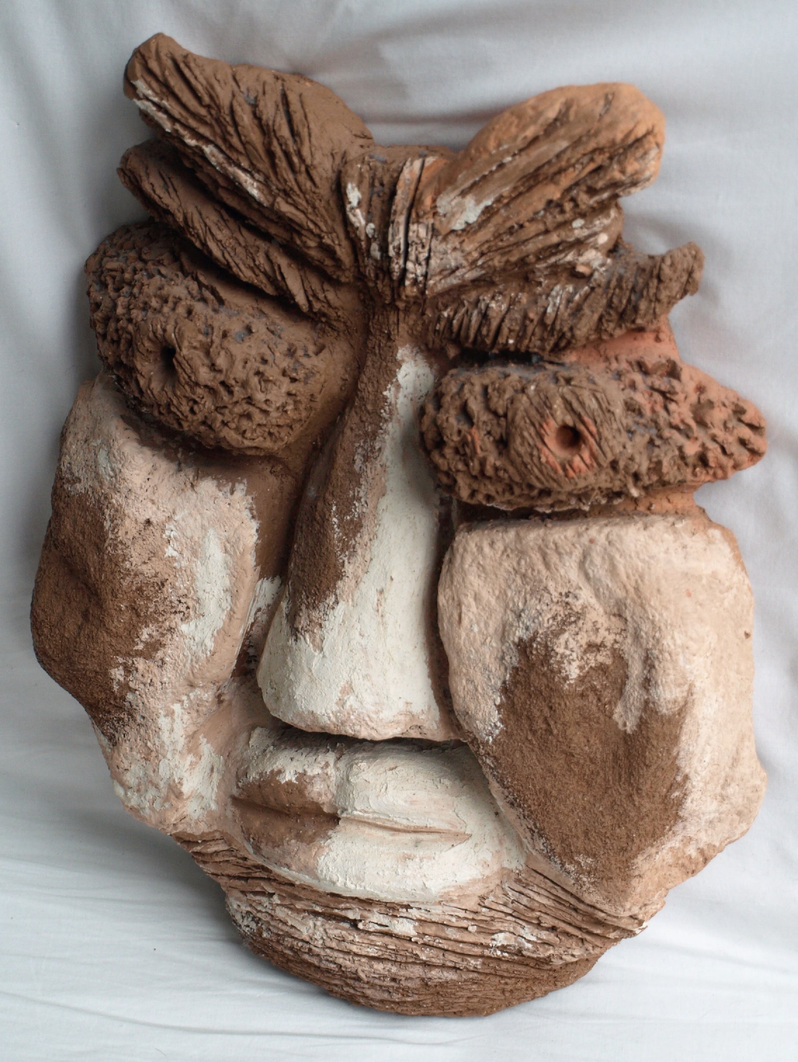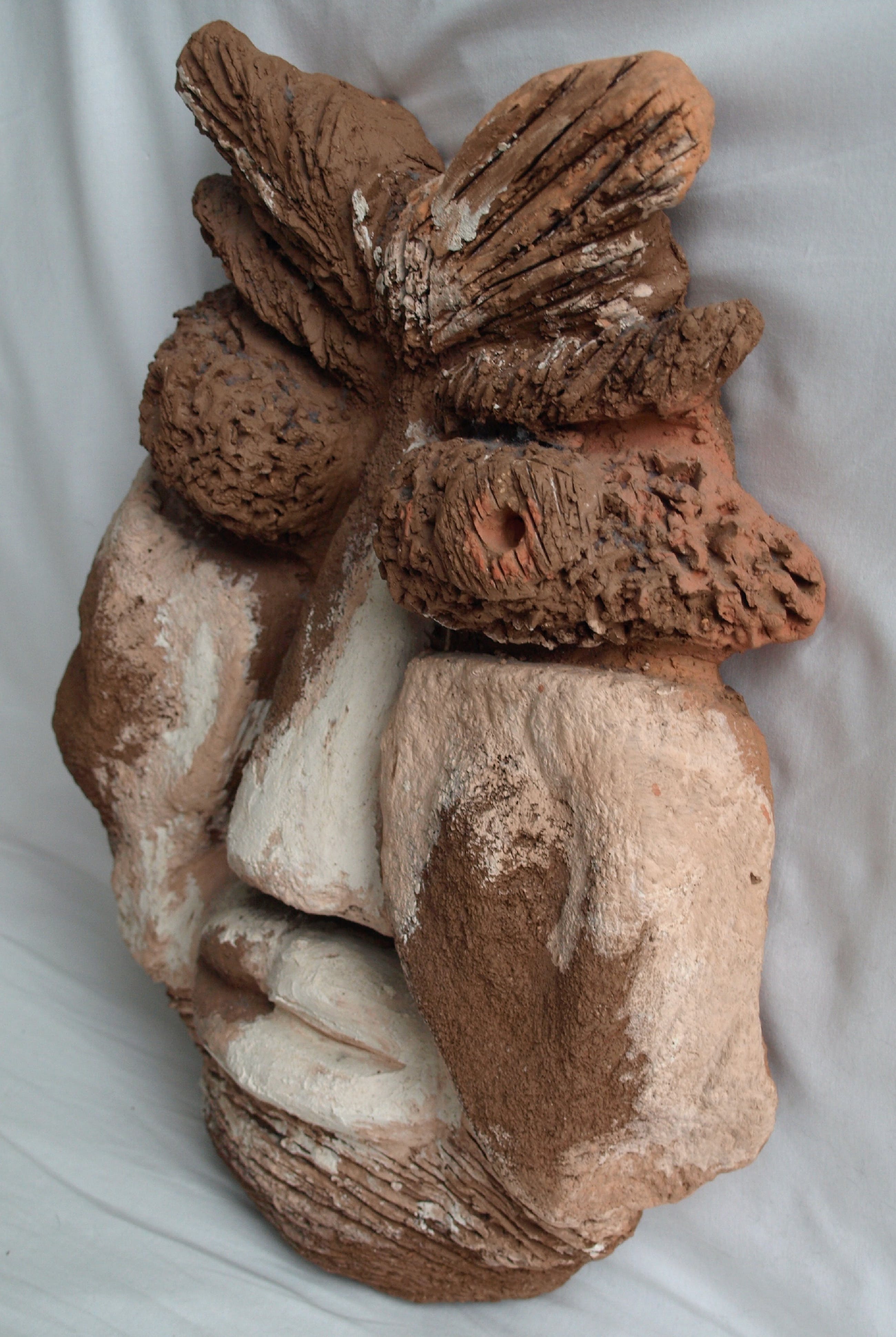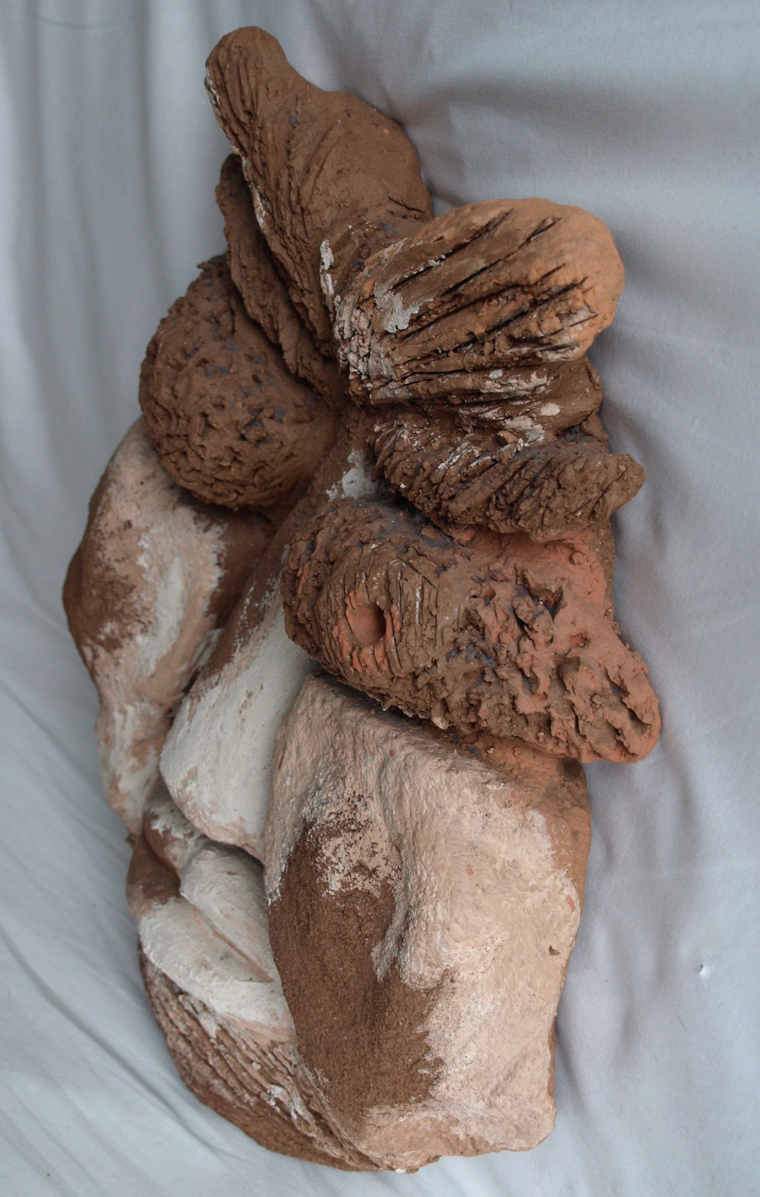 Een groot zwaar beeld van een ons onbekende kunstenaar. Een combinatie van chamotte-klei en verf.