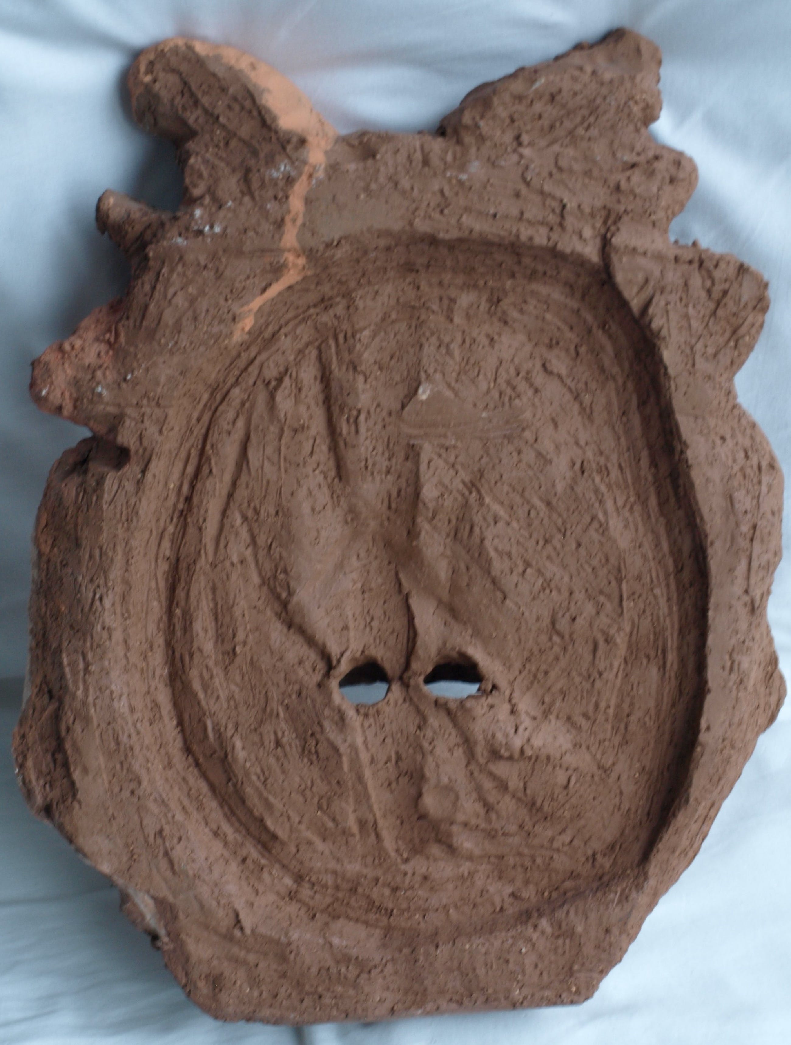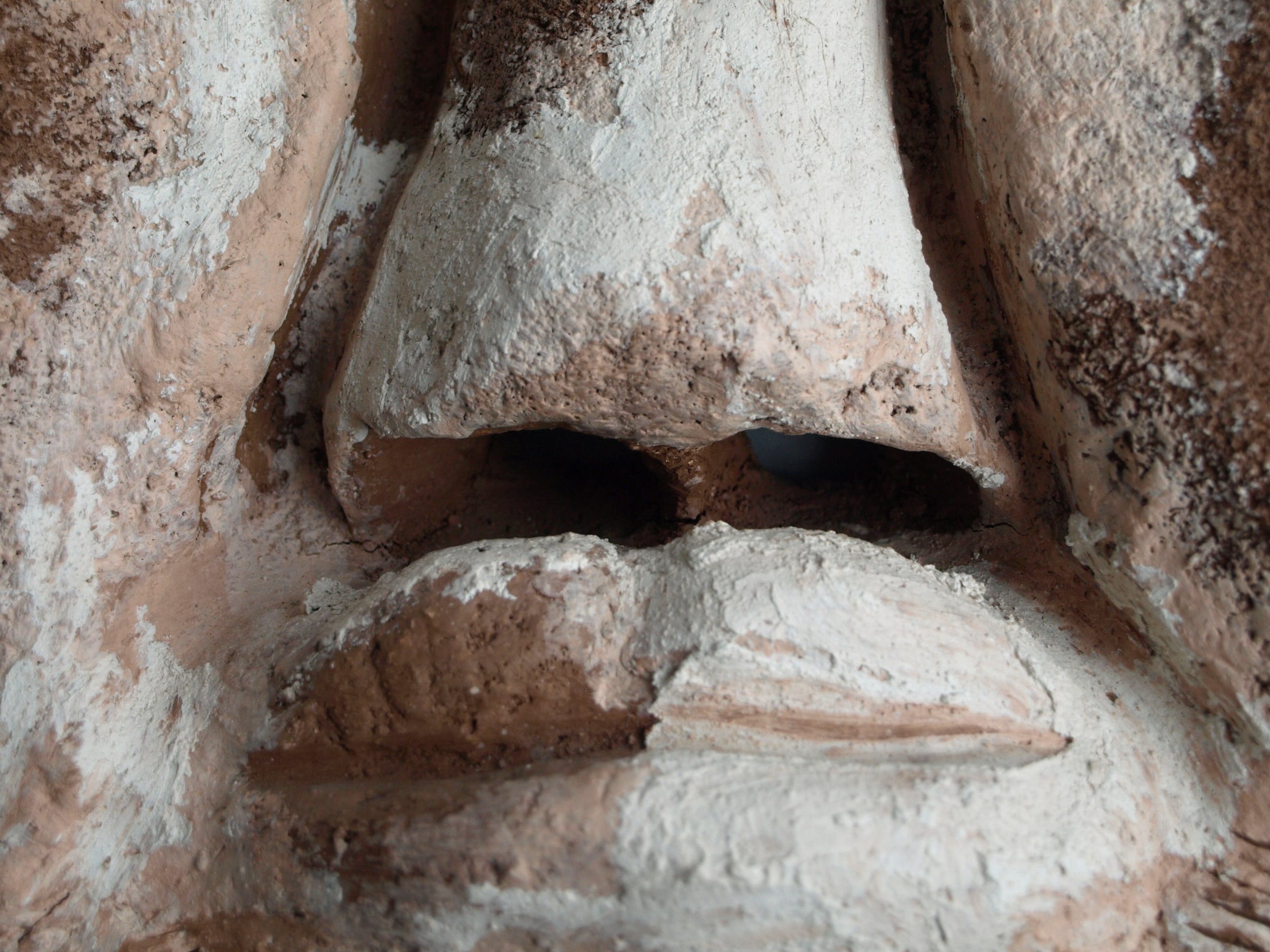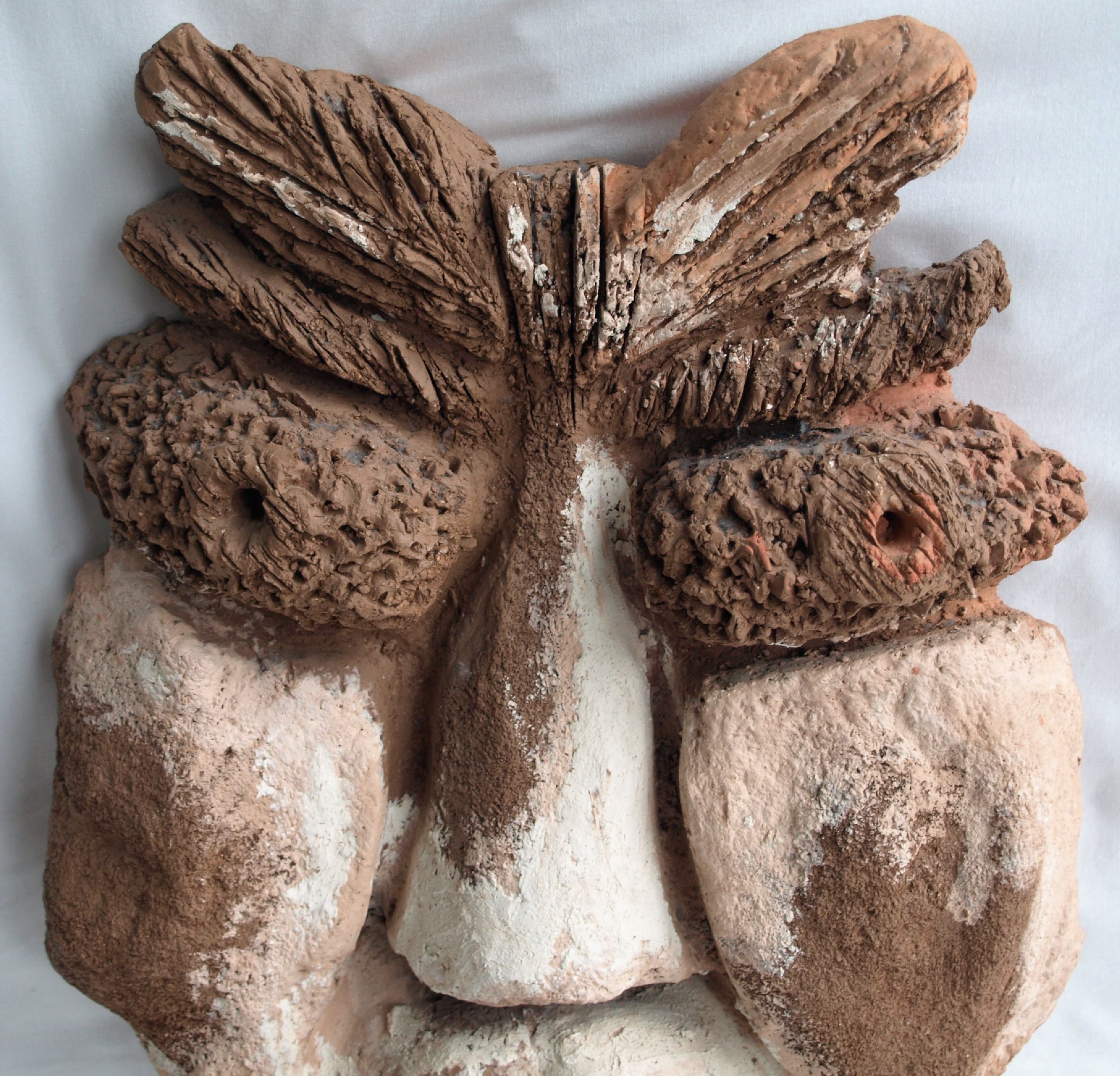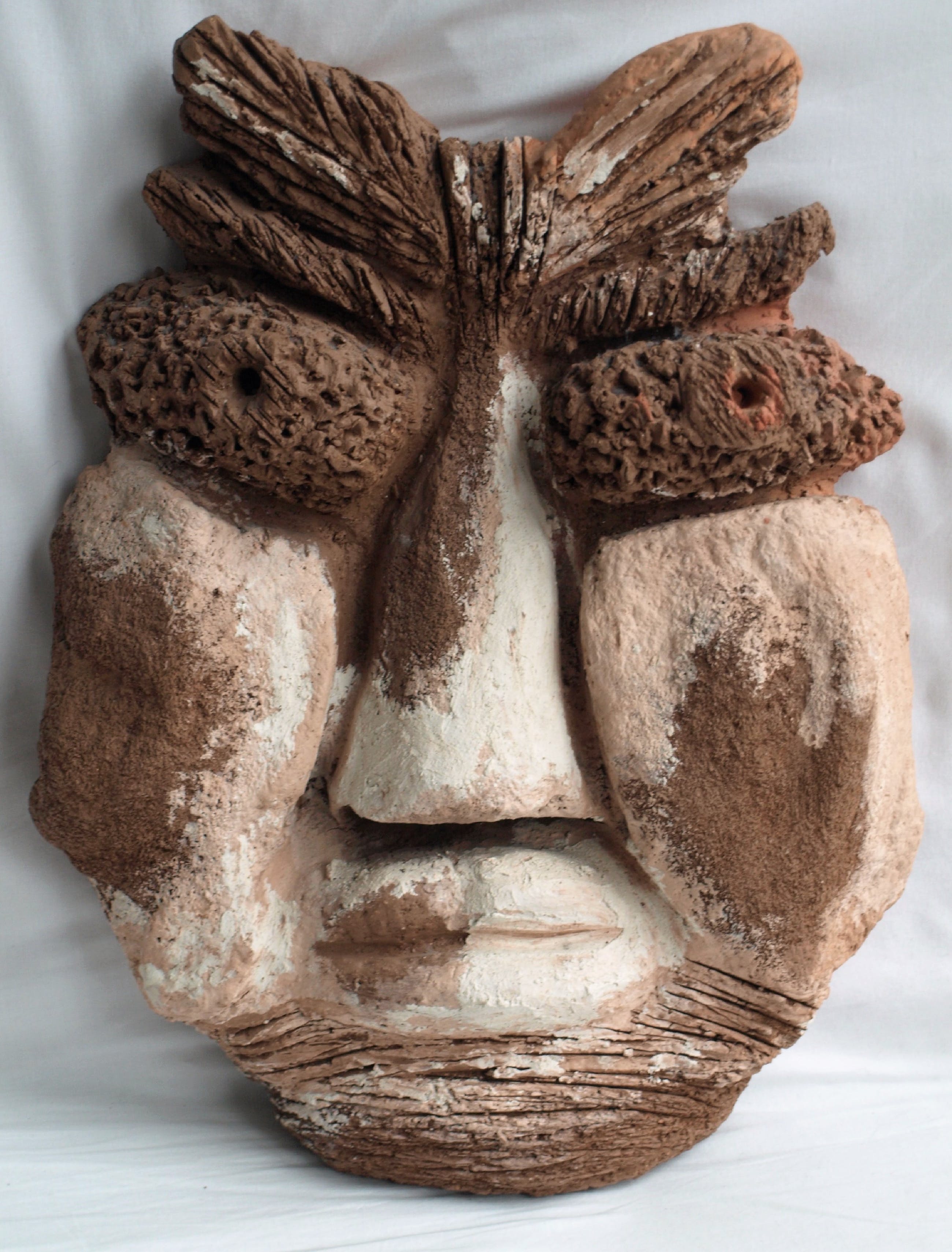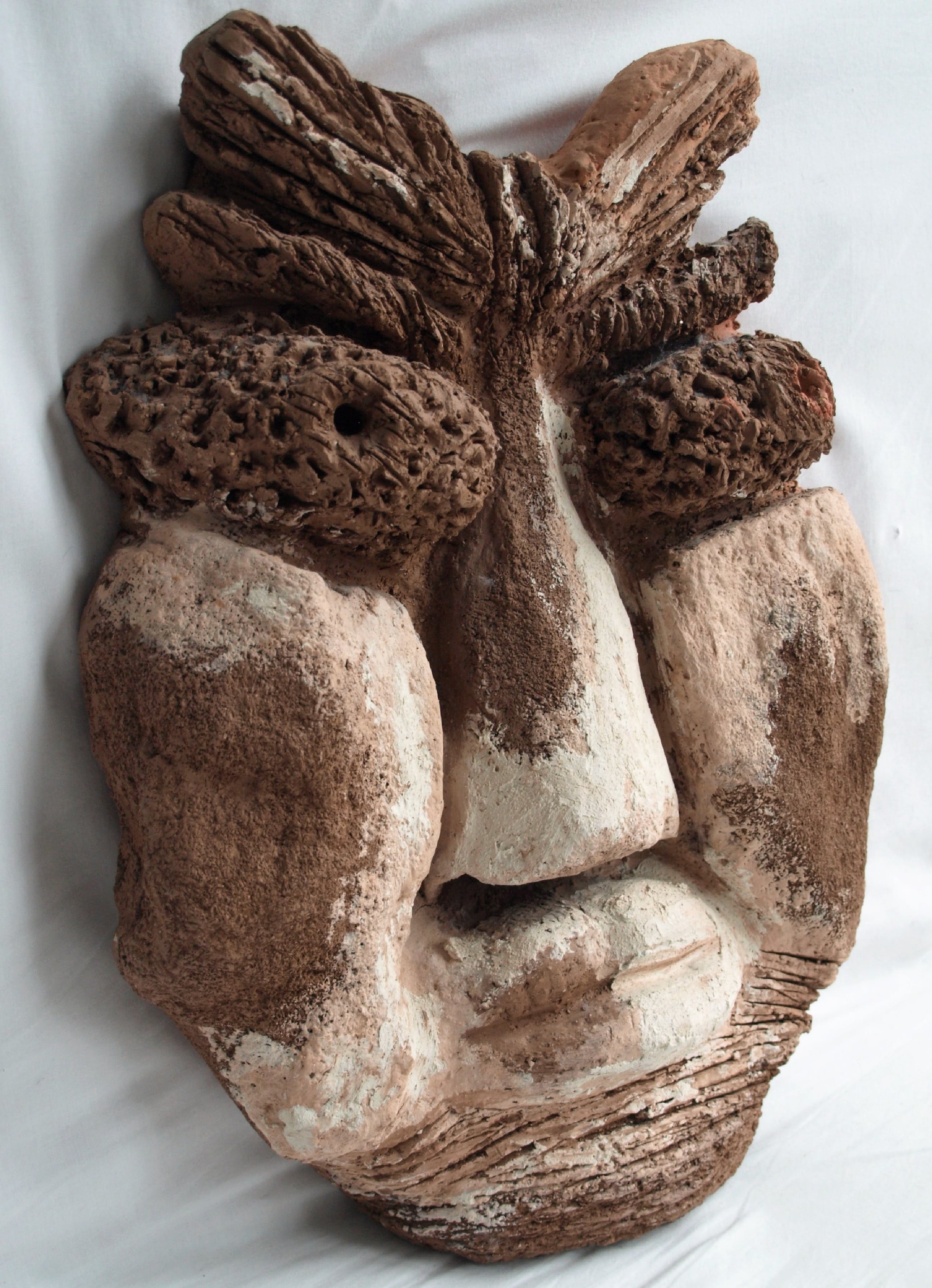 Een groot zwaar beeld van een ons onbekende kunstenaar. Een combinatie van chamotte-klei en verf.