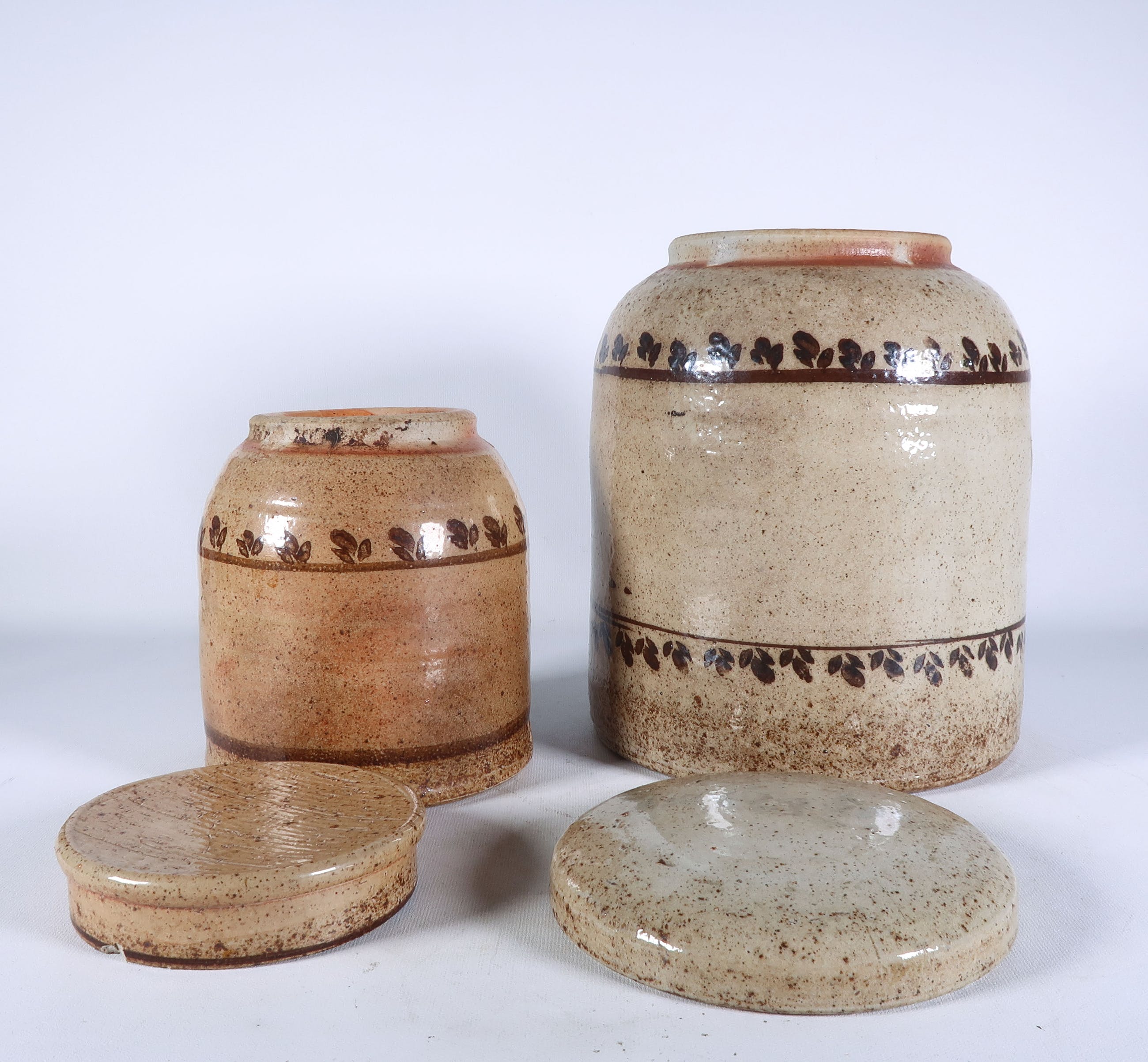 De onderste rand van de deksel van de kleinere pot mist een scherf. | |||