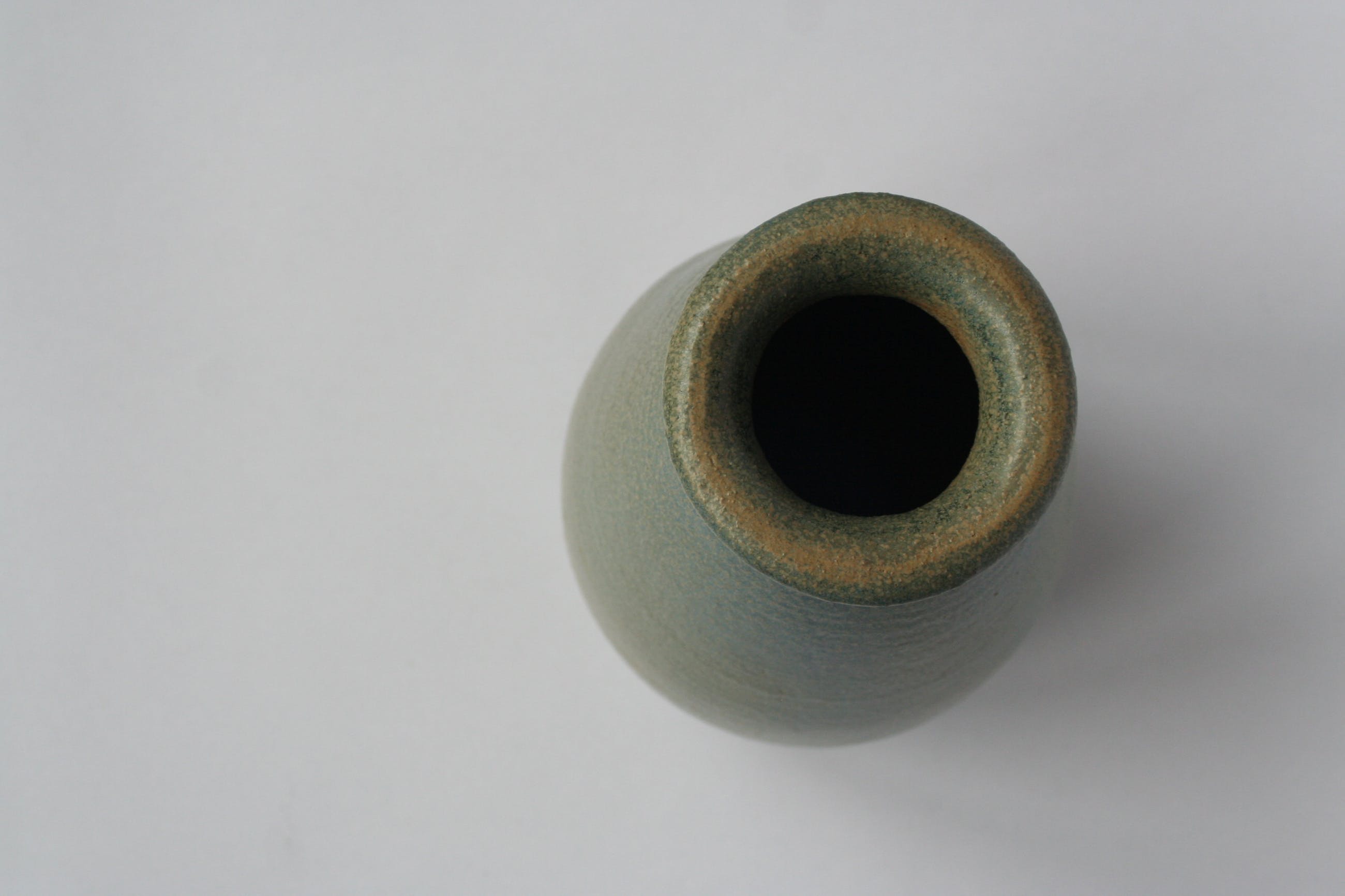 Vaas is gesigneerd met M of N of A v.d. P. In de vaas staat tevens een stempel maar die is niet goed leesbaar. Waarschijnlijk Nederlands keramiek.