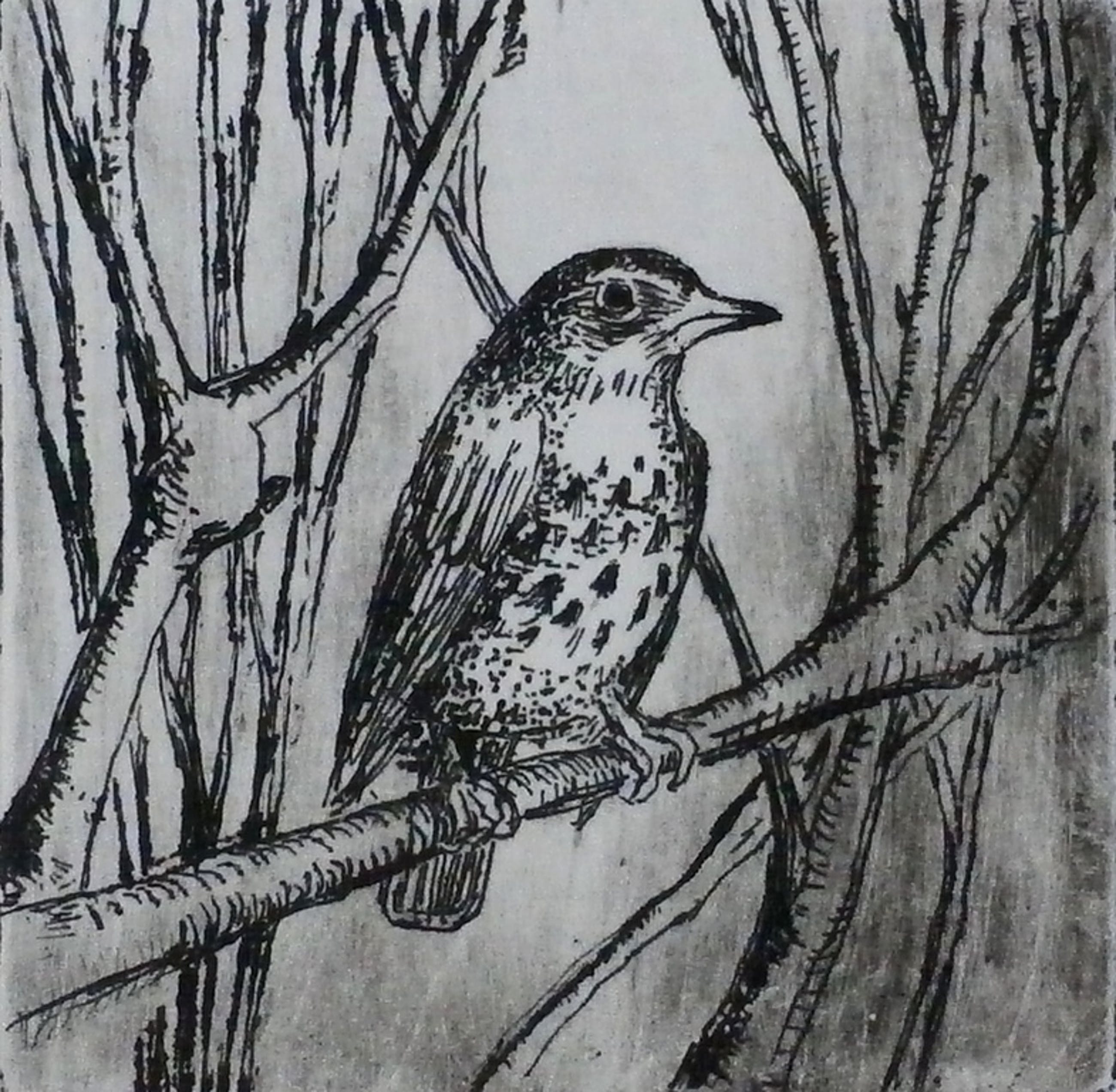 Onbekend - Ab M. - ets op nieuwjaarskaart: Kramsvogel - Verkocht