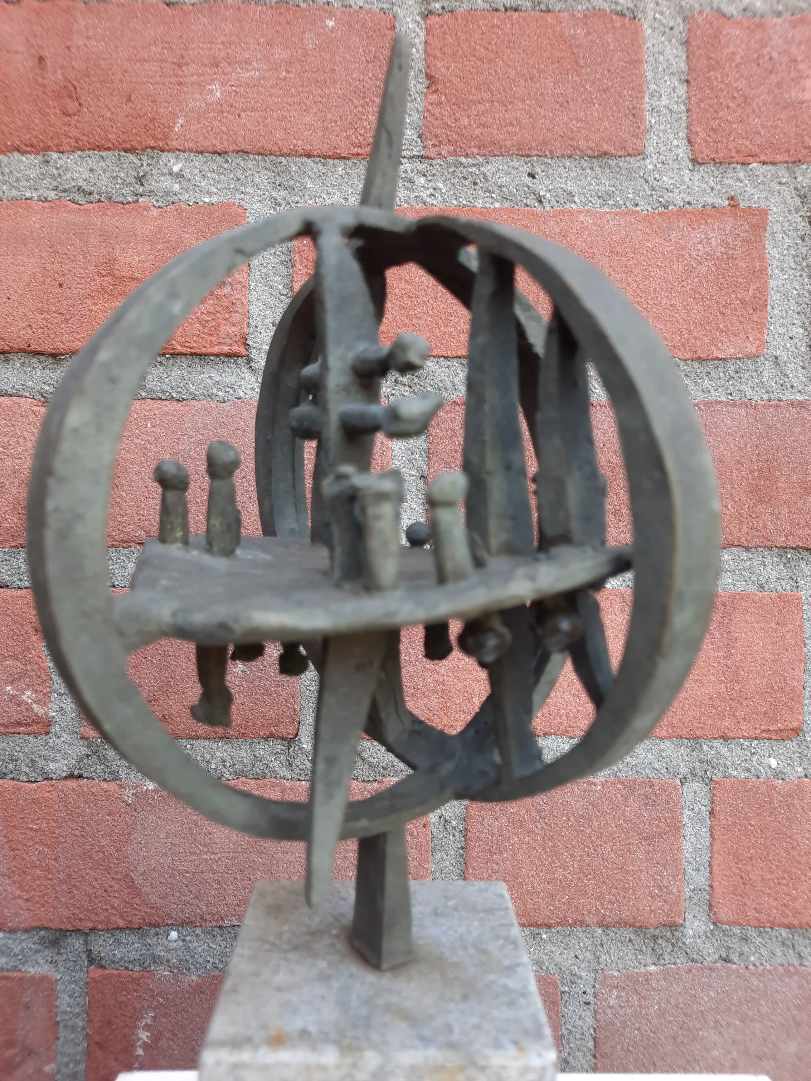 Voor mij onbekende kunstenaar die in abstracte stijl werkt(e). In brons gegoten. Op een granieten sokkel.