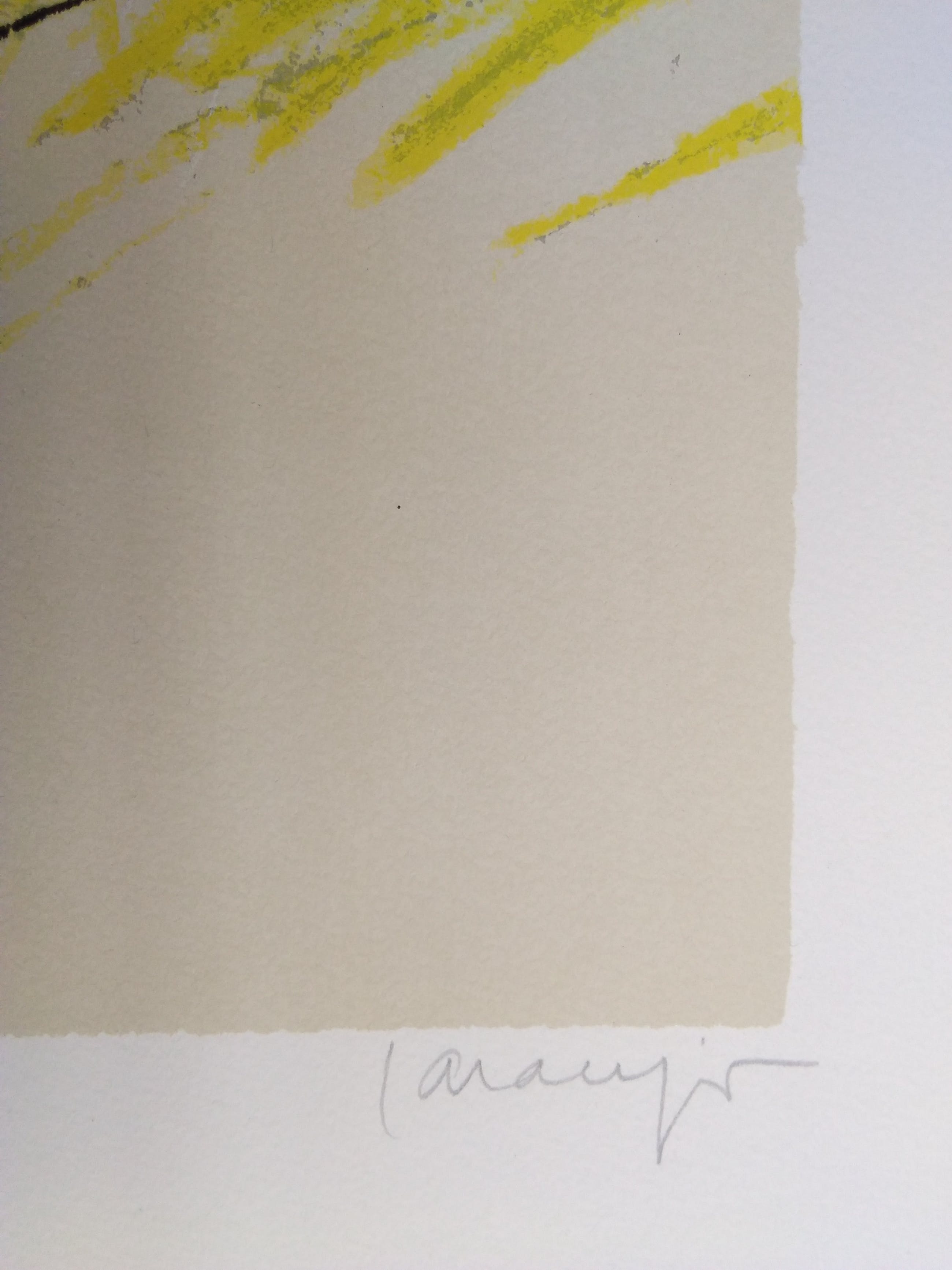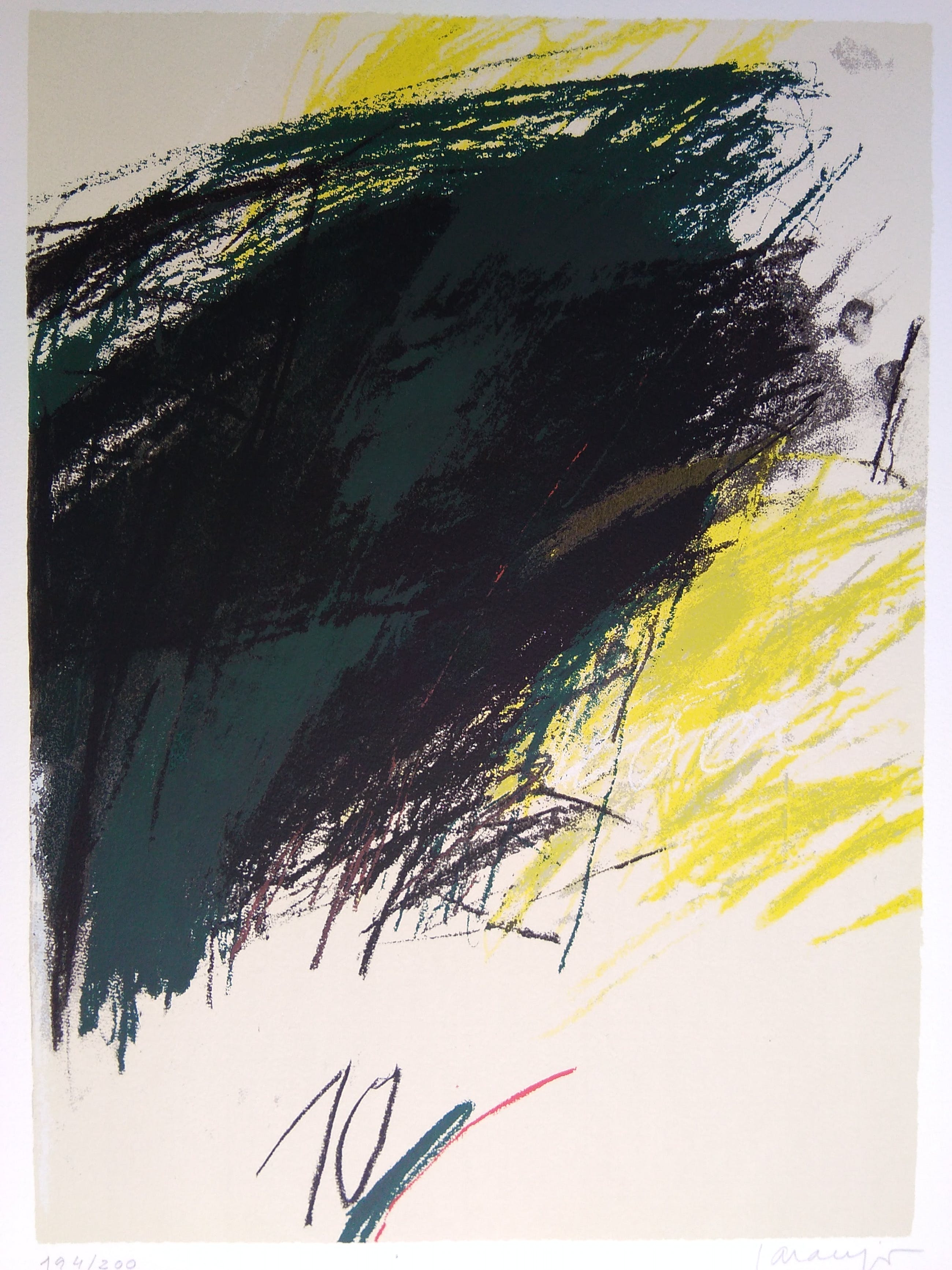 Abstracte kompositie. Gesigneerd r. o. Bevestigd op passe-partout karton. Oplage 194 /200.
