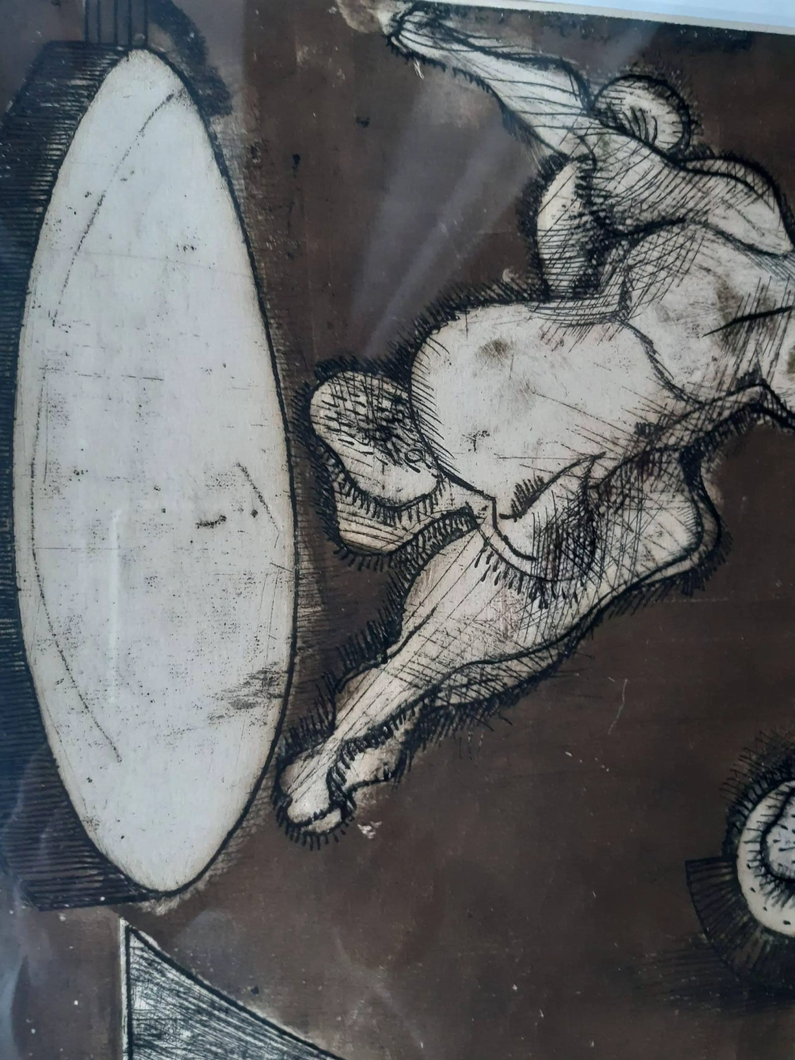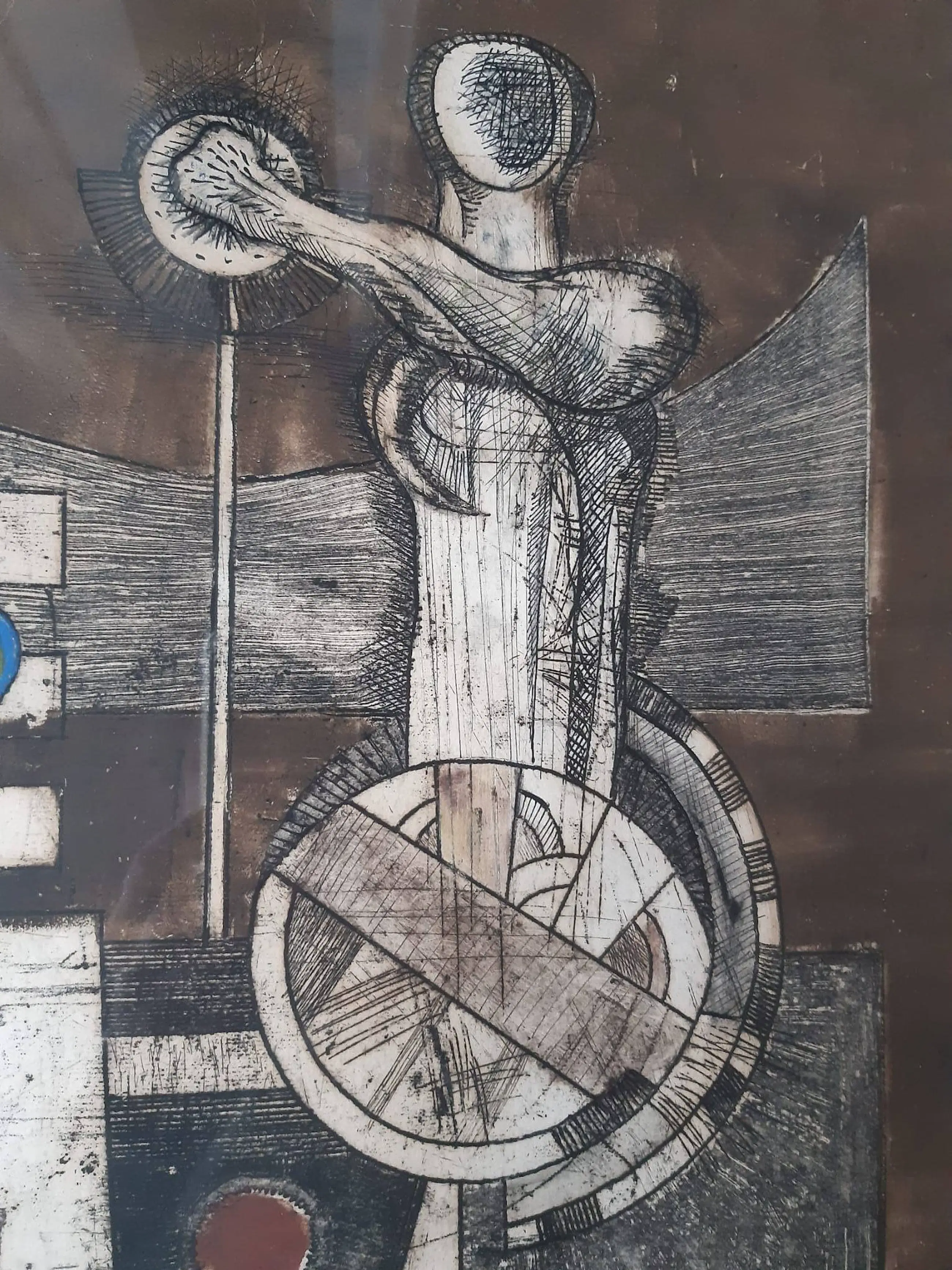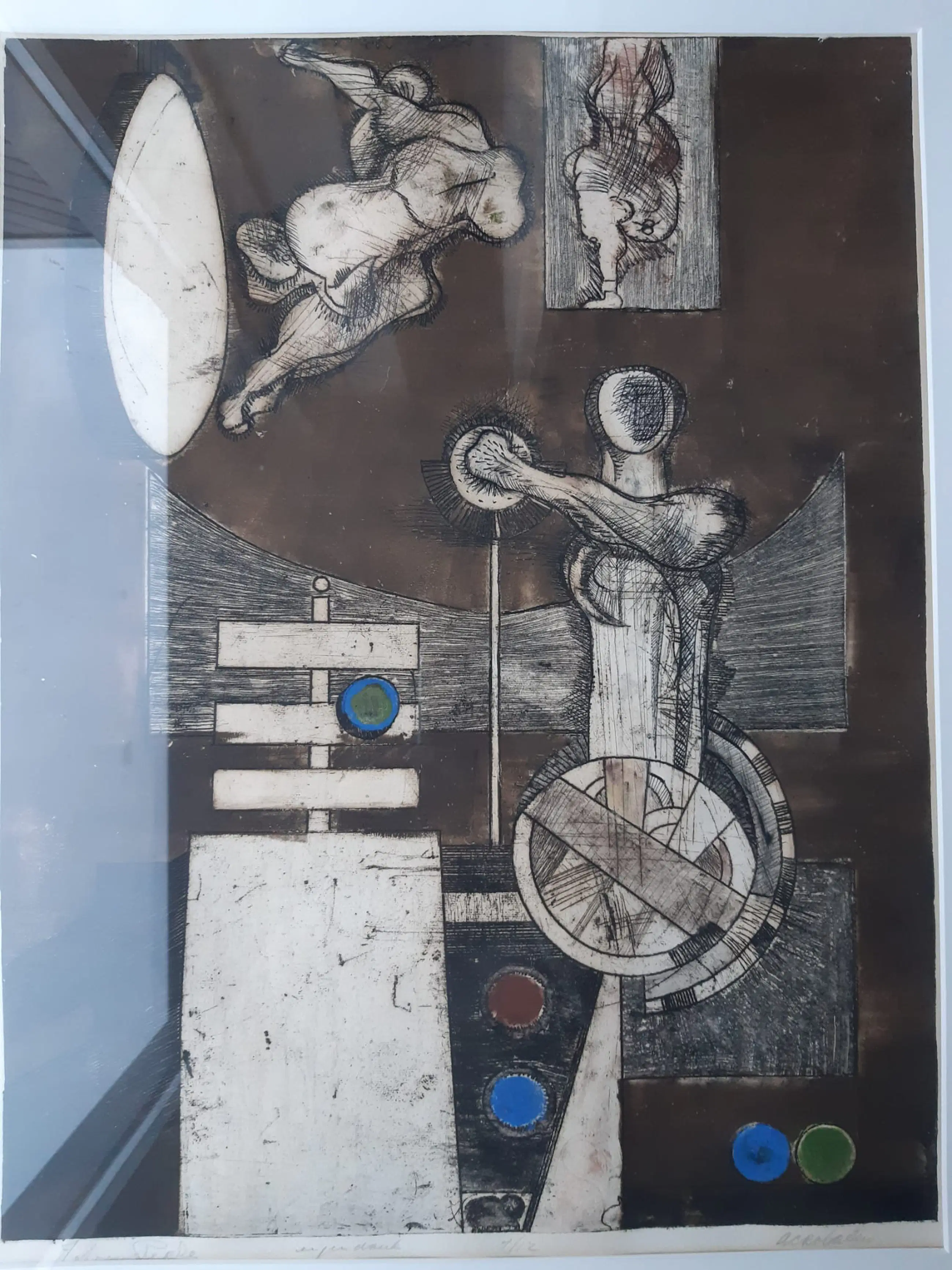 Het is een handgesigneerd kunstwerk met de naam acrobaten. De naam van de maker is niet heel goed te lezen maar er lijkt Johan Peeke of Peele te staan.