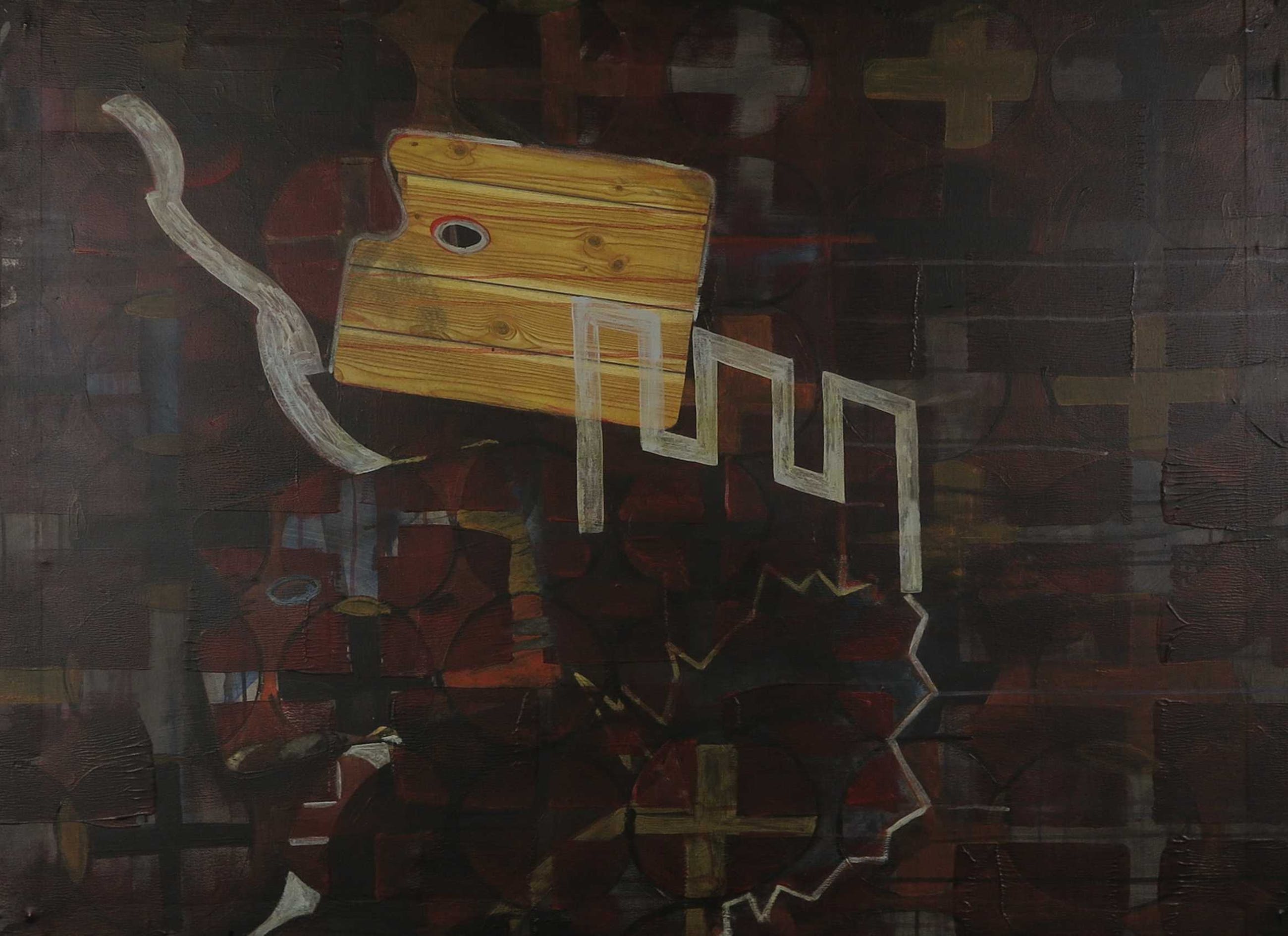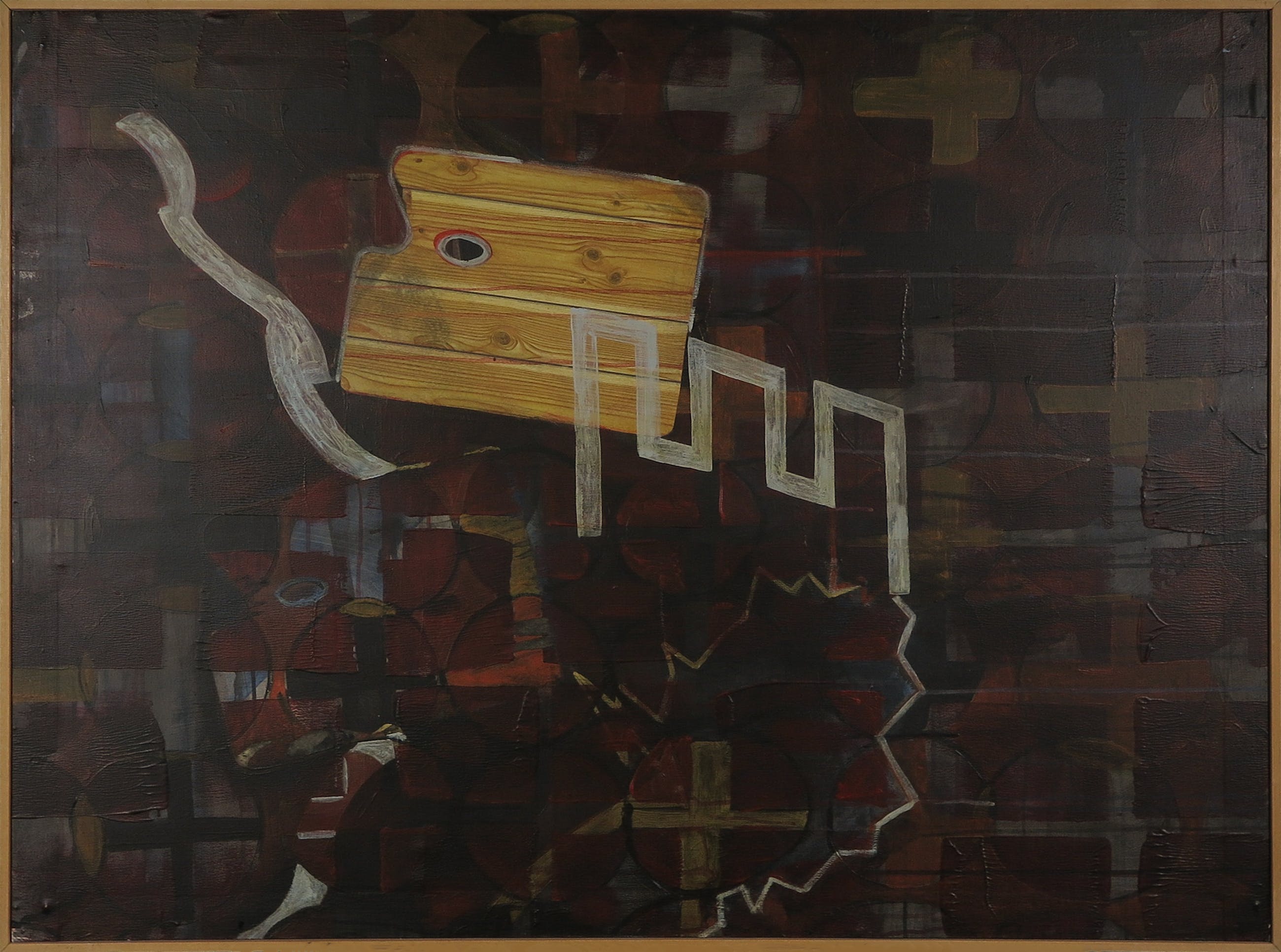 Onbekend - Acryl en collage op doek, Zonder titel - Ingelijst - Verkocht