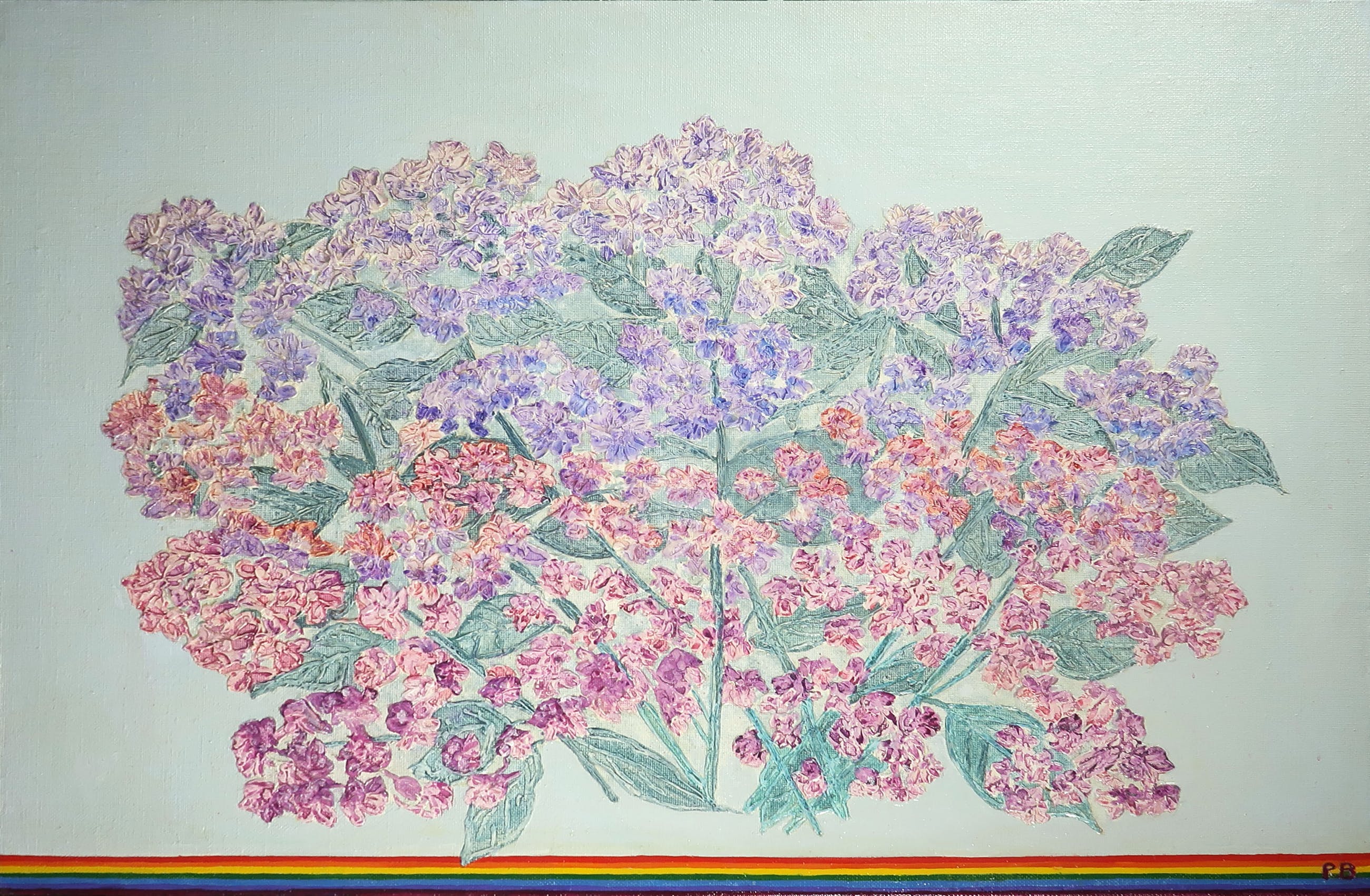 Onbekend - Acryl op doek op board, Hortensia's (Groot) - Verkocht